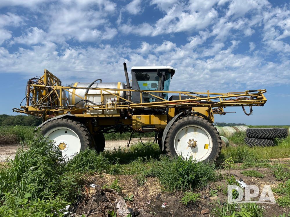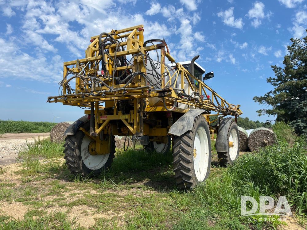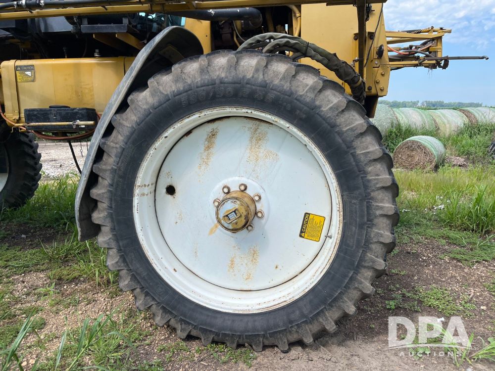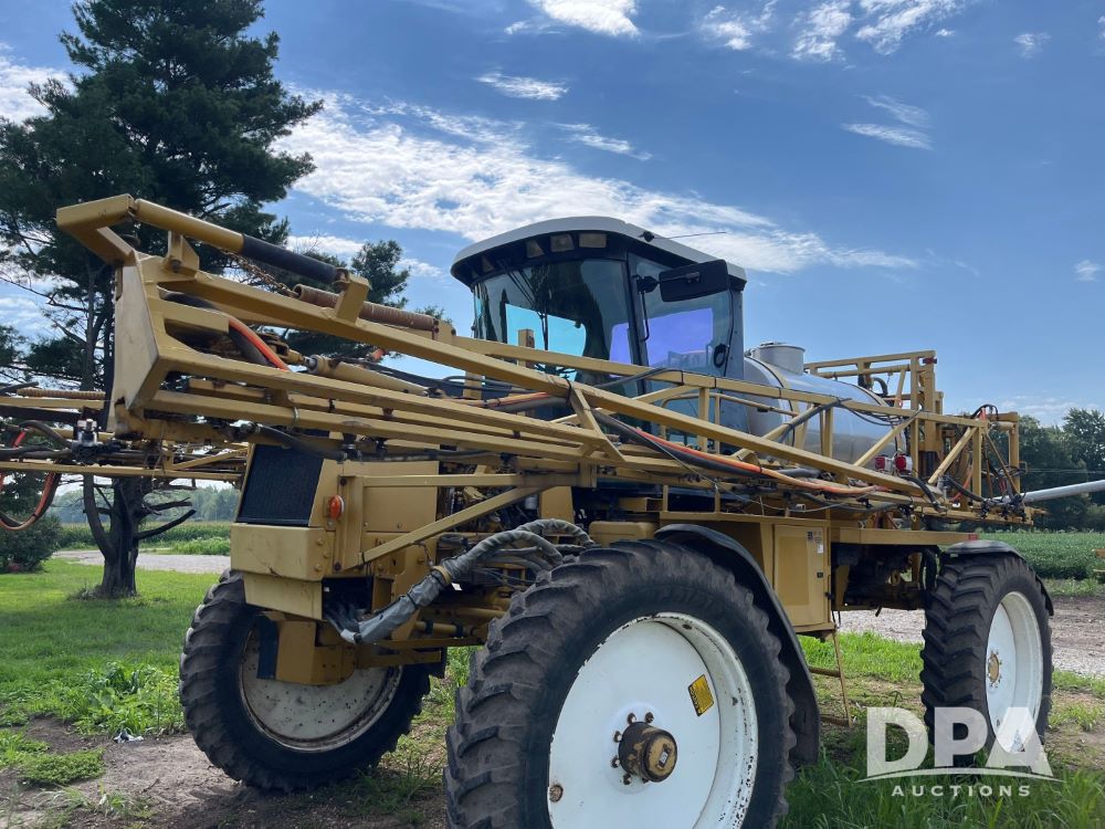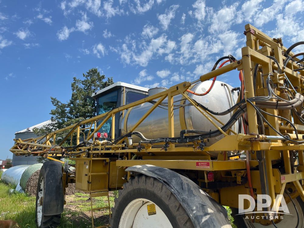 1996 RoGator 854 Sprayer (JN2756), Cummins diesel engine, hydrostatic transmission, heat, Am/Fm radio, 1,000 gallon stainless steel liquid system, 90' boom, poly rinse tank, stainless steel foam marker tank, 380/90R46 tires, Raven SCS460 controller, shows 4,213 hours.