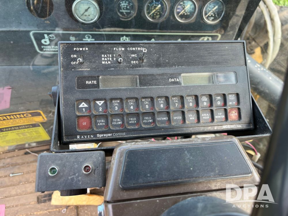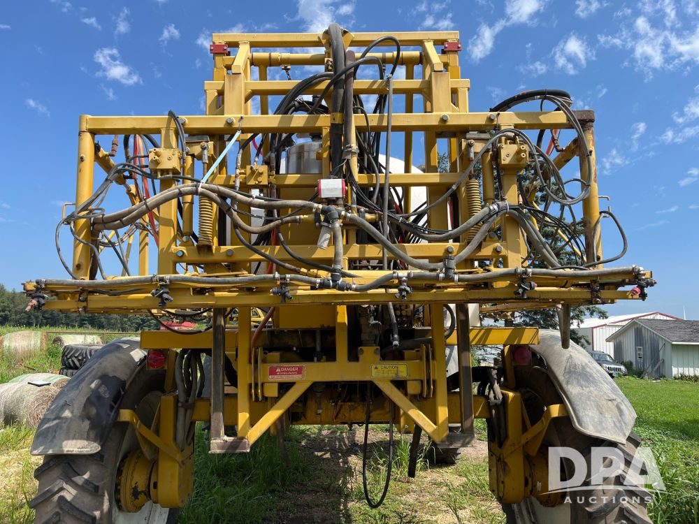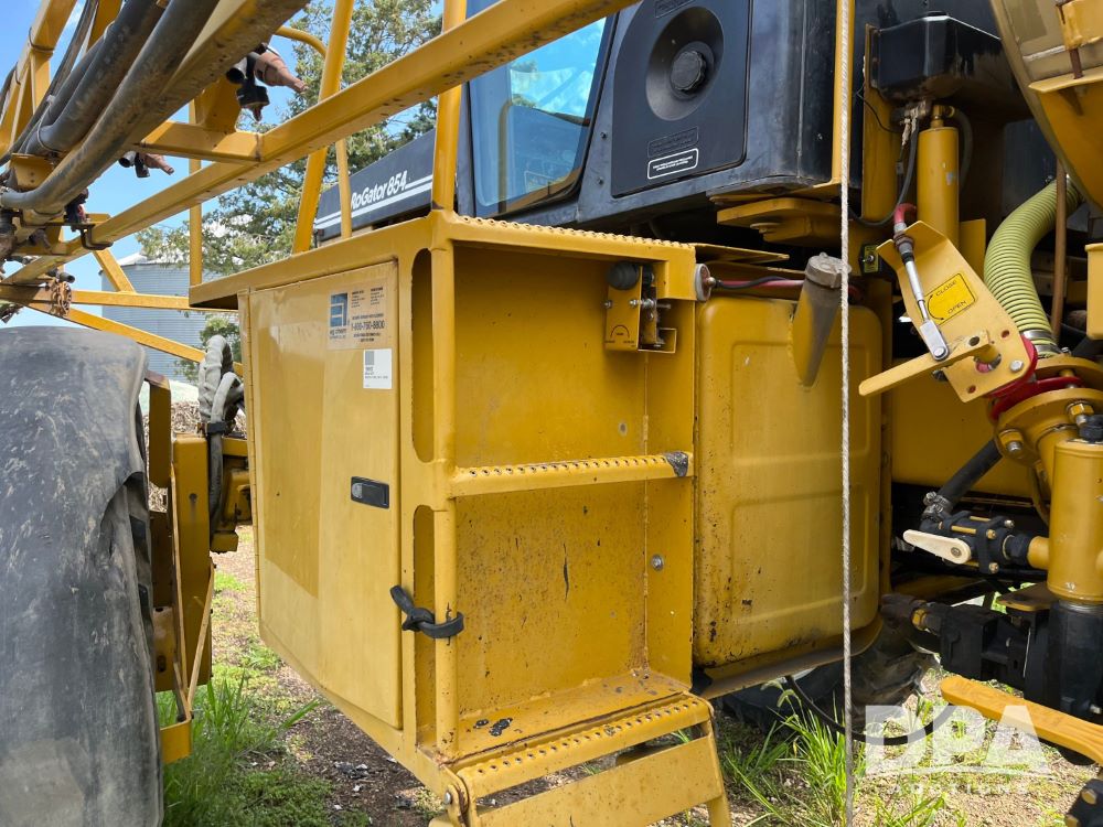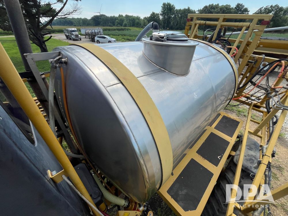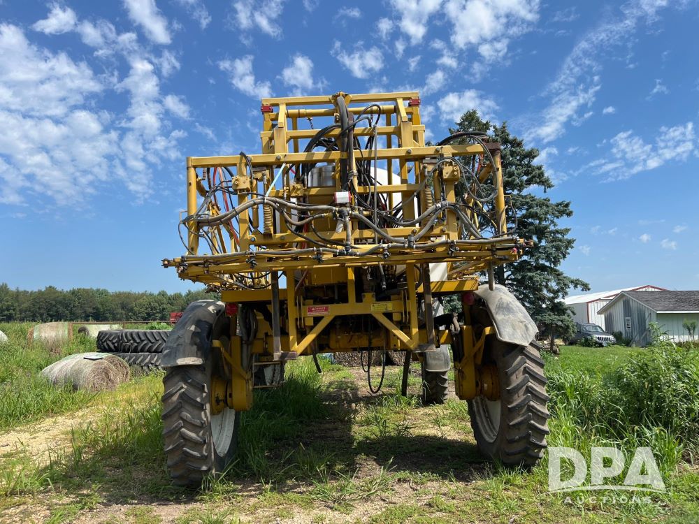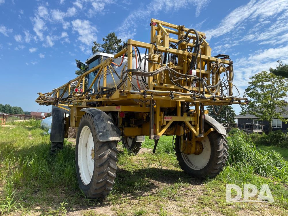 1996 RoGator 854 Sprayer (JN2756), Cummins diesel engine, hydrostatic transmission, heat, Am/Fm radio, 1,000 gallon stainless steel liquid system, 90' boom, poly rinse tank, stainless steel foam marker tank, 380/90R46 tires, Raven SCS460 controller, shows 4,213 hours.