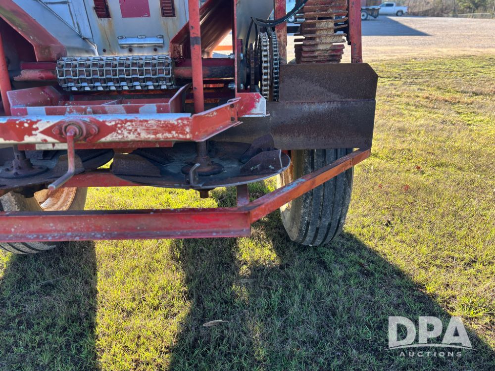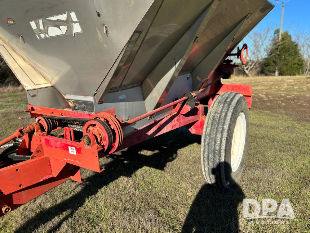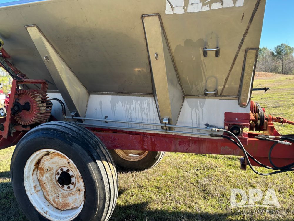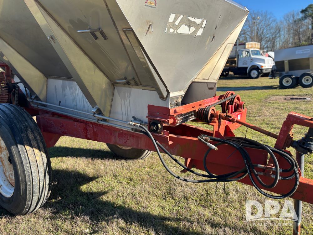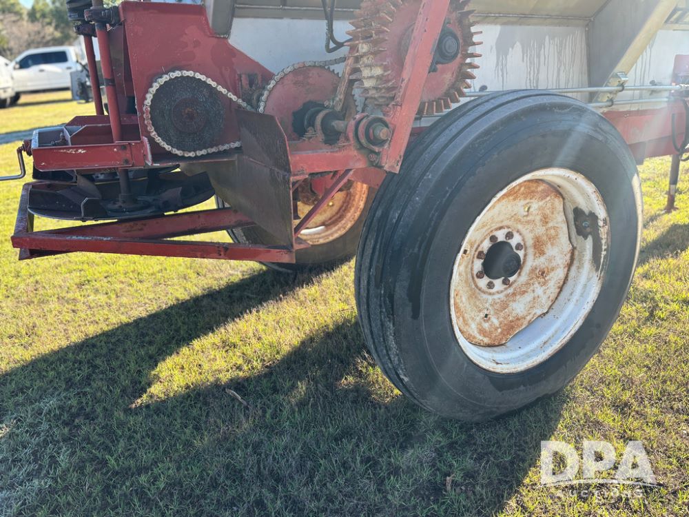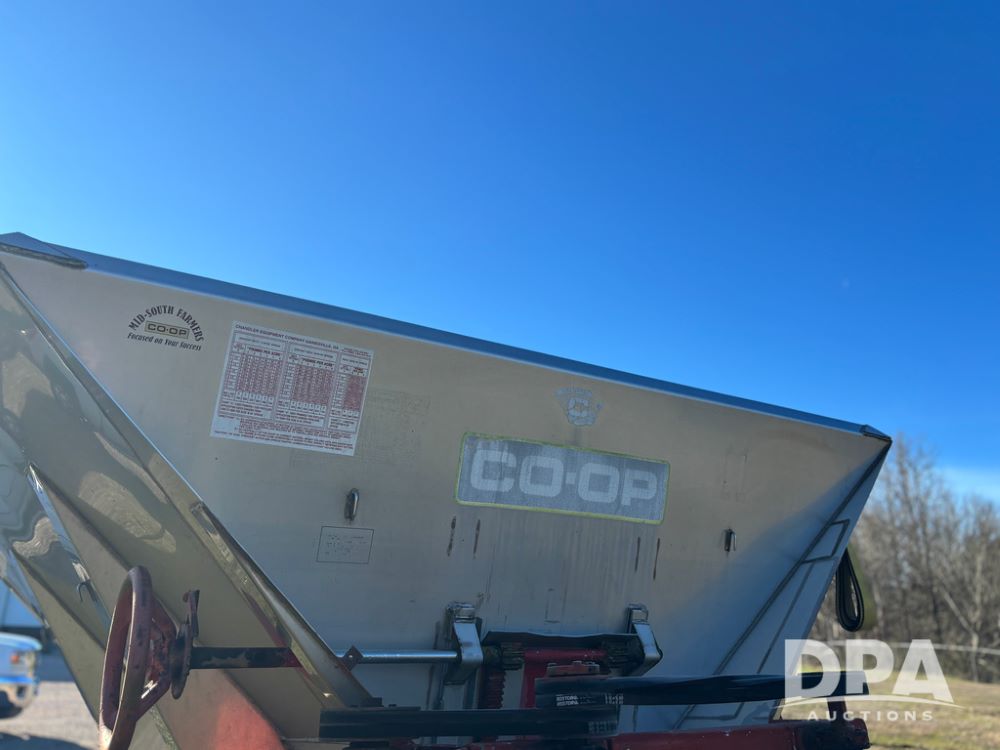Chandler Dry Spreader (JY1031), high clearance narrow track gear, 2 speed web chain w/hydraulic shutoff, dual PTO drive hydraulic rear spinner pans, 16'' web chain, 11.25/28 14 ply row crop tires.