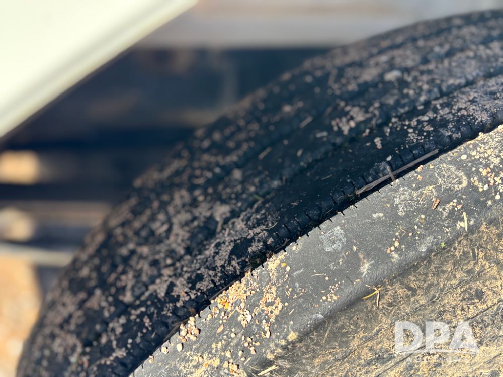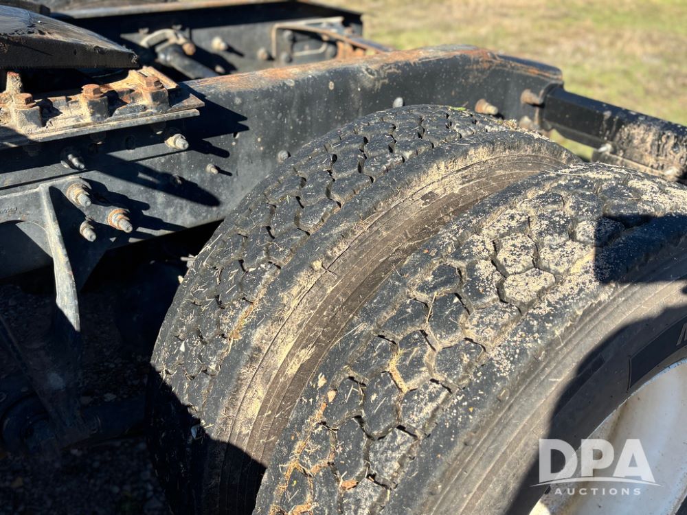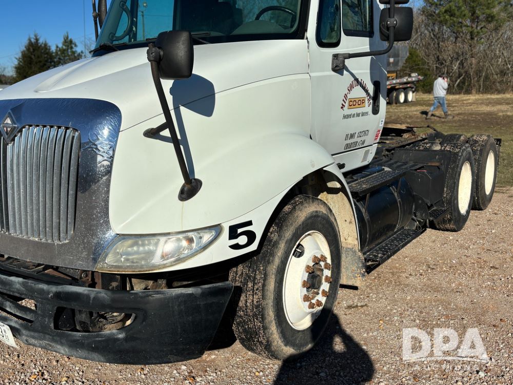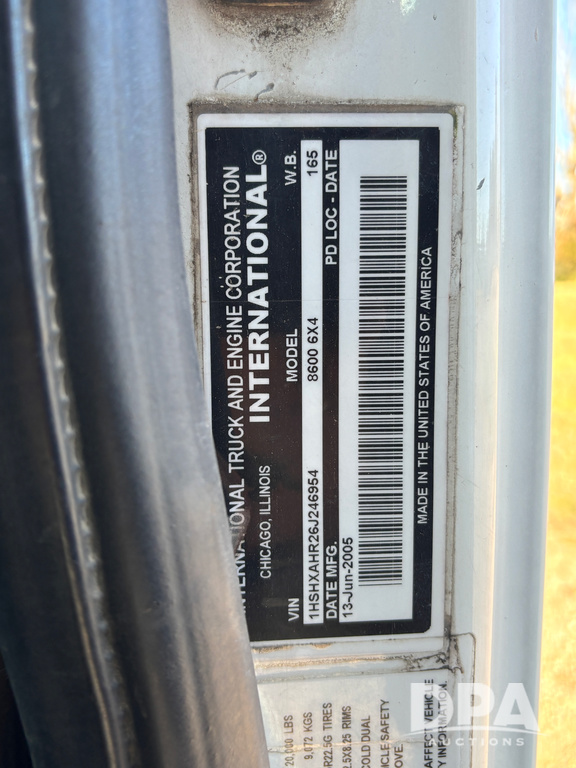 2006 International 8600 Truck (JY1037 Unit 5), diesel engine, Eaton 9 speed transmission, tandem axle full screw, air ride suspension, day cab, hydraulic wet kit, air dump valve, engine brake, cruise control, air slide 5th wheel, 12,000lb front axle, 38,000lb rears, 295/75R22.5 tires, odometer reads 477,545 miles.