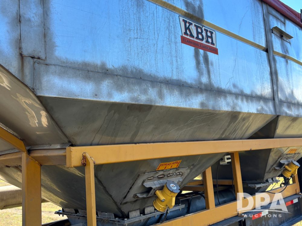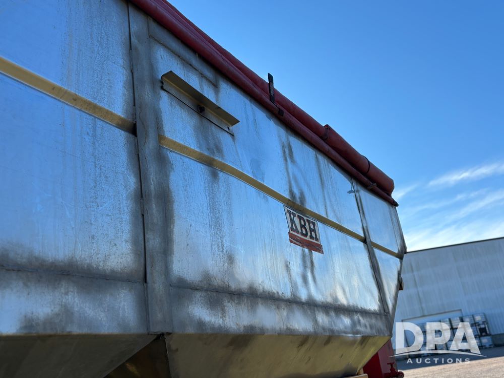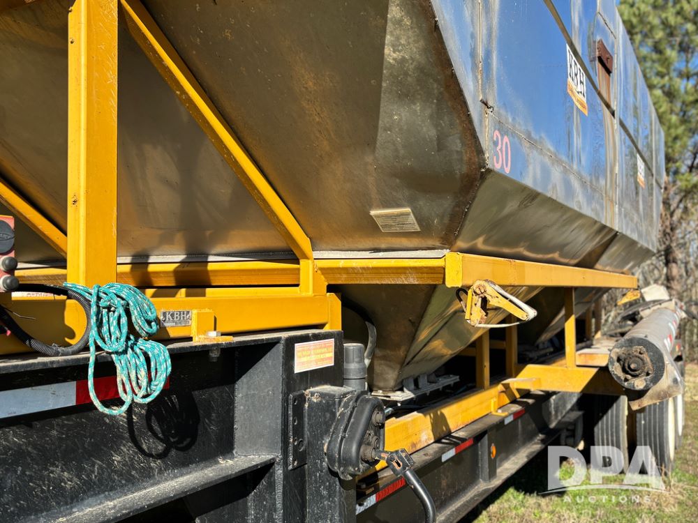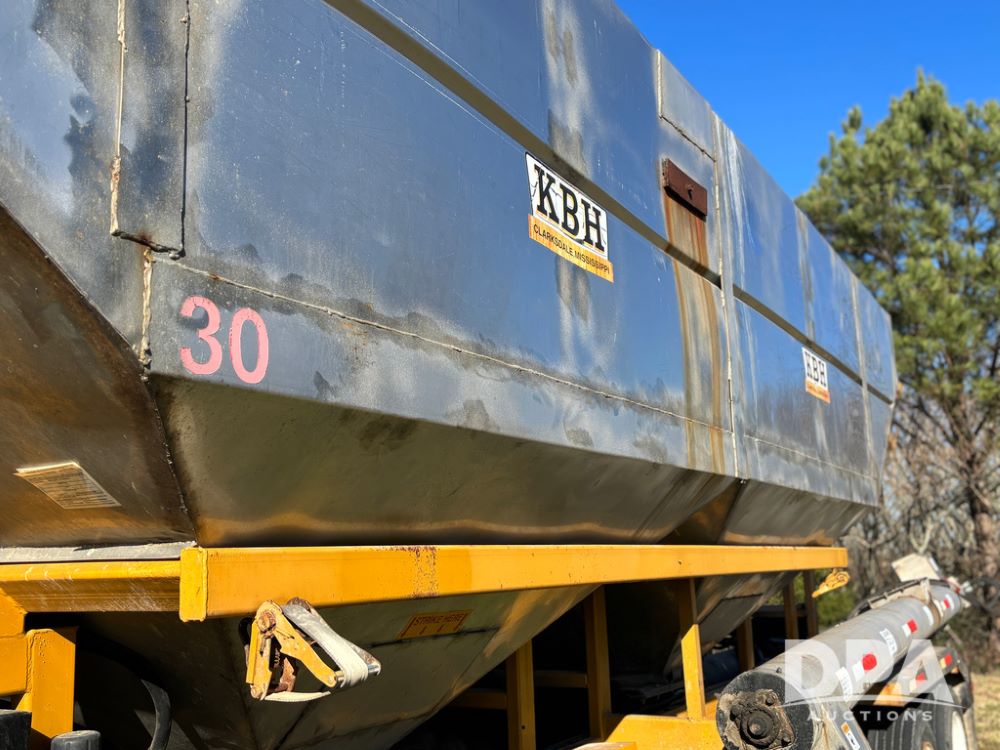 2006 KBH Dry Trailer (JY1039 Unit 30), 24 ton stainless steel hydraulic dry tender trailer, self contained hydraulics w/diesel engine and electric start, side discharge auger, roll over tarp, tandem axle, spring suspension, no hour meter, 255/70R22.5 tires.