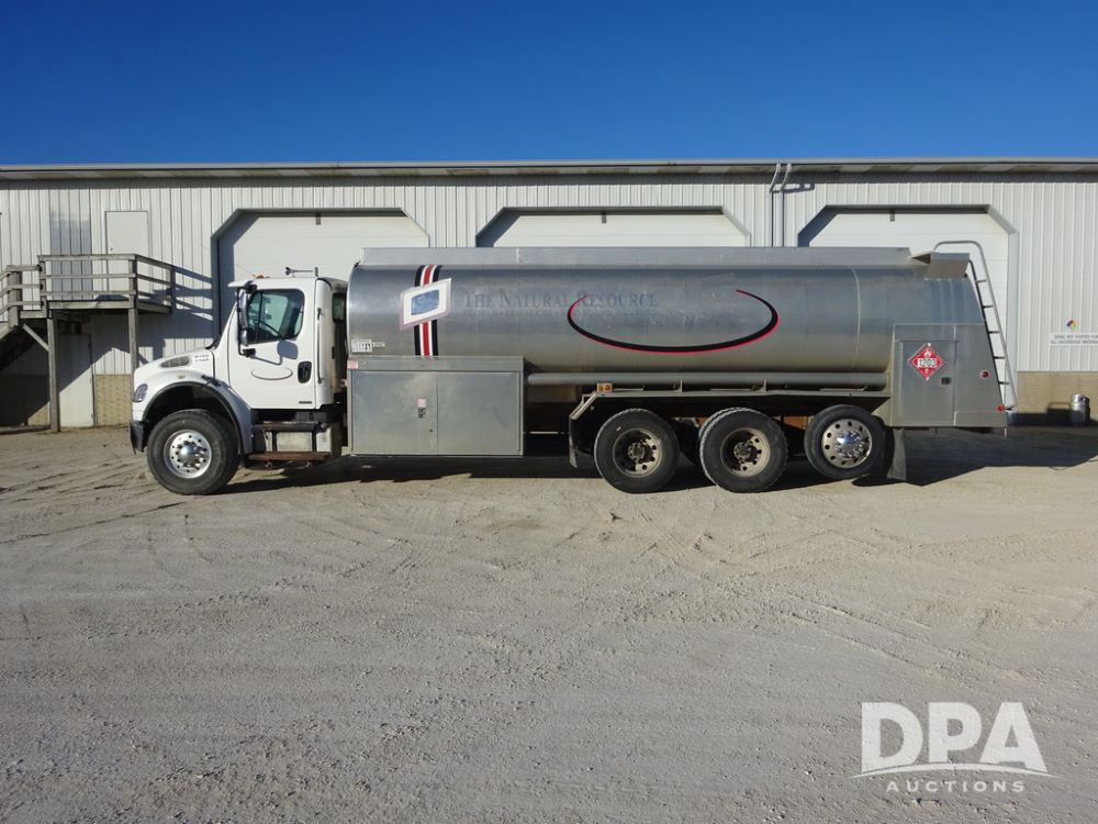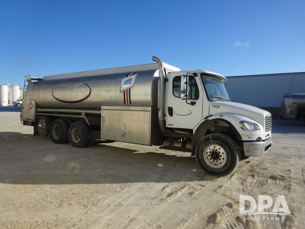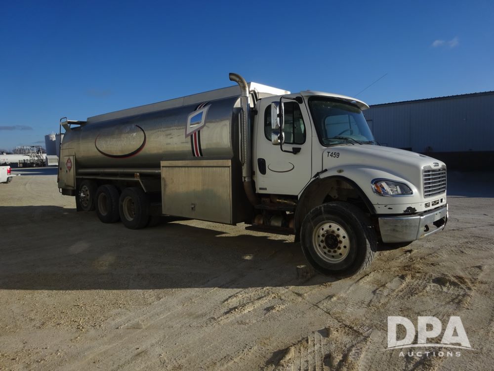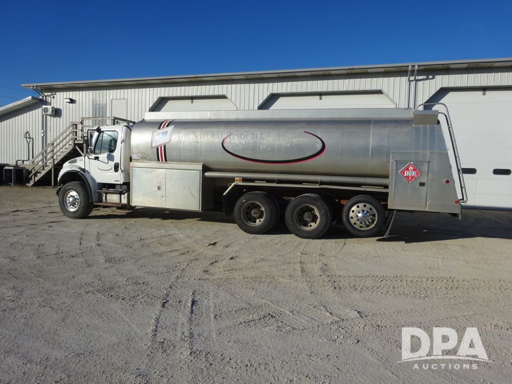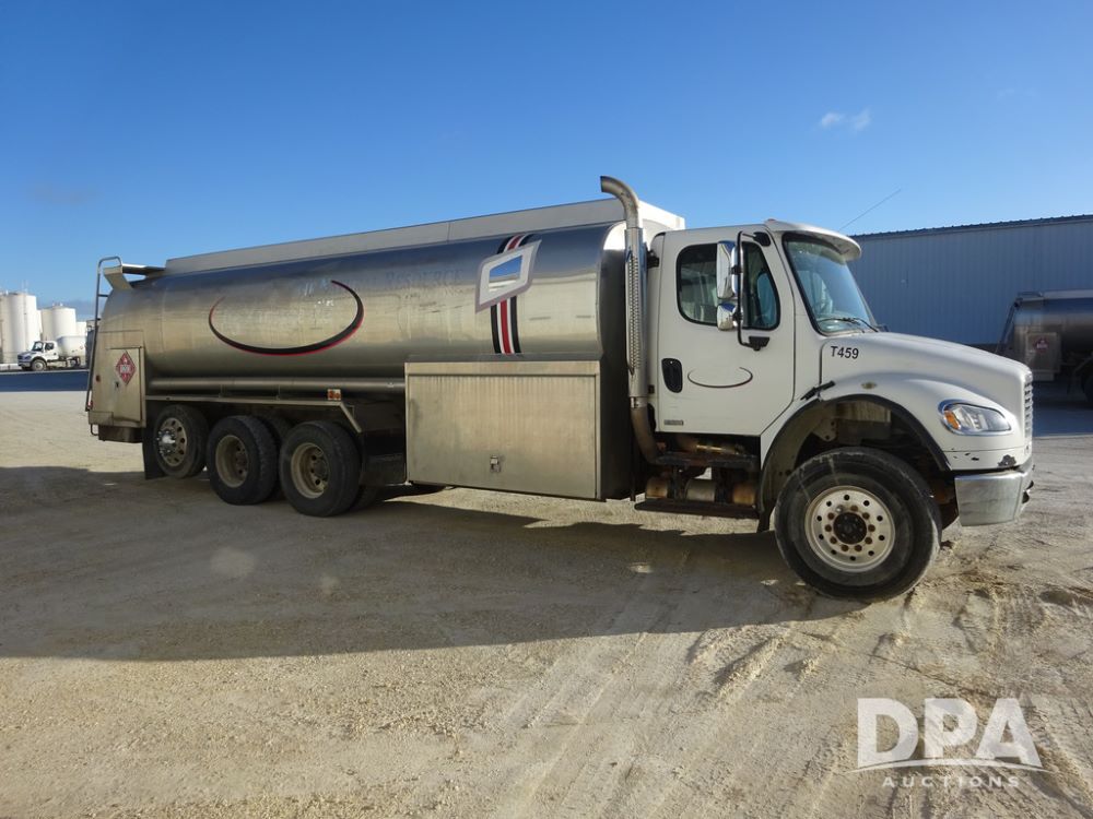 2007 Freightliner Petroleum Truck (PZ14326, Unit T459), Cat C9 Acert diesel engine, Eaton Fuller 8 speed +LO & LO-LO transmission, heat, Am/Fm CD radio, cruise control, power windows & locks, tandem axle, full screw, air ride suspension, 3rd axle, 2006 Progress model A90LS 5,000 gallon 4 compartment (1500-1500-1000-1000) aluminum petroleum tank (S/N C-52972), Scully Intelli Check 2 Dynamic Faylsafe Sensing System, 2 - ElectroCount meters, 2 - electric hose reels with hose, 385/65R22.5 front tires, aluminum rims, 11R22.5 rear tires, aluminum rims, 255/70R22.5 3rd axle tires aluminum rims, shows 402,990 miles.