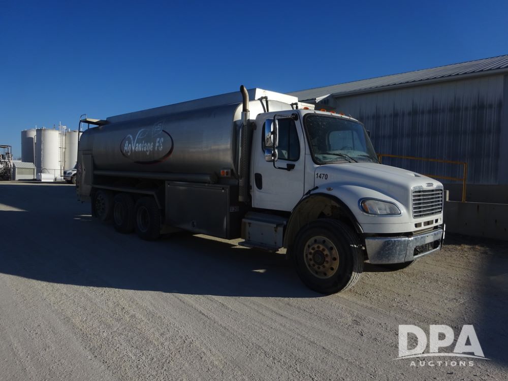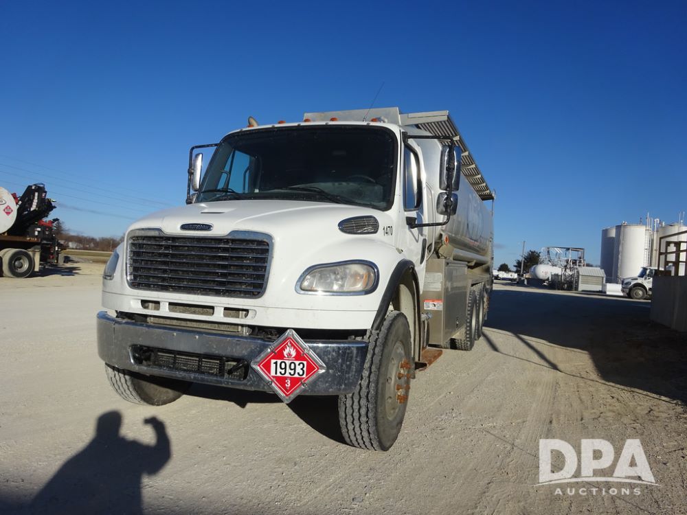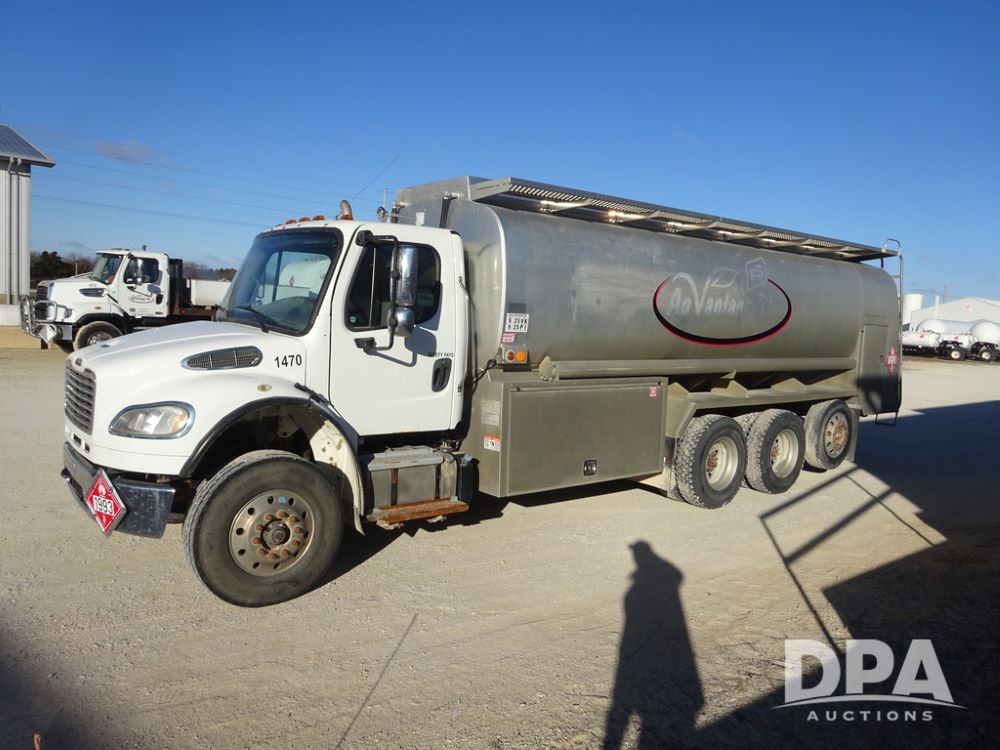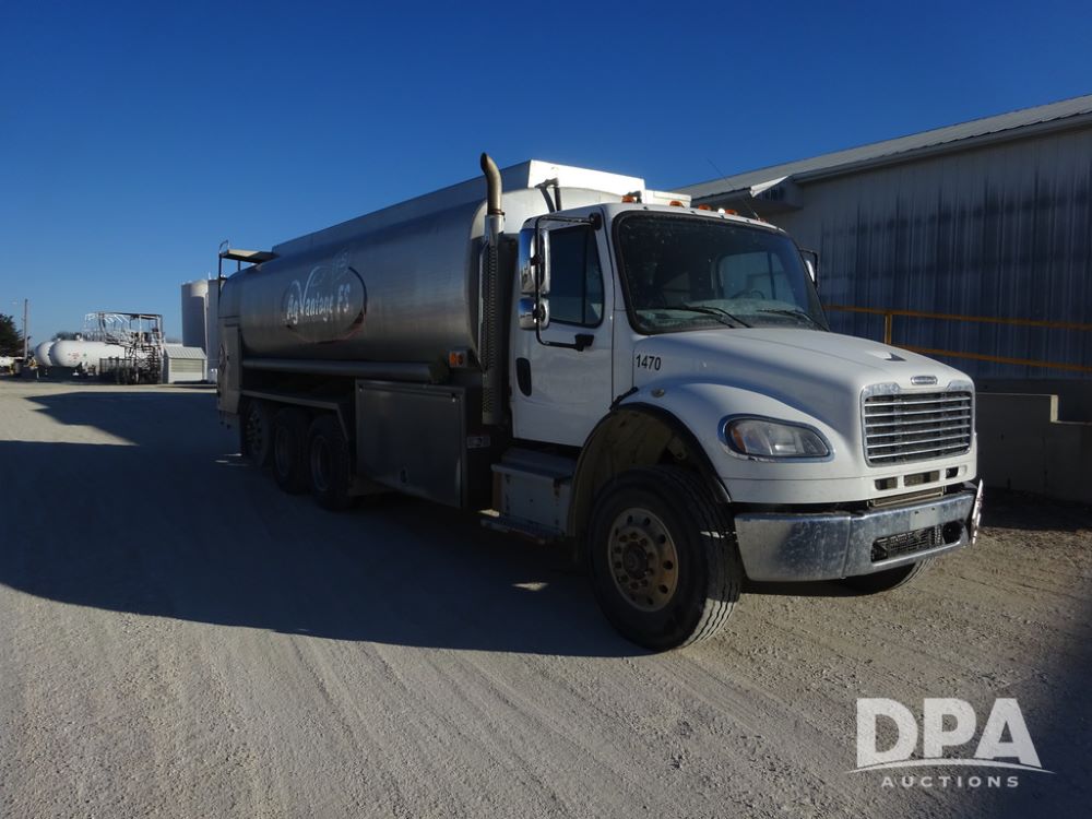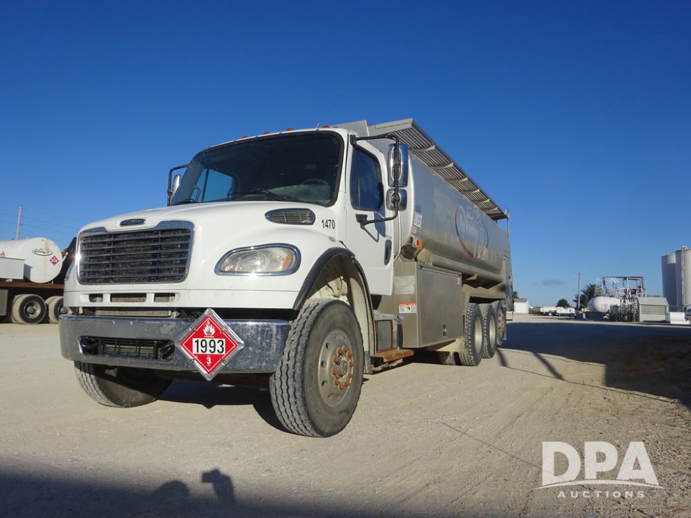 2015 Freightliner Petroleum Truck (PZ14328, Unit 1470), Cummins diesel engine, Allison automatic transmission, heat, Am/Fm radio, cruise control, power windows & locks, tandem axle, full screw, air ride suspension, 3rd axle, 2000 Almac 5,000 gallon 4 compartment (1500-1500-1000-1000) aluminum petroleum tank (S/N 00-10449), 2 - LectroCount LCR- Scully Load II meters, 2 - electric hose reels with hose, Anywhere Overfill Prevention Monitor, Featuring Dynacheck Automatic & Continuous Self-Testing, 315/80R22.5 front tires, aluminum rims, 11R22.5 rear tires, aluminum rims, 275/70R22.5 3rd axle tires, aluminum rims, shows 226,296 miles.