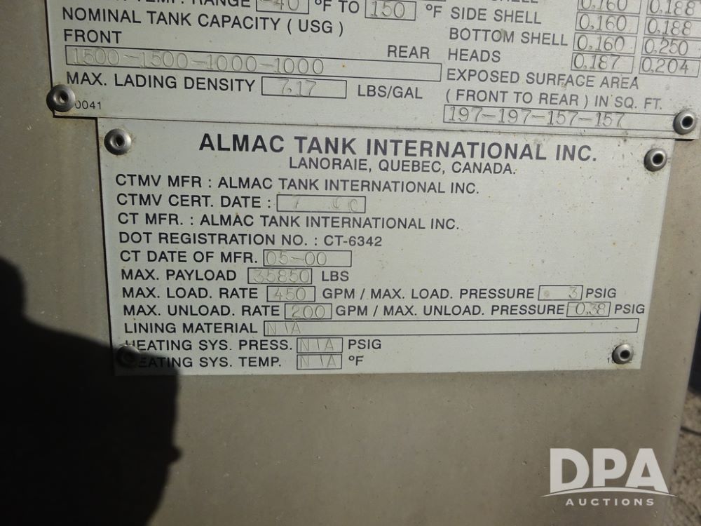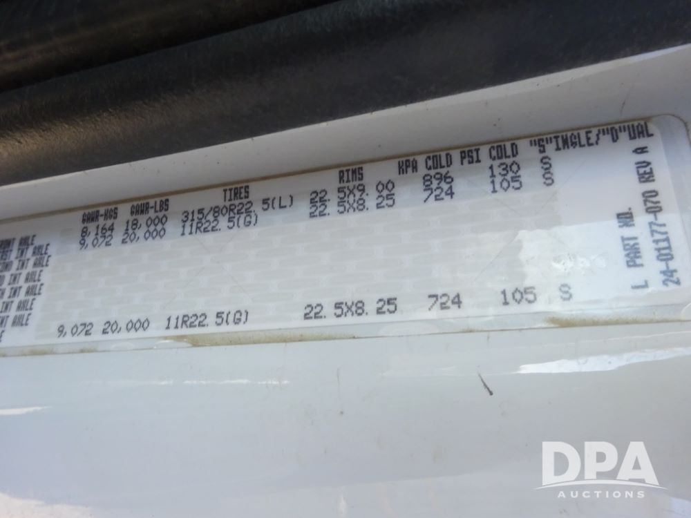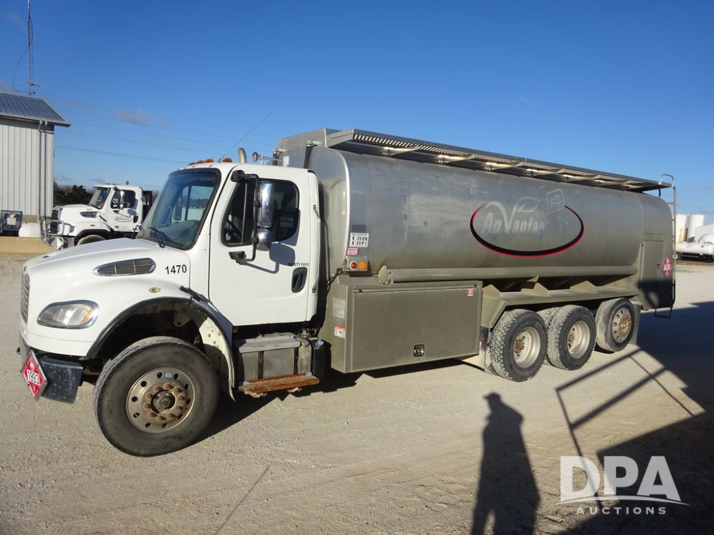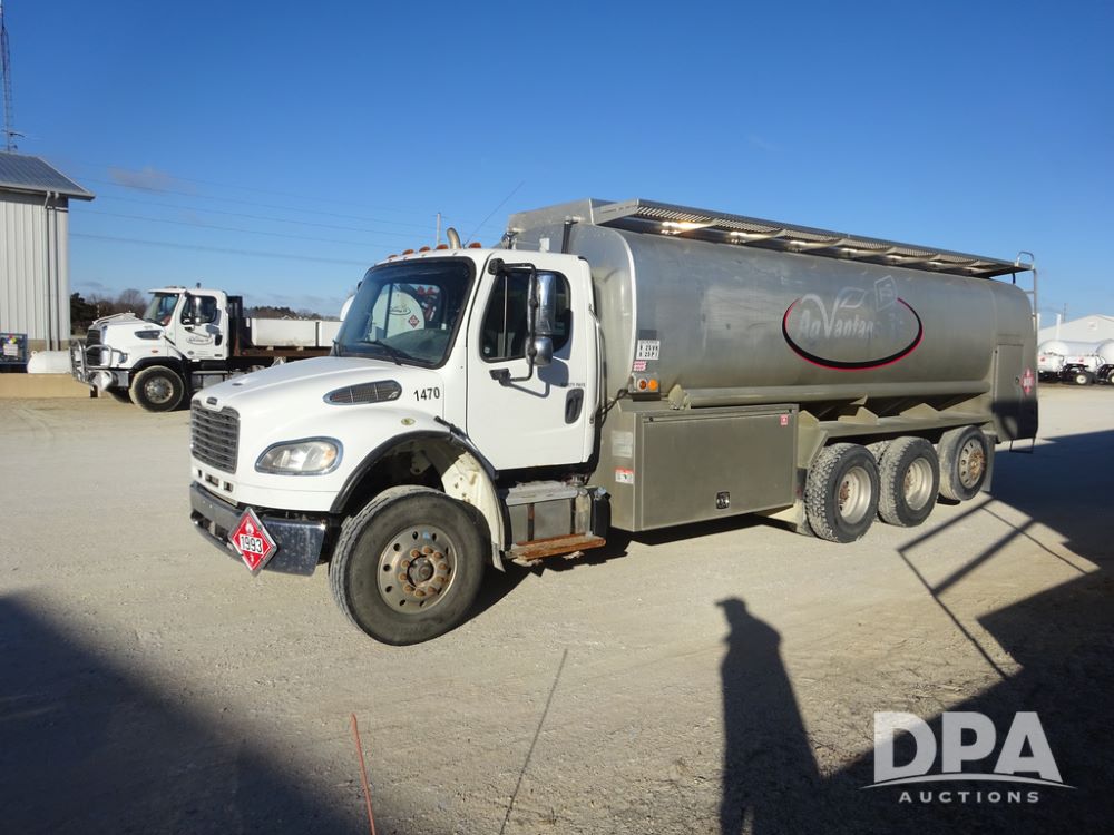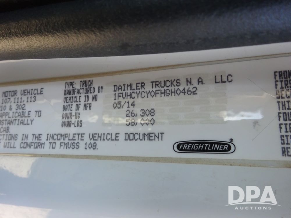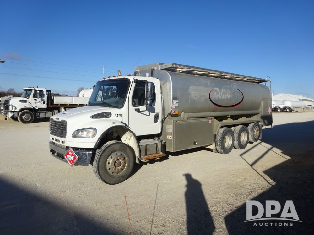 2015 Freightliner Petroleum Truck (PZ14328, Unit 1470), Cummins diesel engine, Allison automatic transmission, heat, Am/Fm radio, cruise control, power windows & locks, tandem axle, full screw, air ride suspension, 3rd axle, 2000 Almac 5,000 gallon 4 compartment (1500-1500-1000-1000) aluminum petroleum tank (S/N 00-10449), 2 - LectroCount LCR- Scully Load II meters, 2 - electric hose reels with hose, Anywhere Overfill Prevention Monitor, Featuring Dynacheck Automatic & Continuous Self-Testing, 315/80R22.5 front tires, aluminum rims, 11R22.5 rear tires, aluminum rims, 275/70R22.5 3rd axle tires, aluminum rims, shows 226,296 miles.
