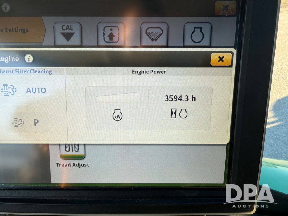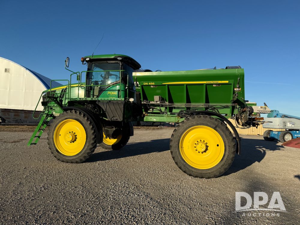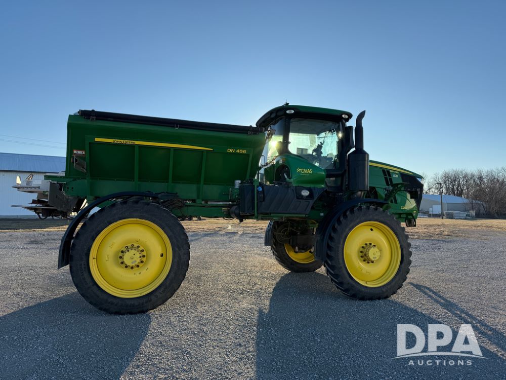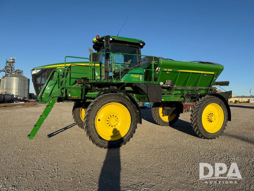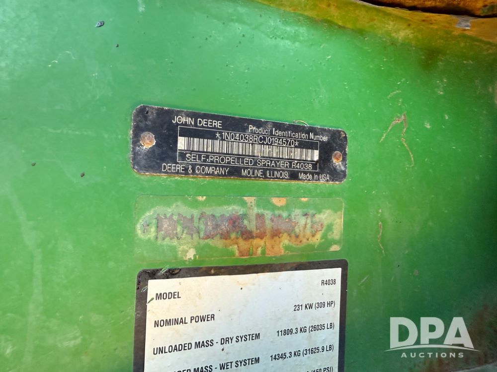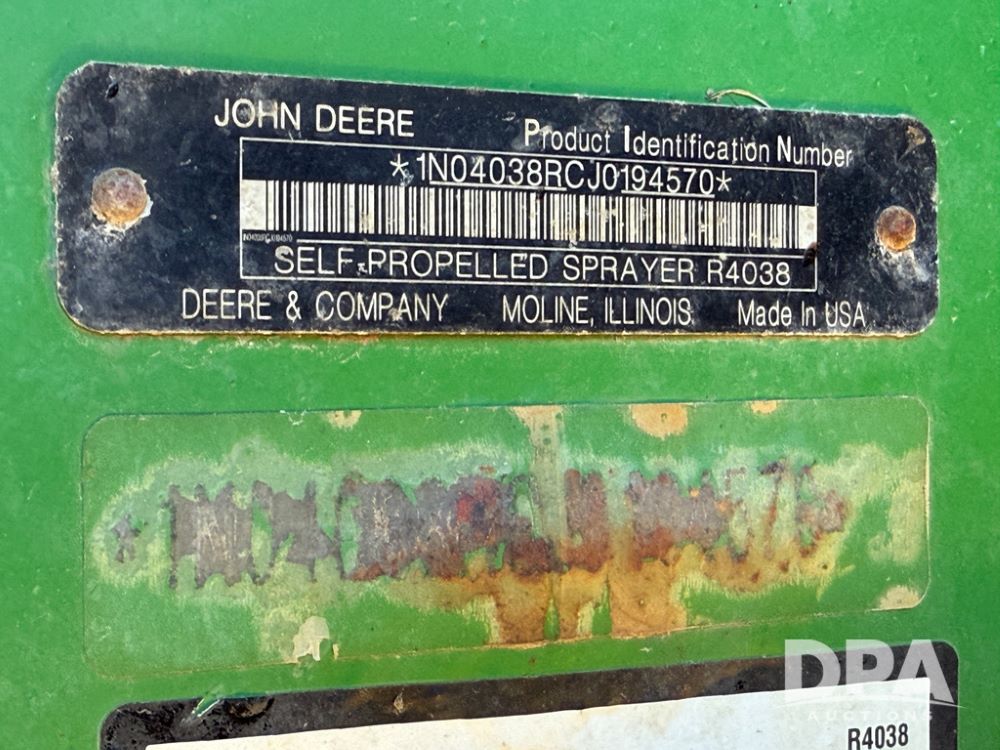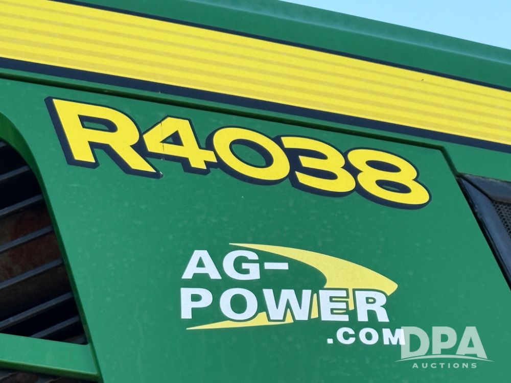 2019 John Deere R4038 Dry Machine (NP6401, Unit C313), John Deere diesel engine (S/N RG6090U065111), hydrostatic transmission, heat, air conditioning, Am/Fm radio, John Deere DN456 stainless steel dry spreader box (Model AKK29230 - 11', S/N 686436), dual spinners, hydraulic, Agri-Cover electric roll tarp, Michelin VF380/90R46 row crop tires, fenders, CabCam Camera, StarFire 6000 globe, John Deere Command Center, shows 3,594 hours.