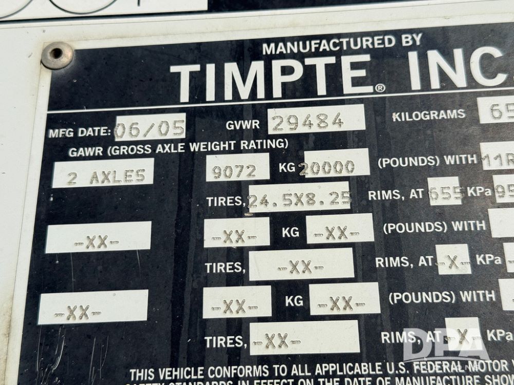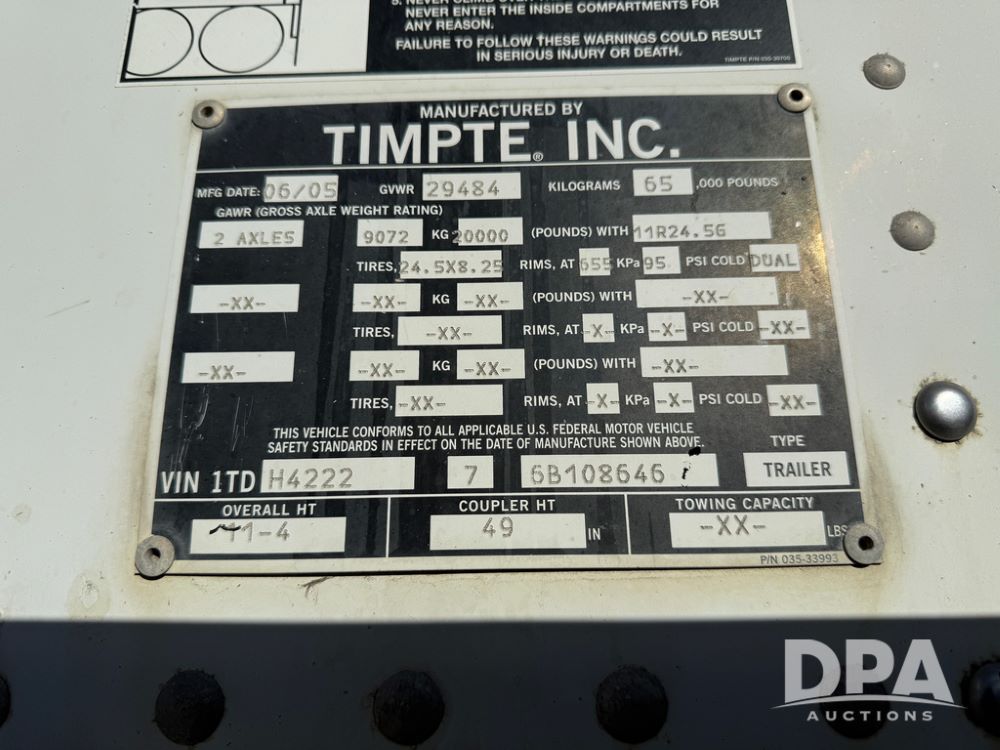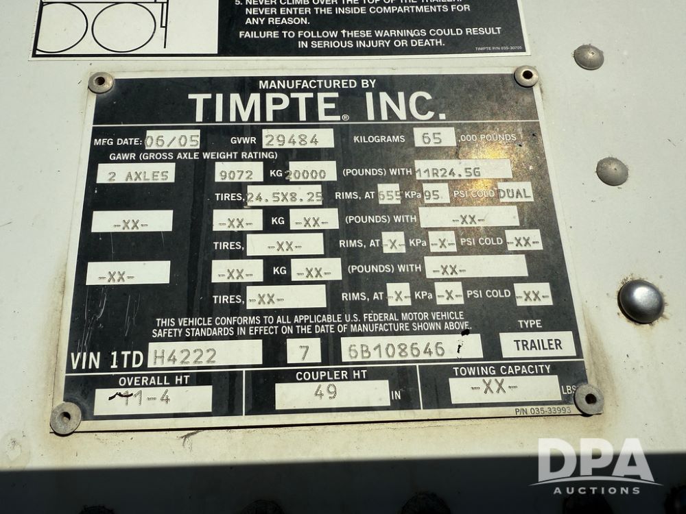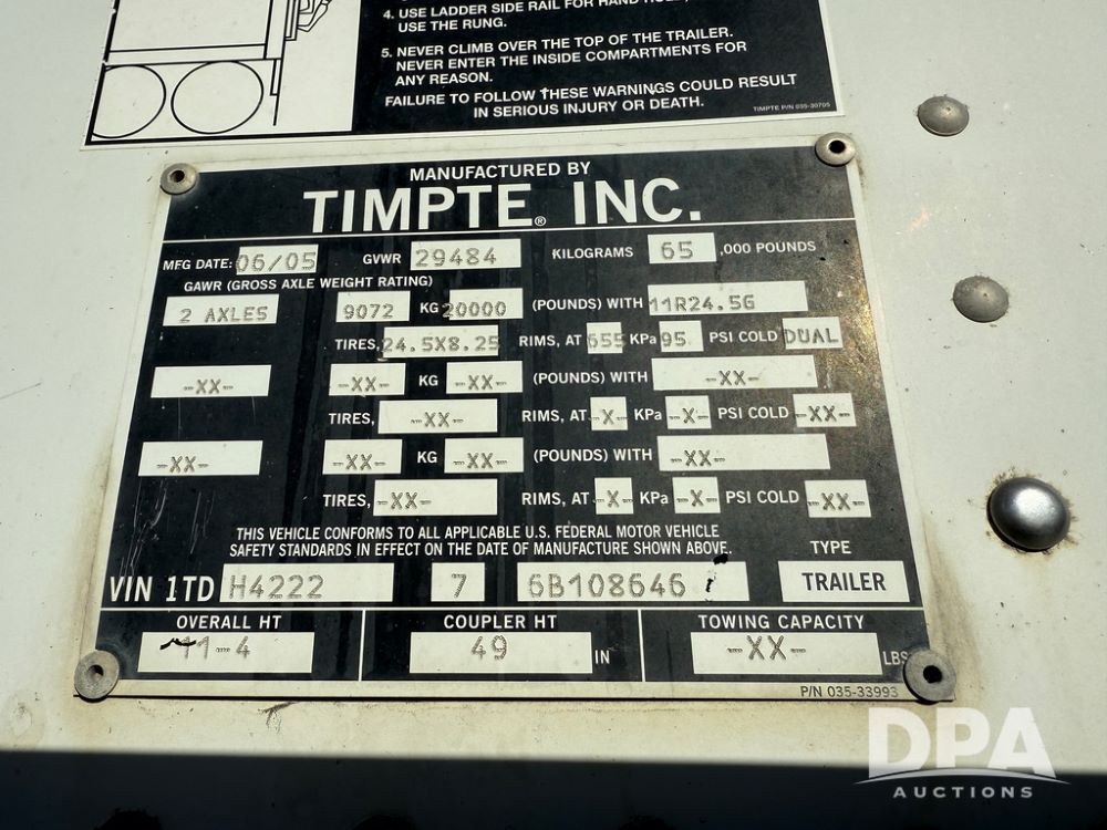 2006 Timpte Super Hopper Grain Trailer (NP6407, Unit C162), 2006 Timpte Super Hopper 42' grain trailer, tandem axe, air ride suspension, manual roll tarp, front/rear ladders, Holland landing gear, Haldex Scale-O-Matic, 11R24.5 tires, ABS, GVWR 65,000 pounds.