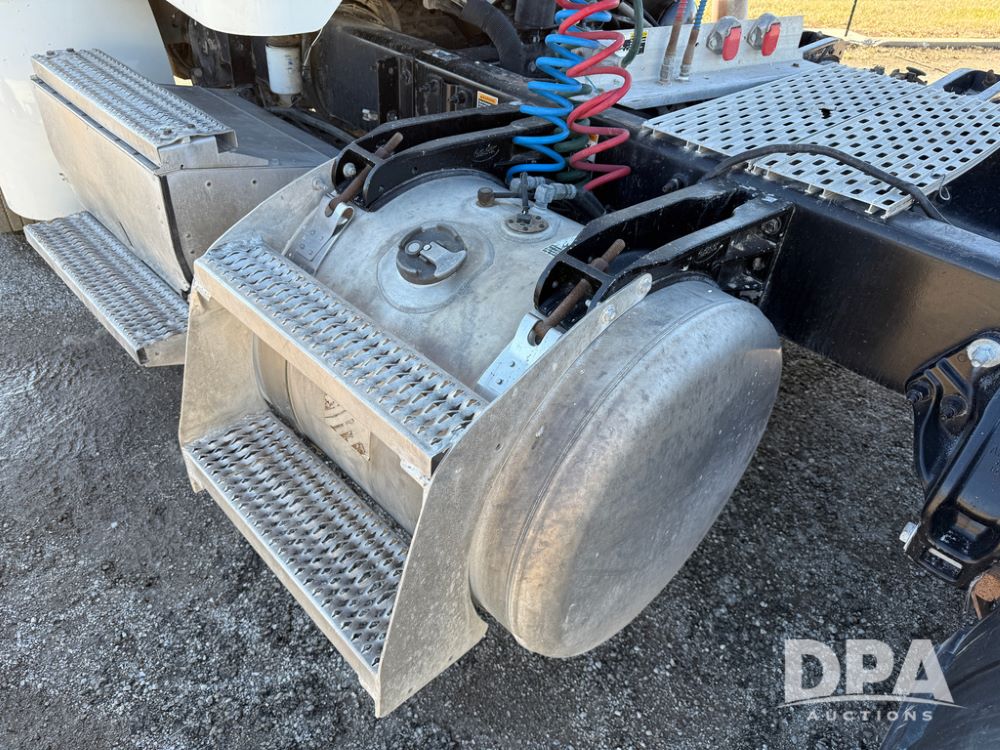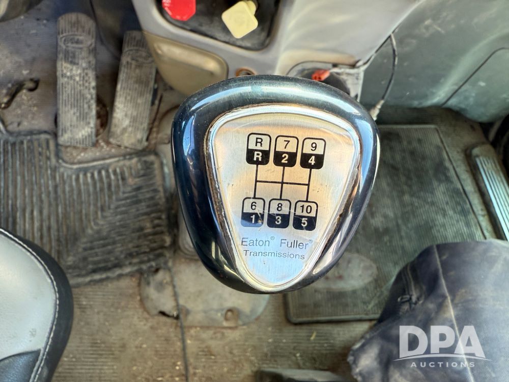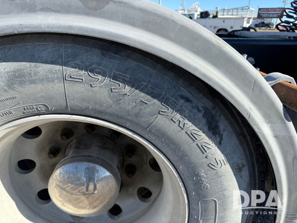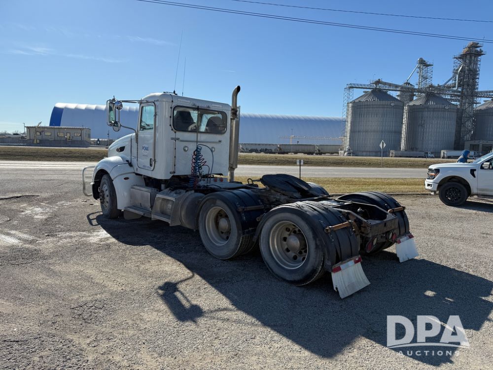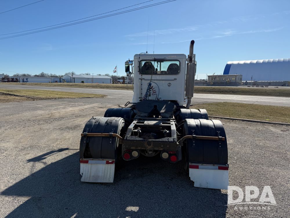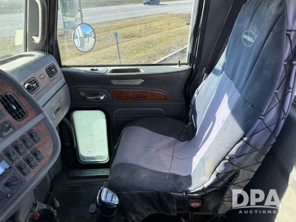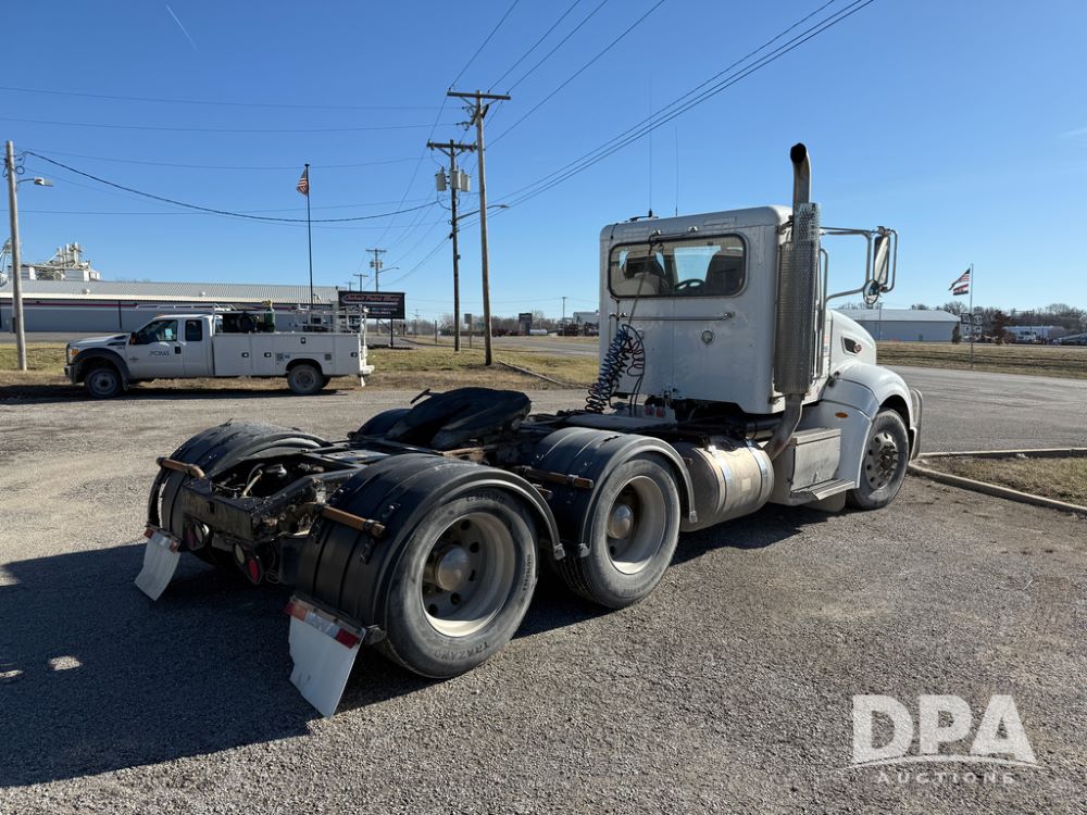 2010 Peterbilt 386 Day Cab Truck (NP6410, Unit C285), Cummins DOHC diesel engine, Eaton Fuller 10 speed transmission, heat, Am/Fm radio, cruise control, air ride cab, tandem axle, Peterbilt Low Air Leaf suspension, 5th wheel plate, dual fuel tanks, single exhaust, 295/75R22.5 rear tires, 11R22.5 front tires, RIGGUARD truck guard, engine heater, approx. 186" wheelbase, GVWR 52,000 pounds, shows 713,507 miles.