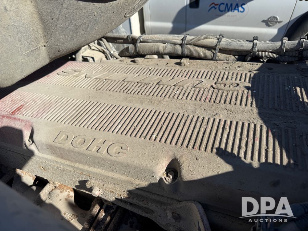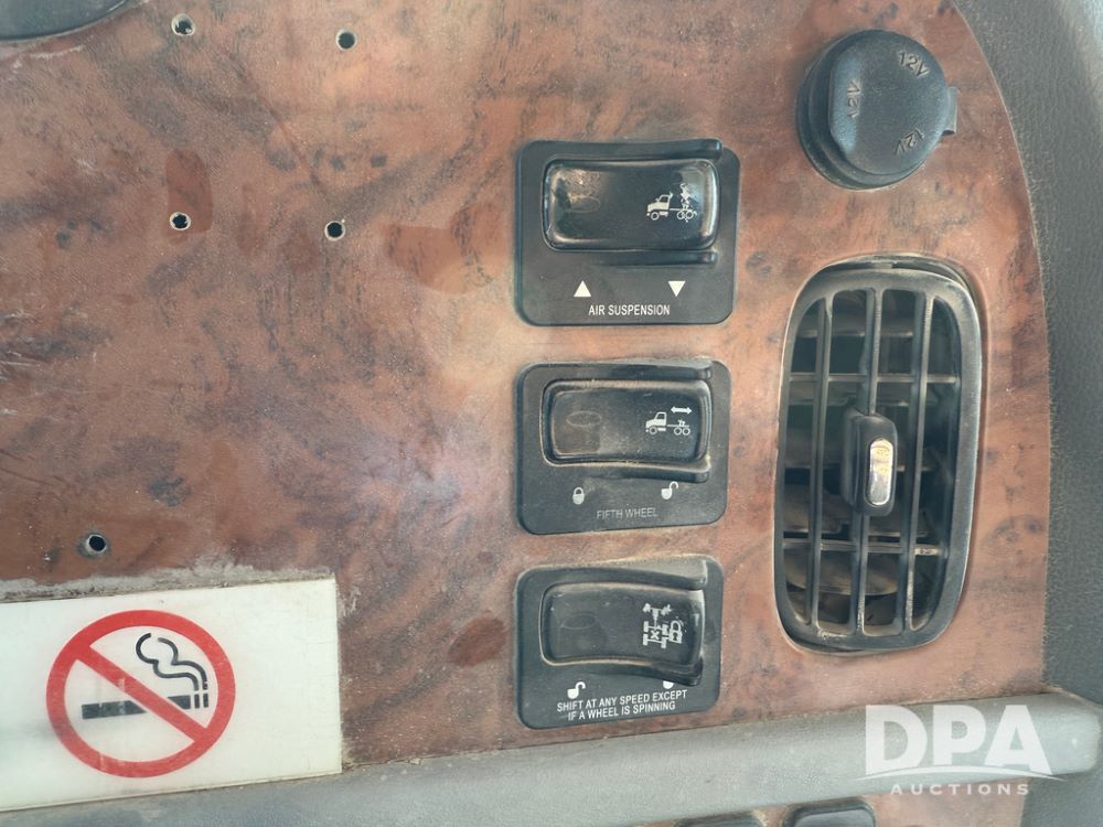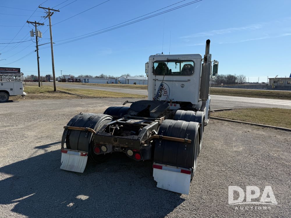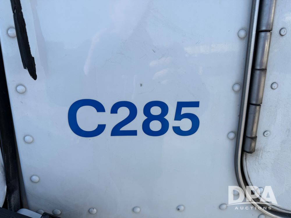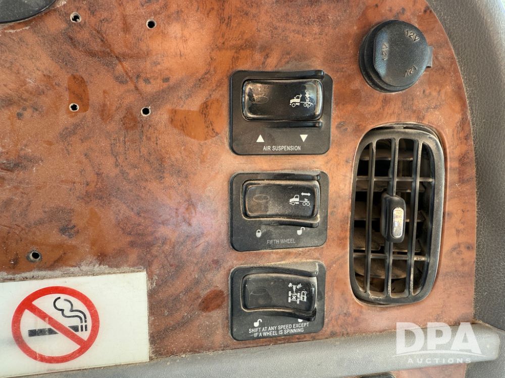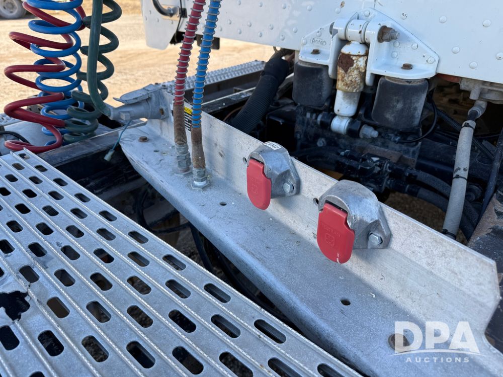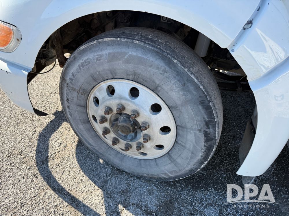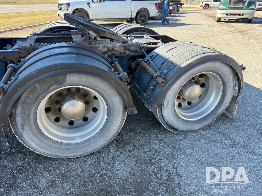 2010 Peterbilt 386 Day Cab Truck (NP6410, Unit C285), Cummins DOHC diesel engine, Eaton Fuller 10 speed transmission, heat, Am/Fm radio, cruise control, air ride cab, tandem axle, Peterbilt Low Air Leaf suspension, 5th wheel plate, dual fuel tanks, single exhaust, 295/75R22.5 rear tires, 11R22.5 front tires, RIGGUARD truck guard, engine heater, approx. 186" wheelbase, GVWR 52,000 pounds, shows 713,507 miles.
