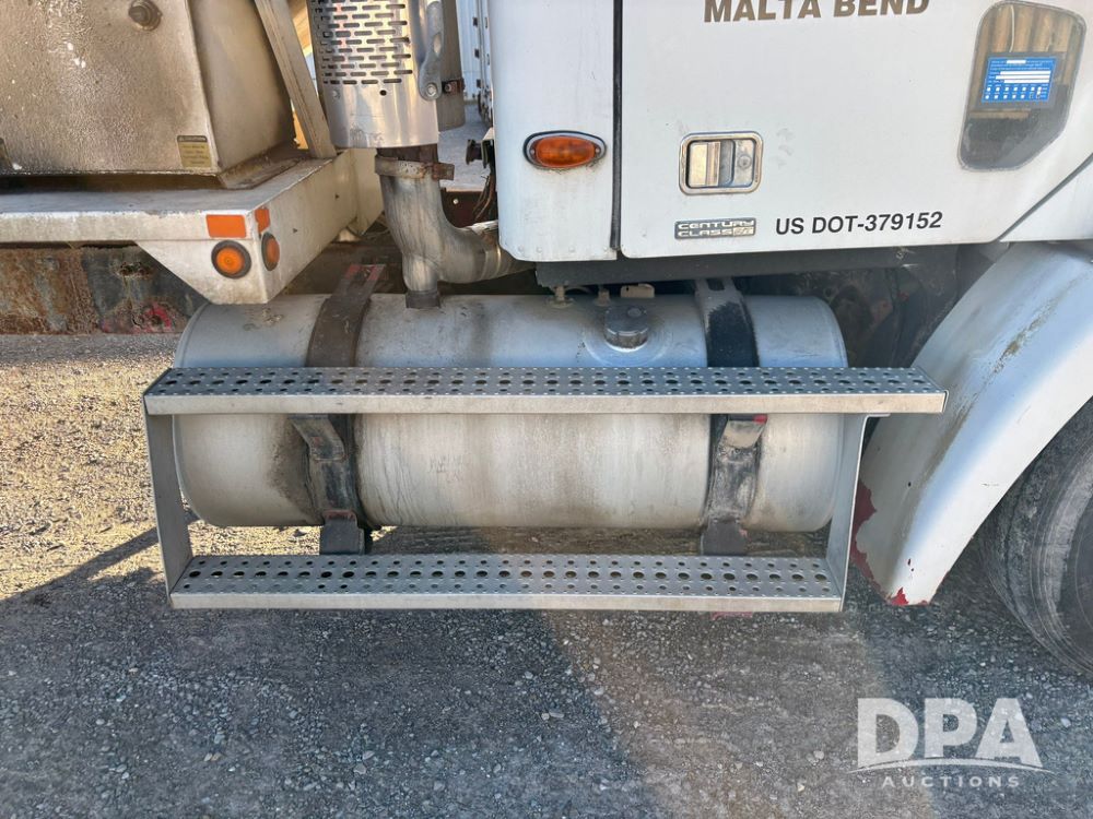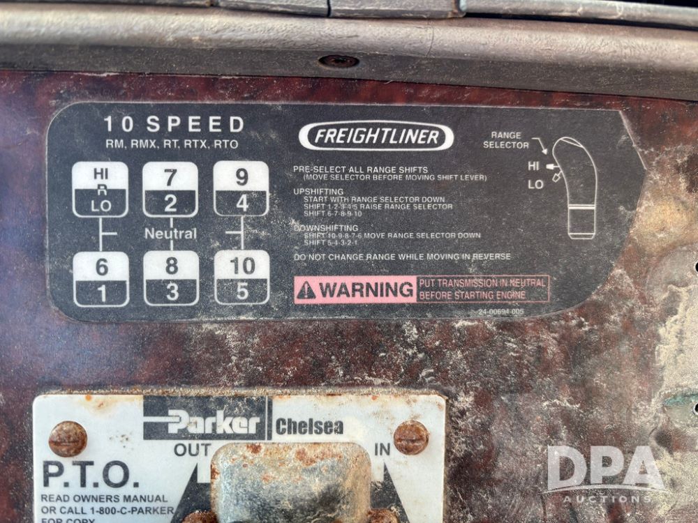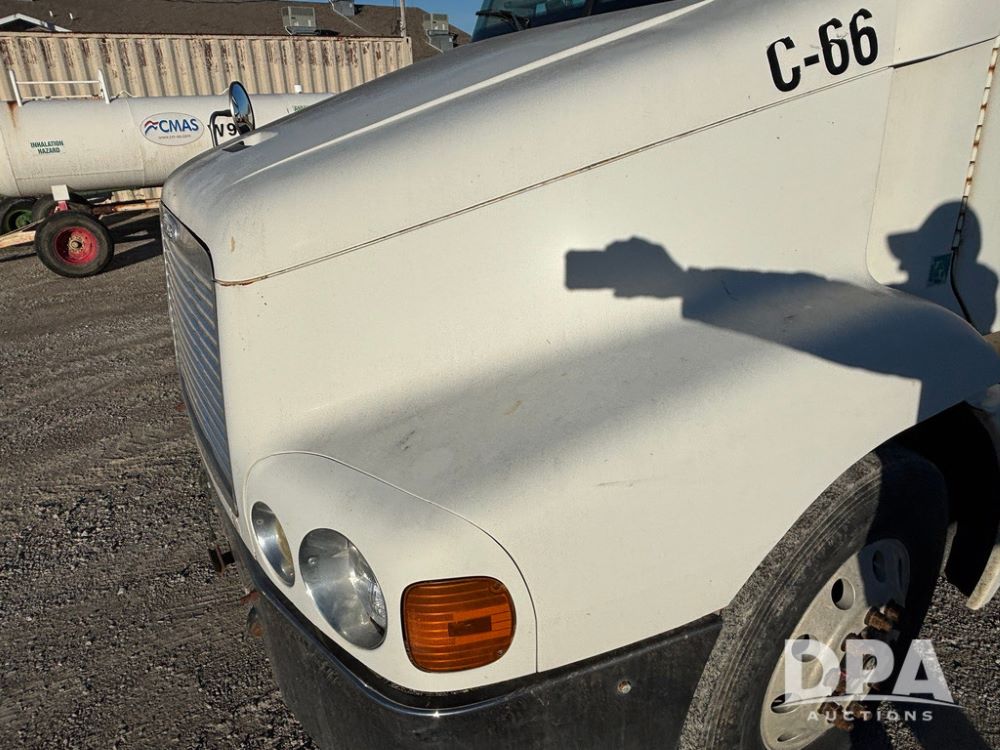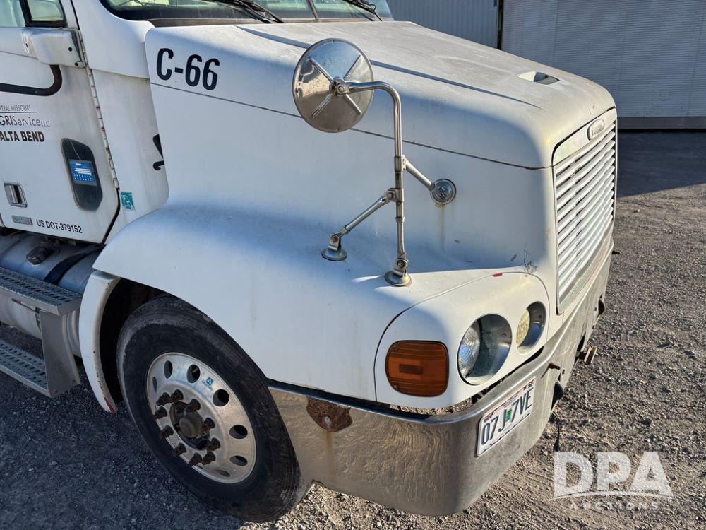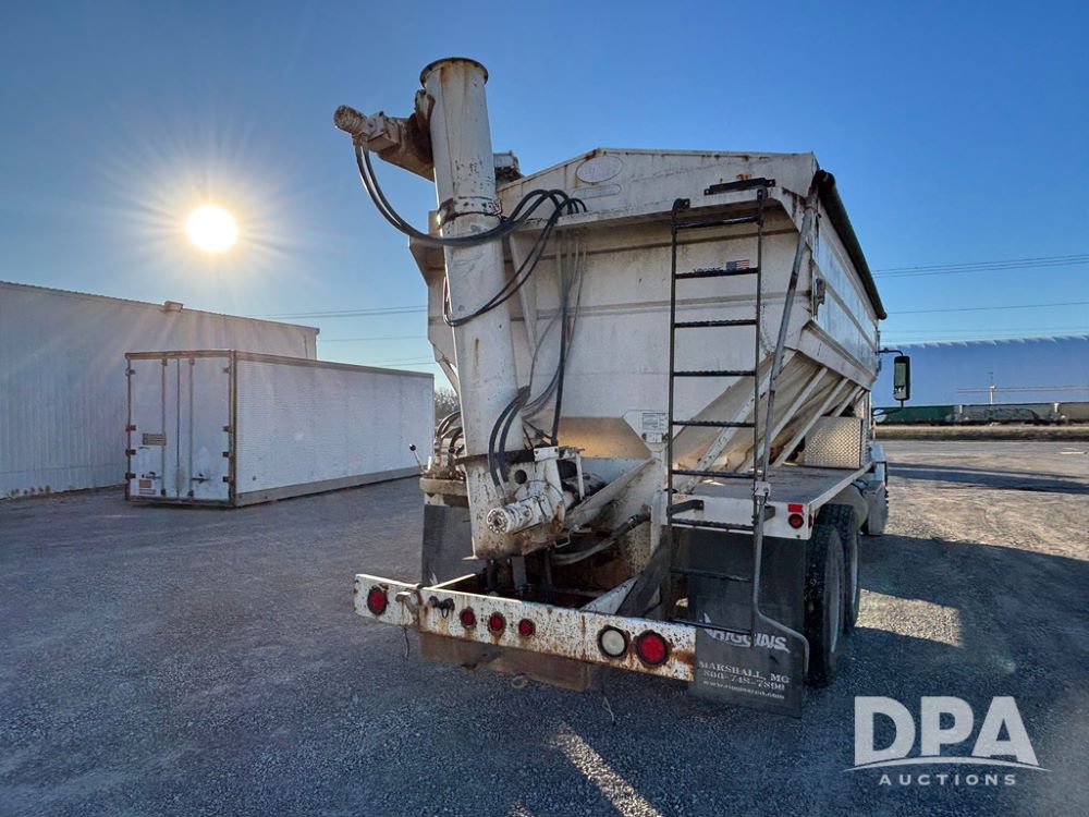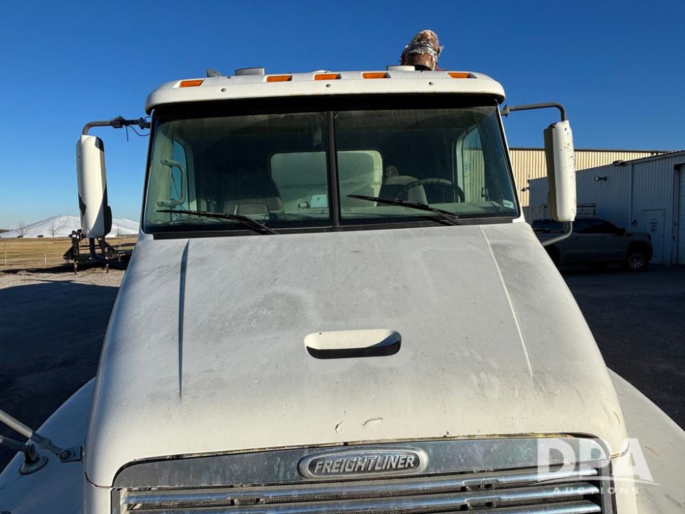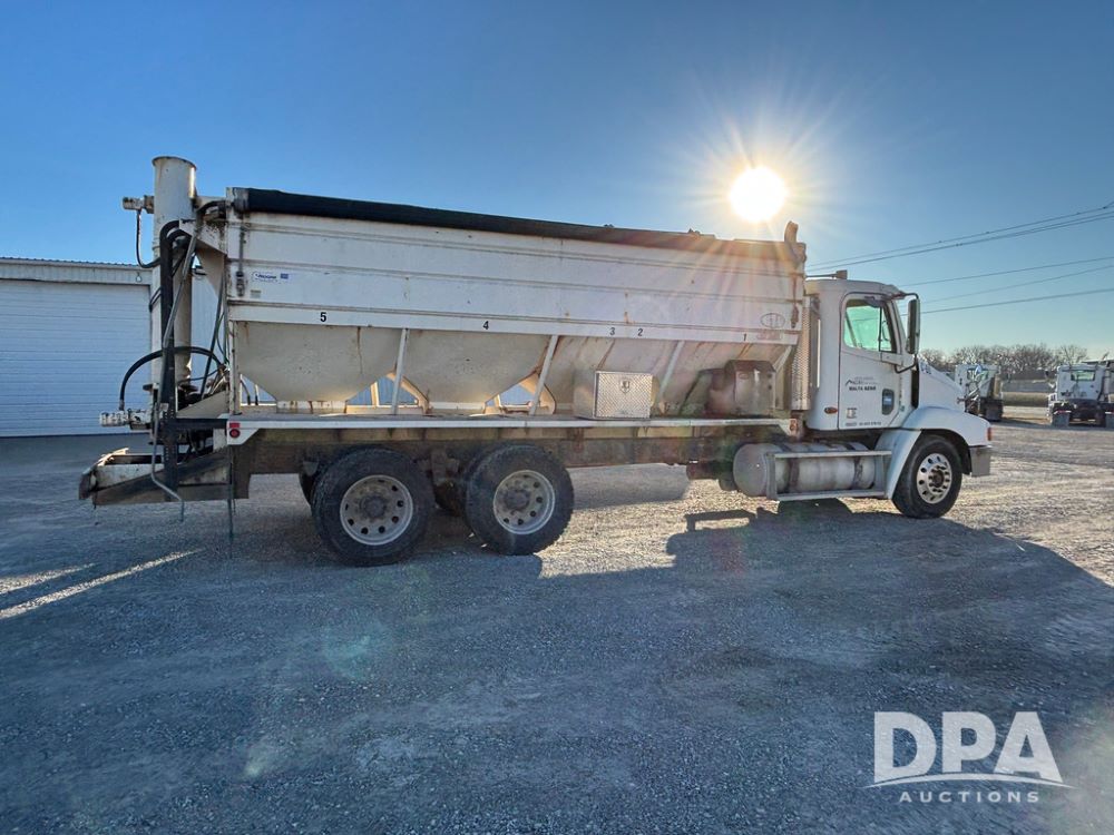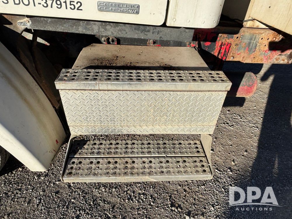 2002 Freightliner Century Class S/T Dry Tender Truck (GP12470, Unit C66), Cummins ISM diesel engine, 10 speed transmission, heat, Am/Fm radio, tandem axle, spring suspension, Ray-Man Field Charger Model 18CHIIFB dry tender box (S/N 10111783), 18 ton capacity, 5 compartment, overhead hydraulic auger, manual roll tarp, single fuel tank, single exhaust, 275/80R22.5 tires, approx. 228" wheelbase, GVWR 52,000 pounds, shows 674,894 miles.