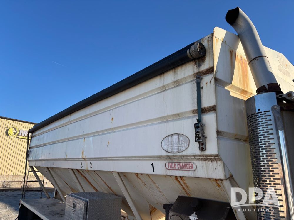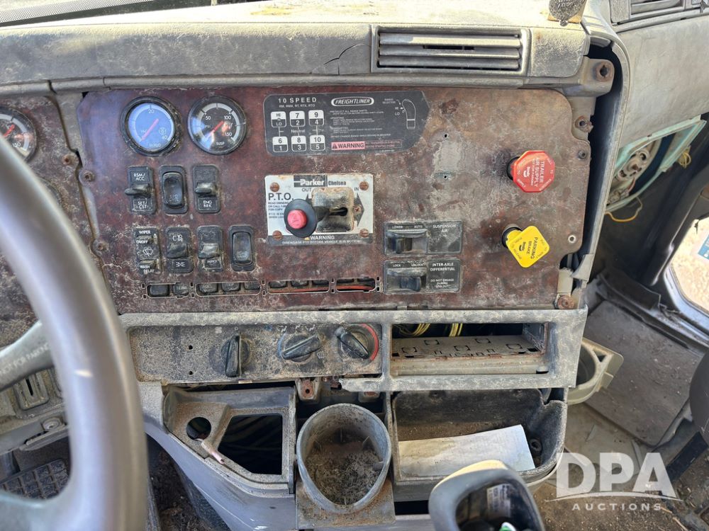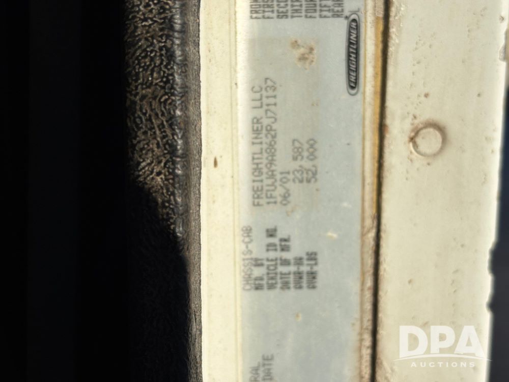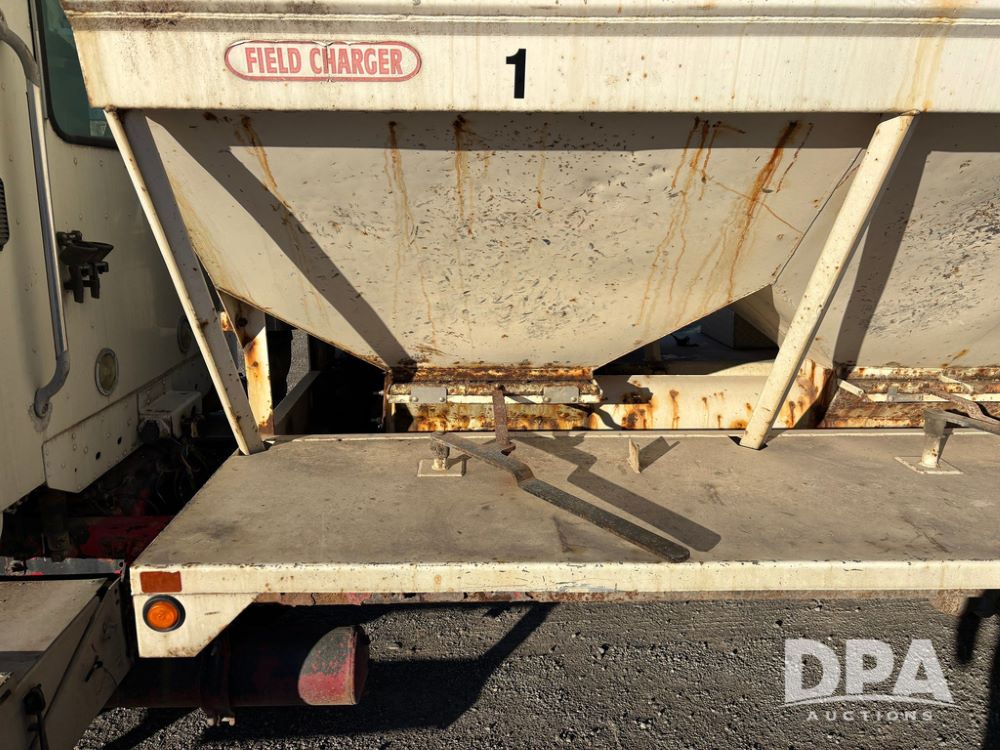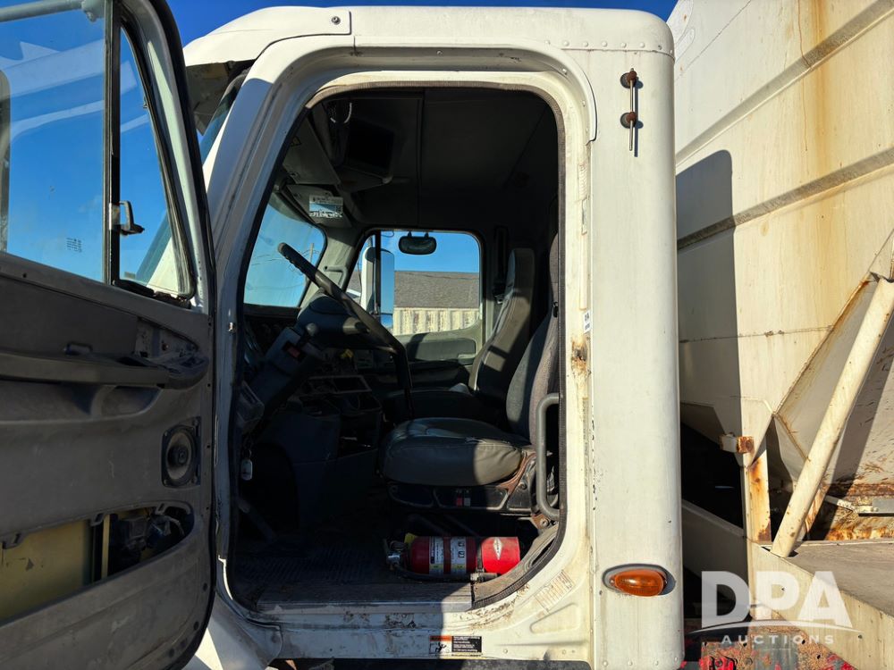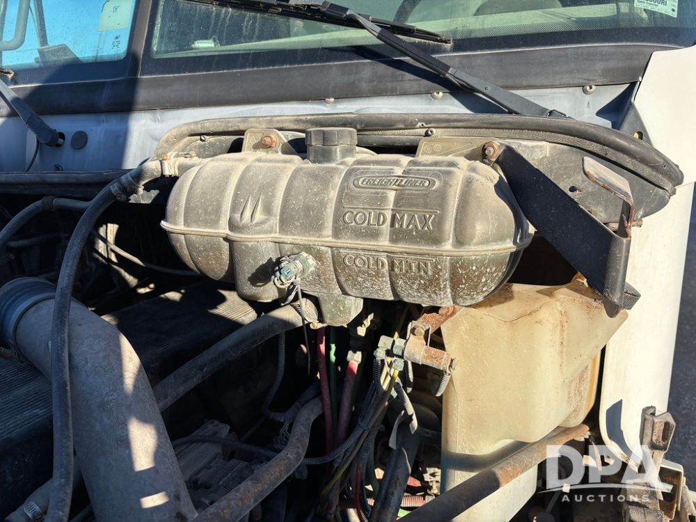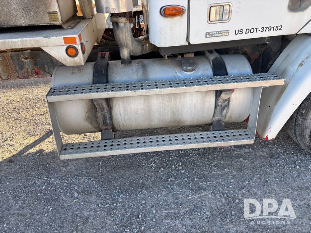 2002 Freightliner Century Class S/T Dry Tender Truck (GP12470, Unit C66), Cummins ISM diesel engine, 10 speed transmission, heat, Am/Fm radio, tandem axle, spring suspension, Ray-Man Field Charger Model 18CHIIFB dry tender box (S/N 10111783), 18 ton capacity, 5 compartment, overhead hydraulic auger, manual roll tarp, single fuel tank, single exhaust, 275/80R22.5 tires, approx. 228" wheelbase, GVWR 52,000 pounds, shows 674,894 miles.