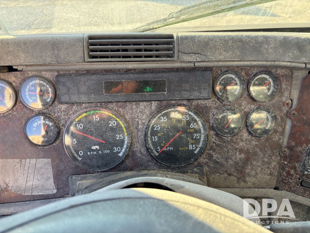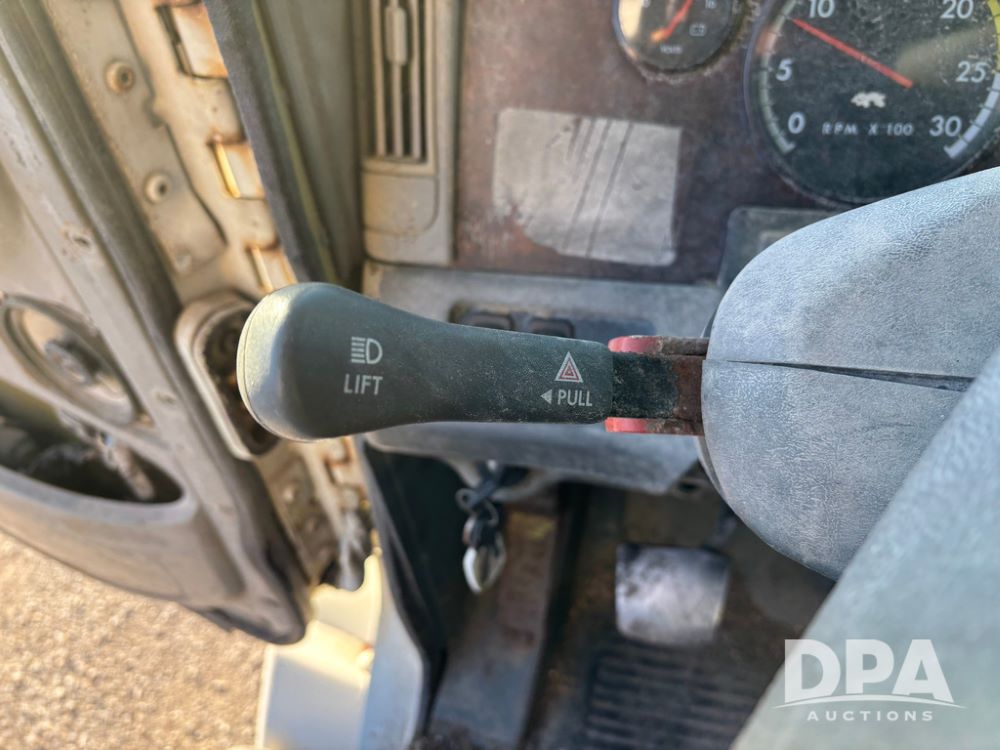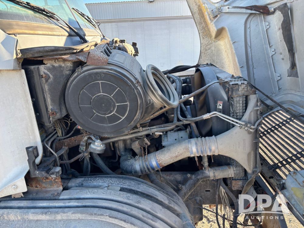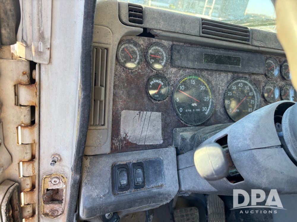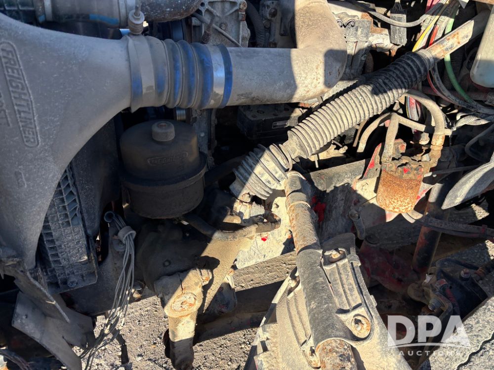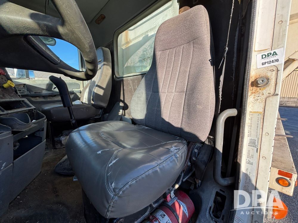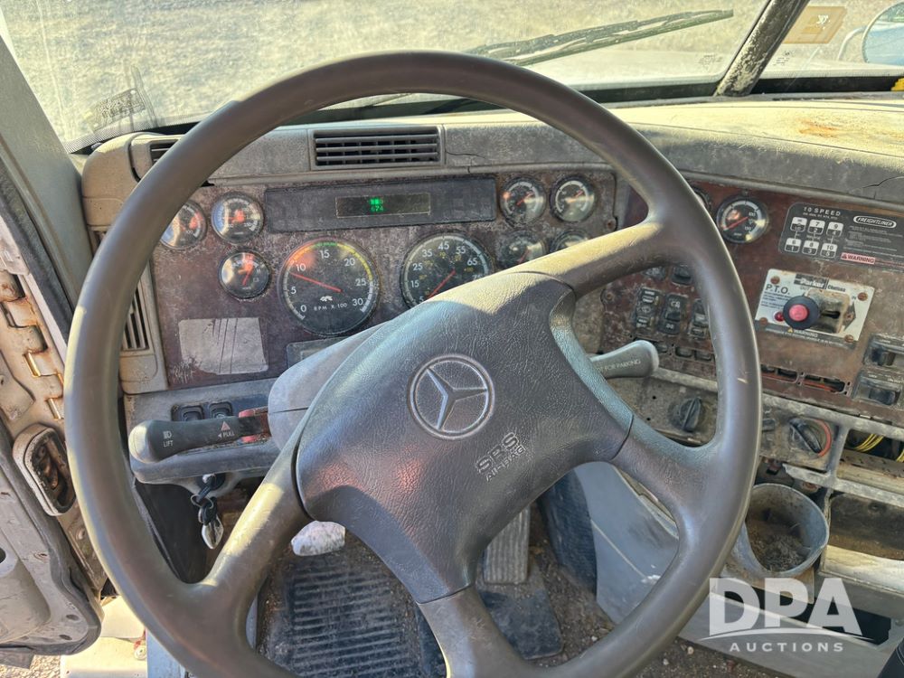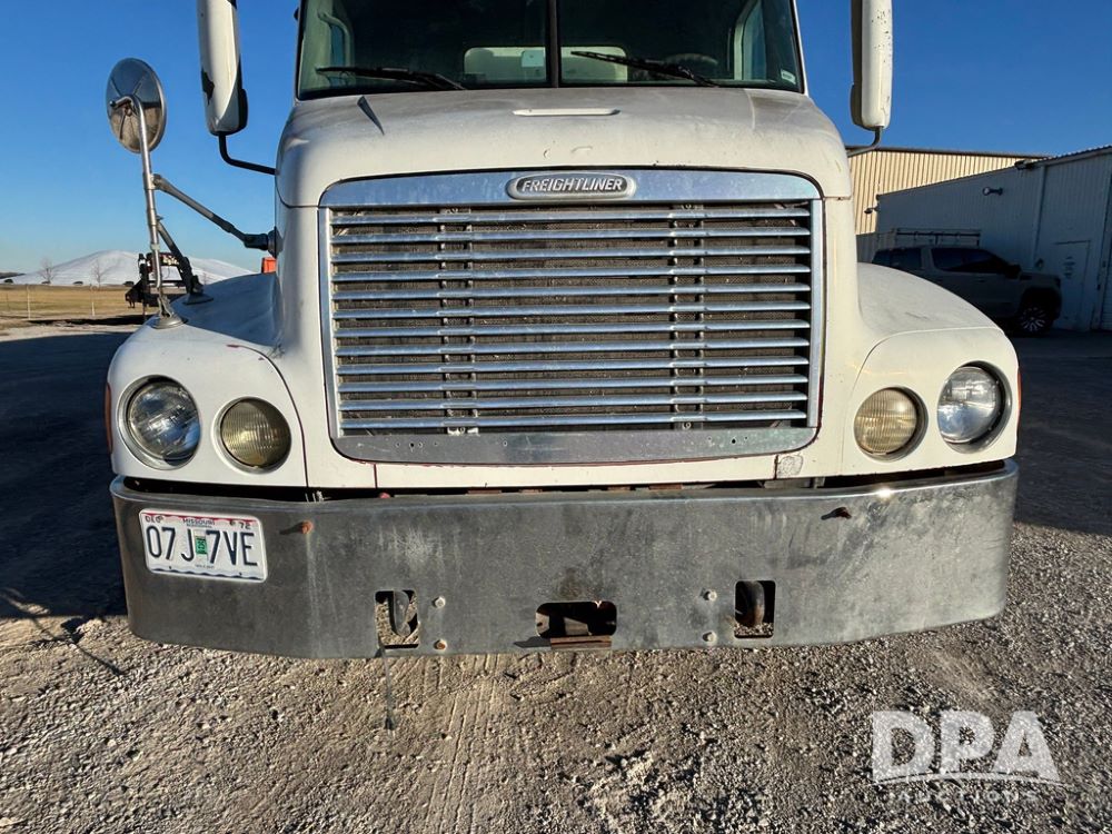2002 Freightliner Century Class S/T Dry Tender Truck (GP12470, Unit C66), Cummins ISM diesel engine, 10 speed transmission, heat, Am/Fm radio, tandem axle, spring suspension, Ray-Man Field Charger Model 18CHIIFB dry tender box (S/N 10111783), 18 ton capacity, 5 compartment, overhead hydraulic auger, manual roll tarp, single fuel tank, single exhaust, 275/80R22.5 tires, approx. 228" wheelbase, GVWR 52,000 pounds, shows 674,894 miles.