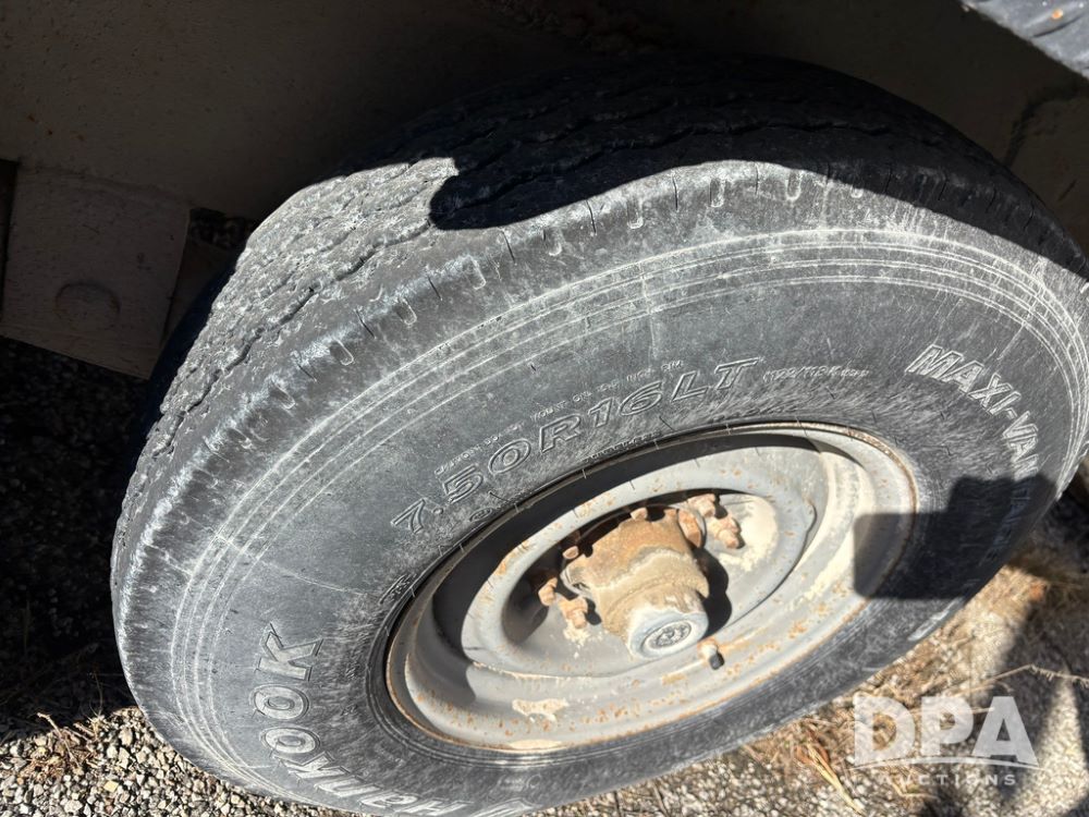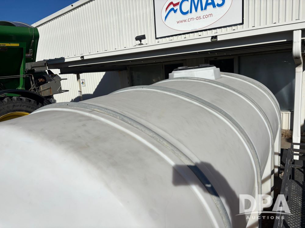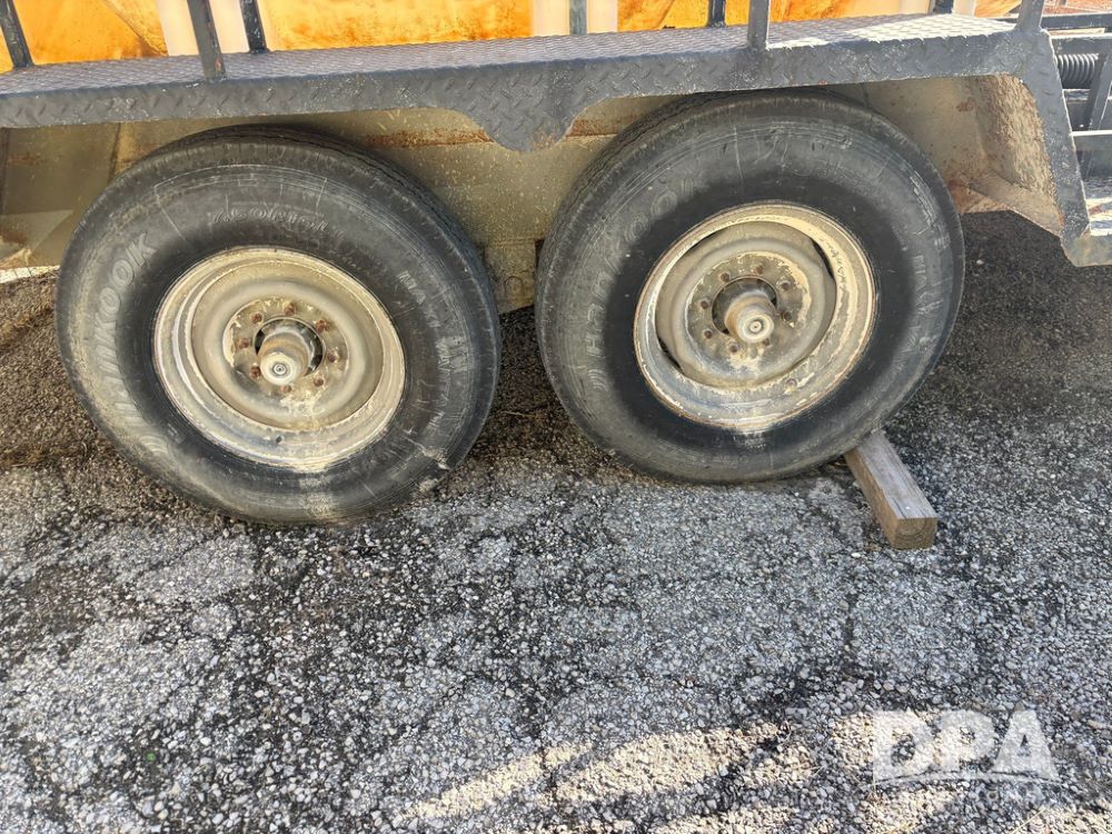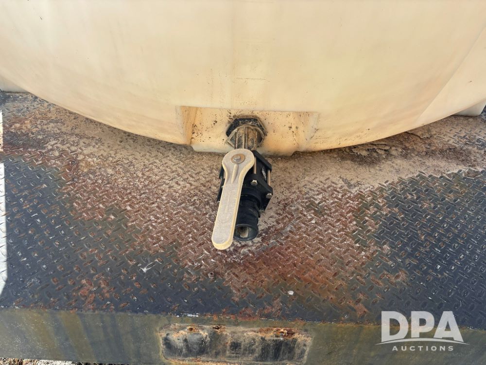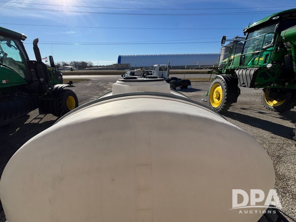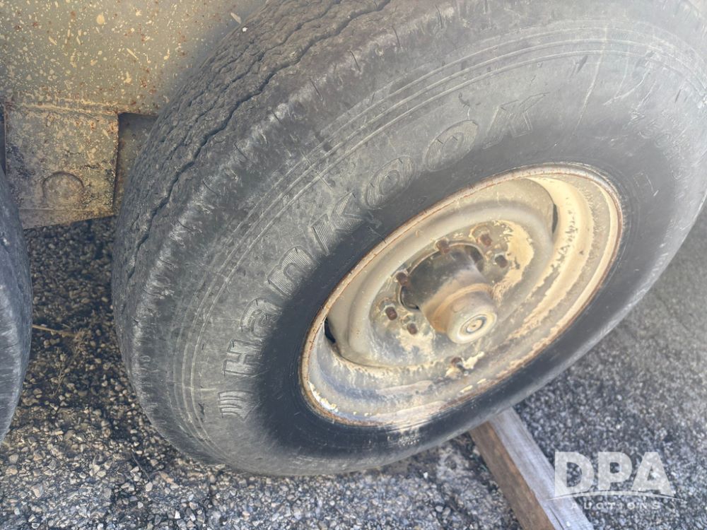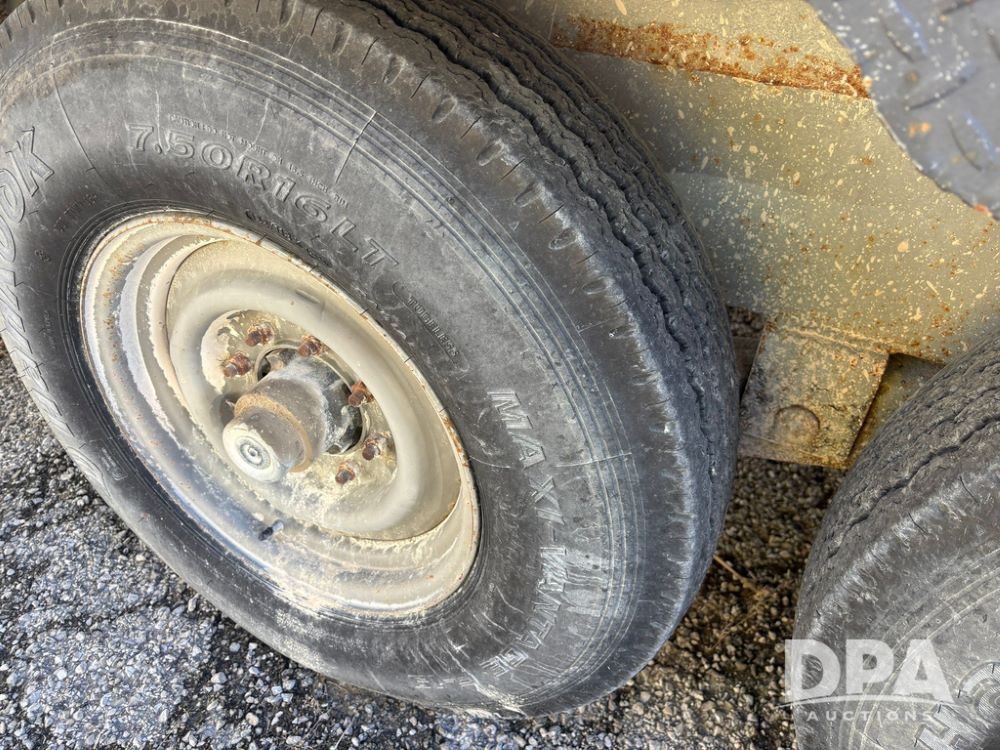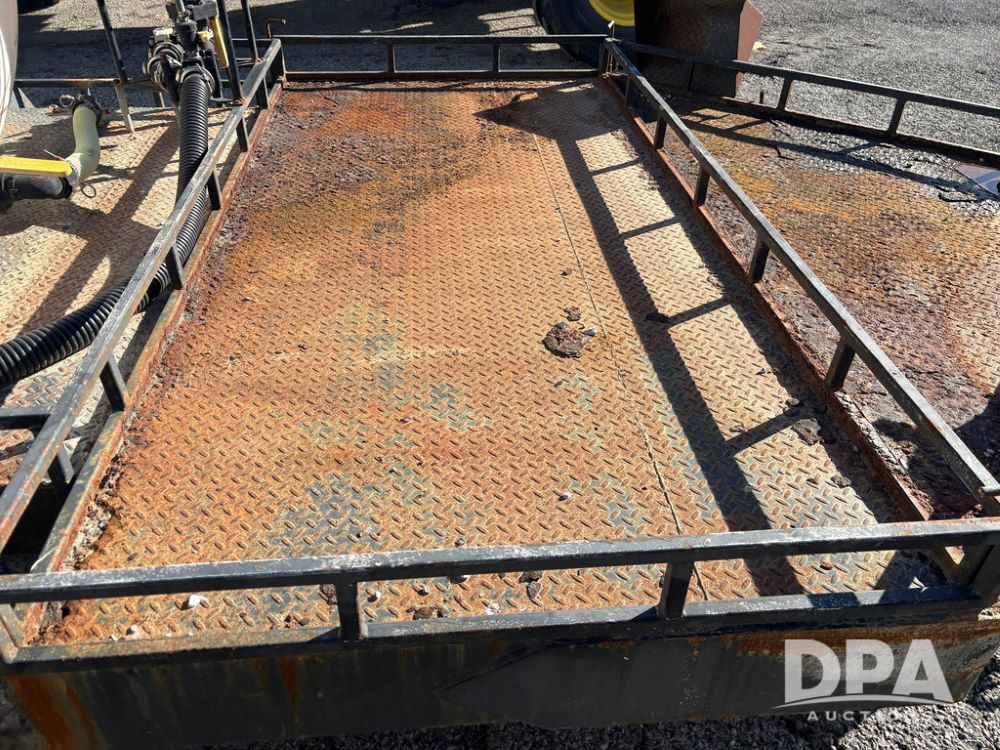 1991 Homemade Liquid Trailer (GP12478, Unit M9), tandem axle, spring suspension, front chemical platform, 1,250 gallon poly flat bottom liquid tank, 16 gallon poly cone bottom inductor tank, 7.50R16 tires.