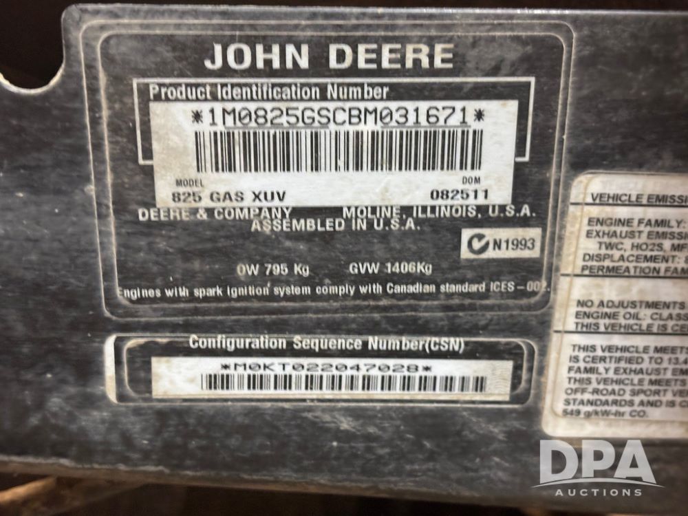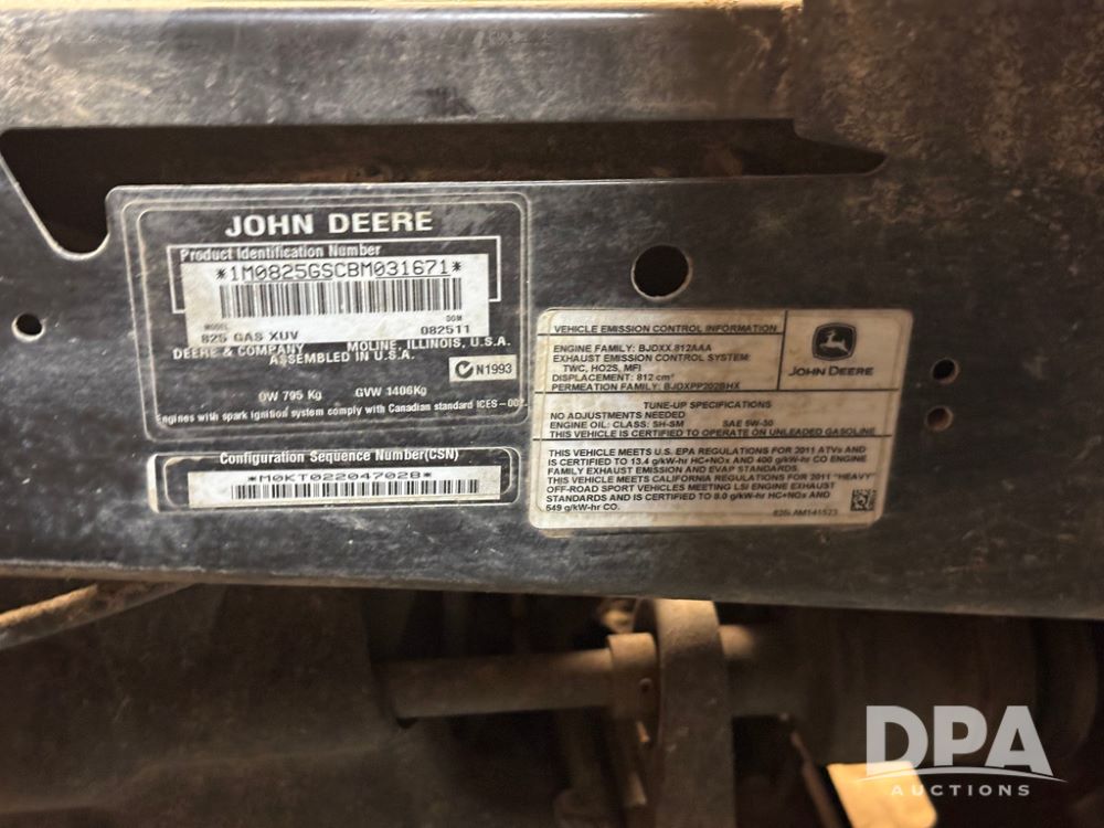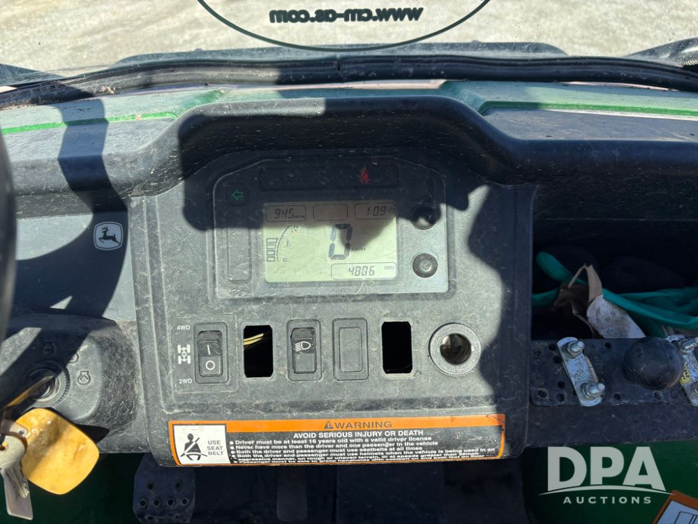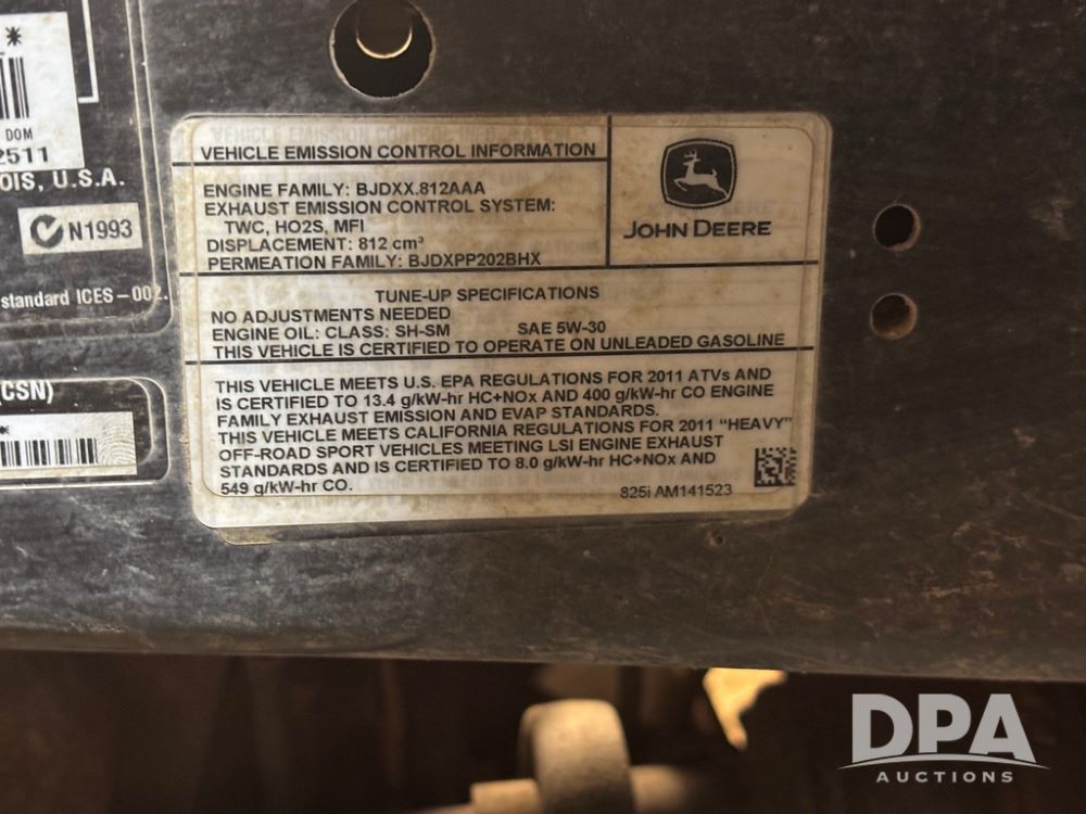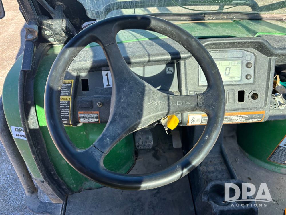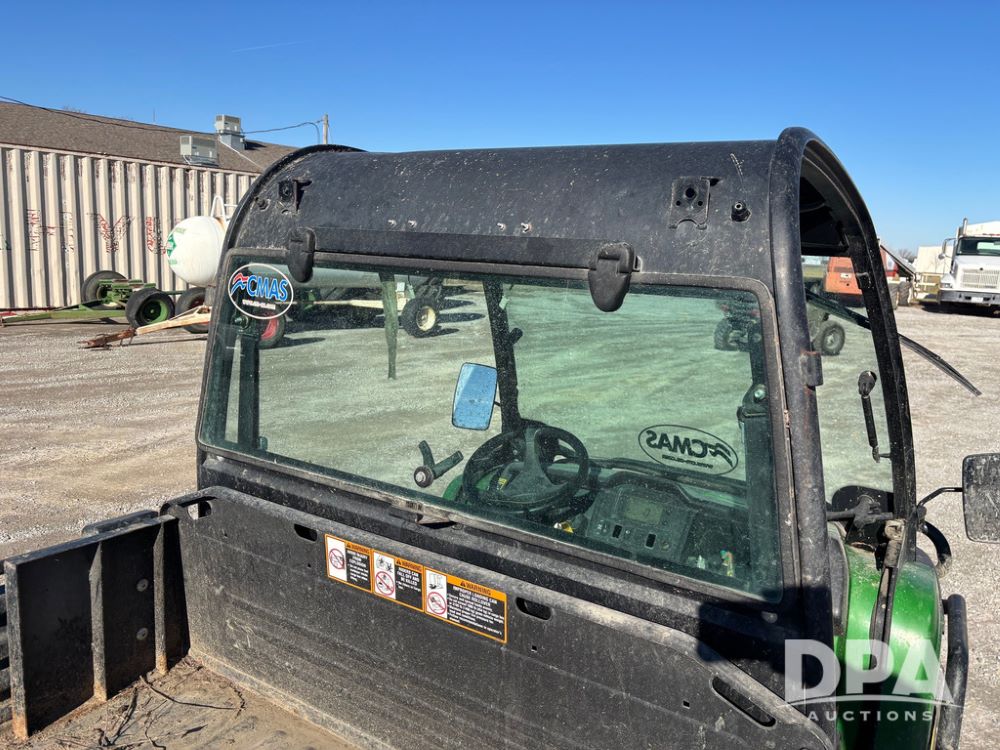 John Deere 825i Gator (GP12479, Unit C107), EFI, John Deere DOHC 12 Valve - Inline 3 cylinder gas engine, automatic, open station, windshield, grill guard, 27x9.00R14 tires, independent rear suspension, shows 4,806 miles.