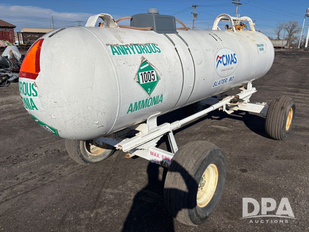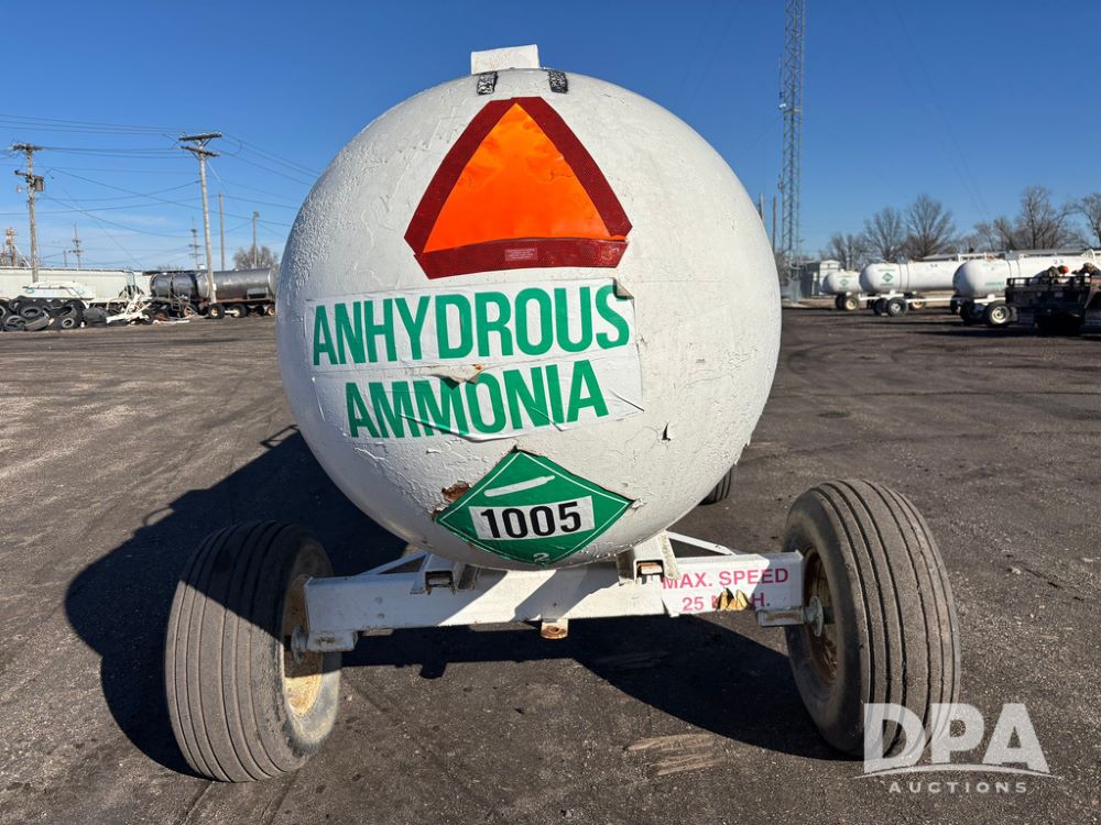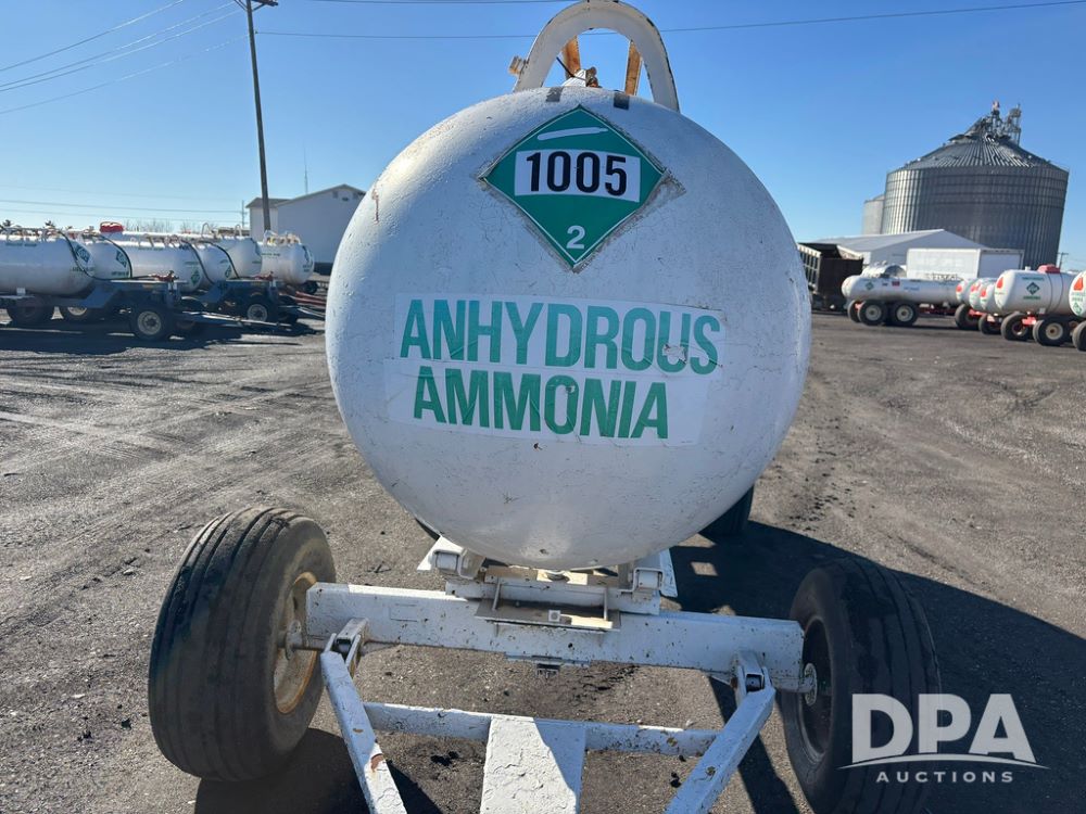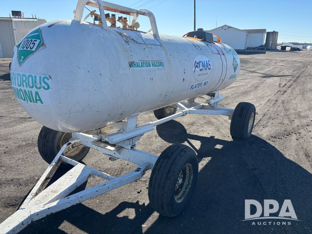 NH3 Nurse Tank (GP12496, Tank 11), Beaird 1,000 gallon anhydrous nurse tank, top front fill, 4 wheel running gear, 12.5L-15 flotation tires, water tank, data plate.