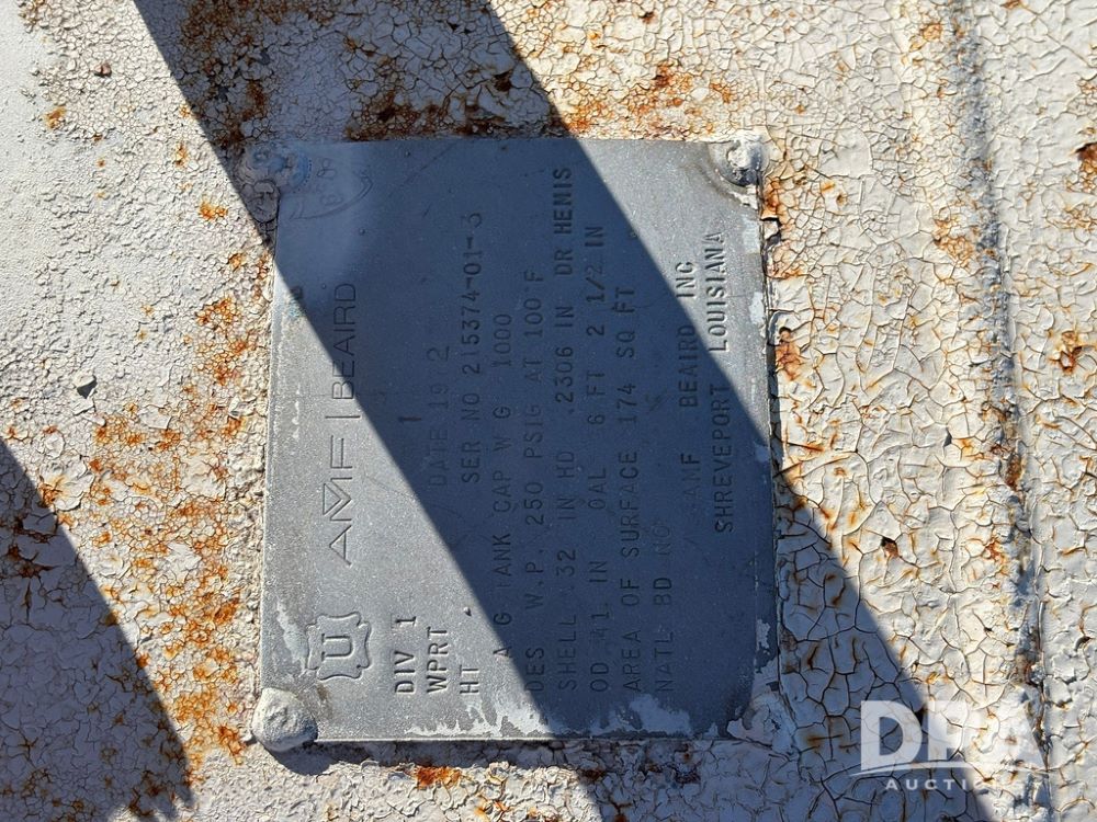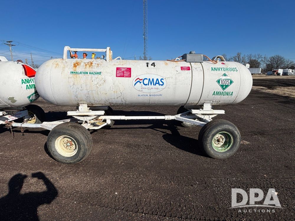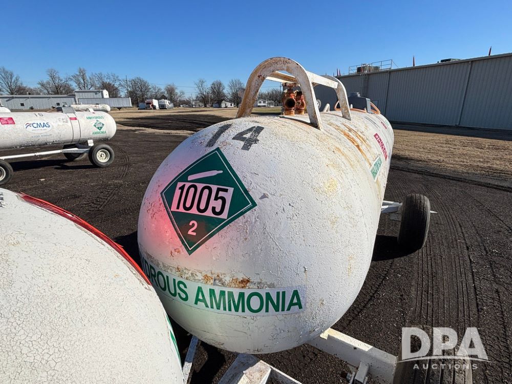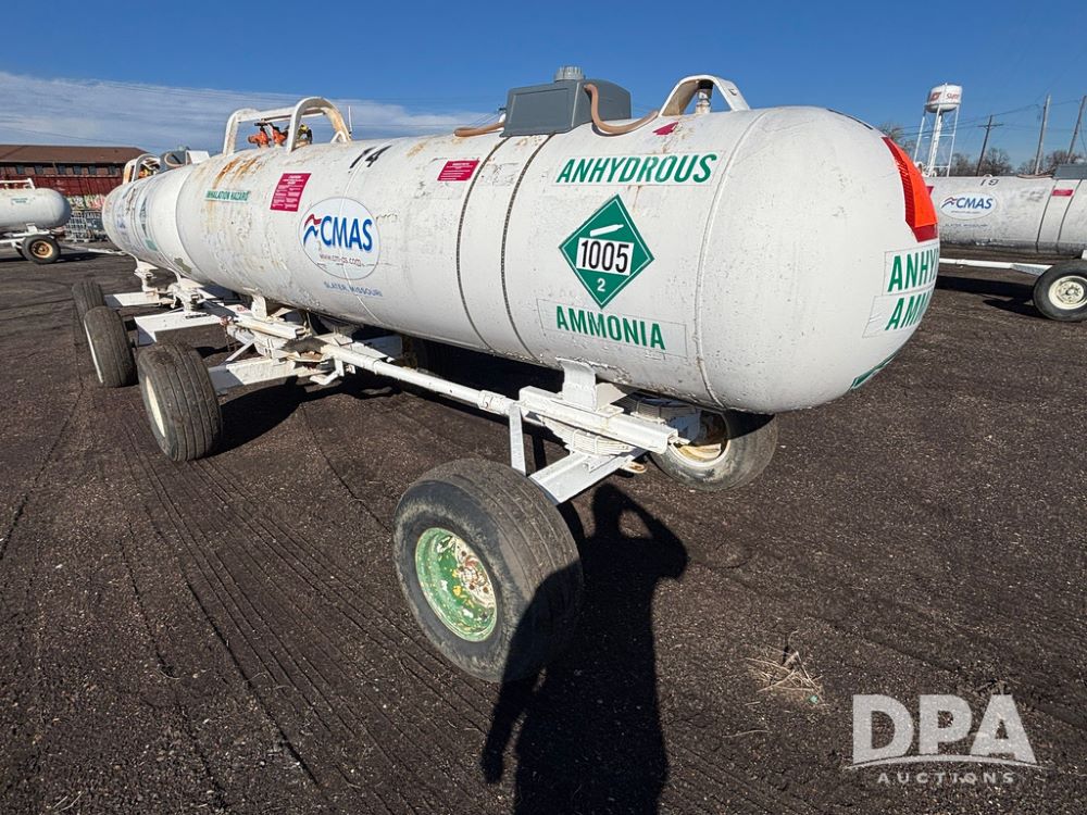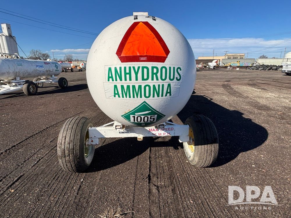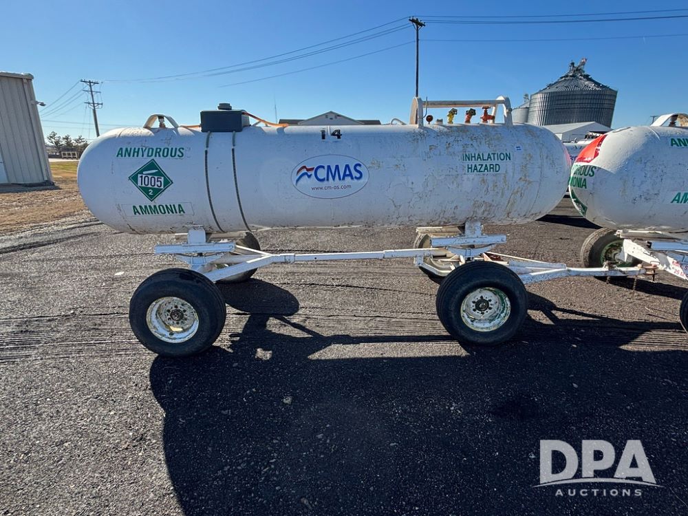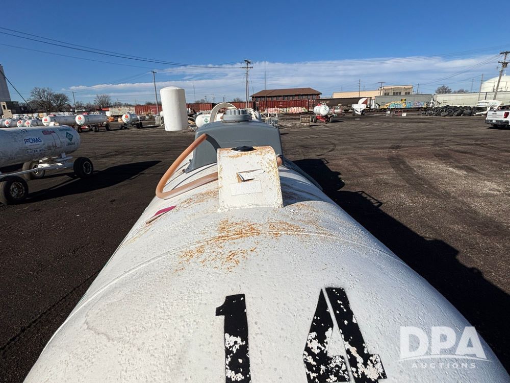 NH3 Nurse Tank (GP12494, Tank 14), Beaird 1,000 gallon anhydrous nurse tank, top front fill, 4 wheel running gear, 12.5L-15 flotation tires, water tank, data plate.