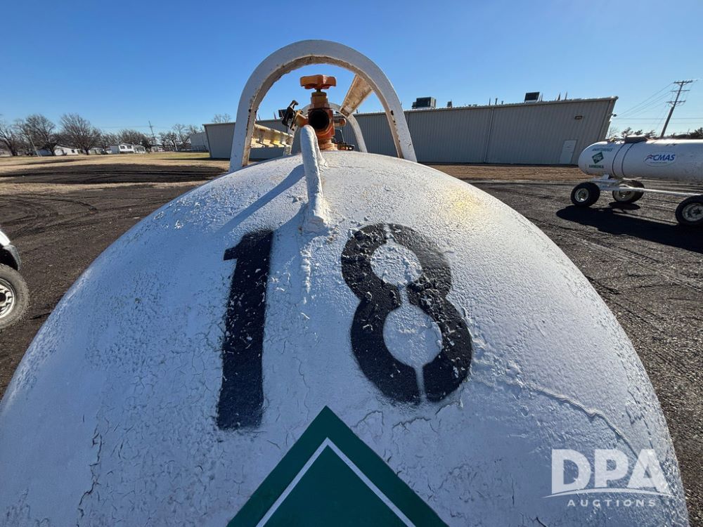 NH3 Nurse Tank (GP12491, Tank 18), Chemi-Trol 1,000 gallon anhydrous nurse tank, top front fill, 4 wheel running gear, 11L-15 flotation tires, water tank, data plate.