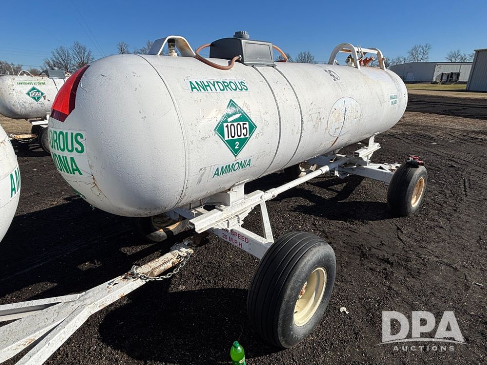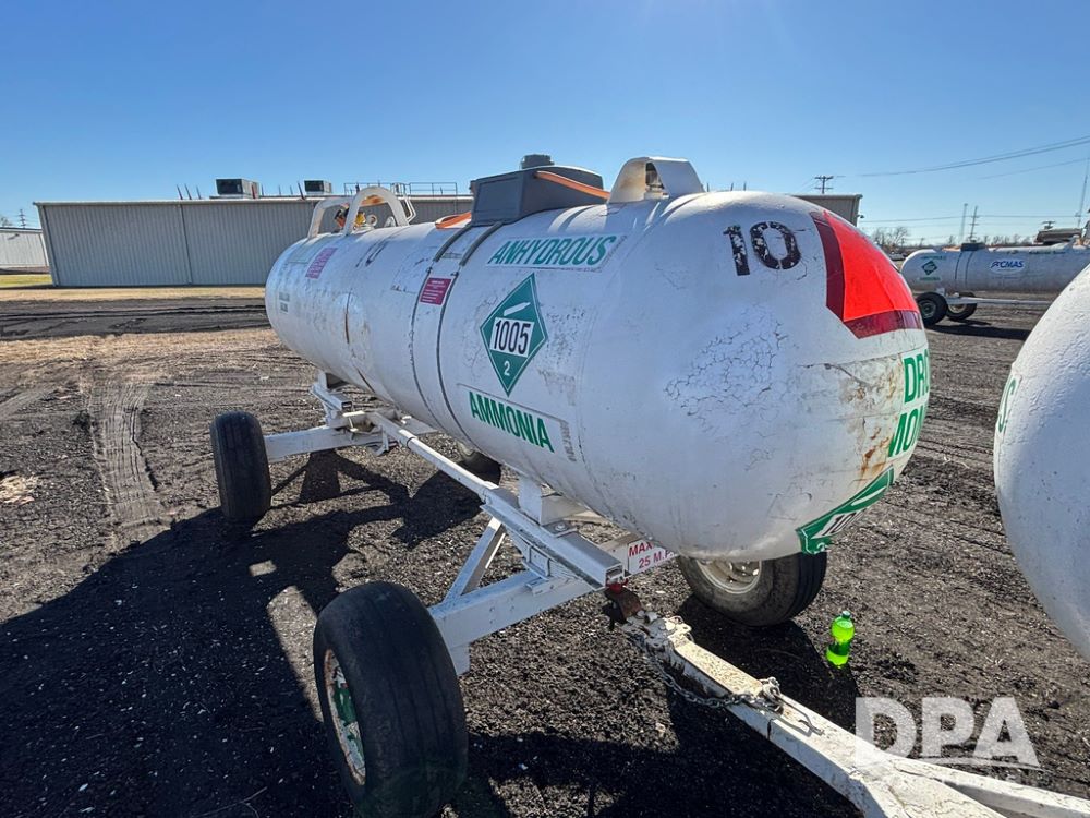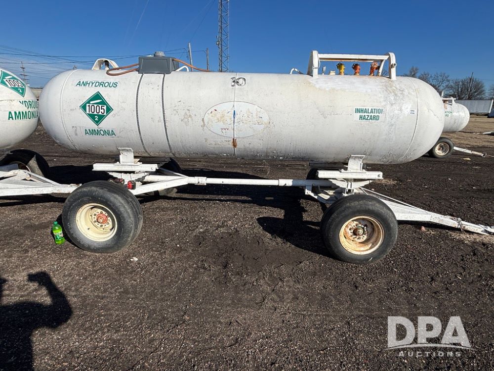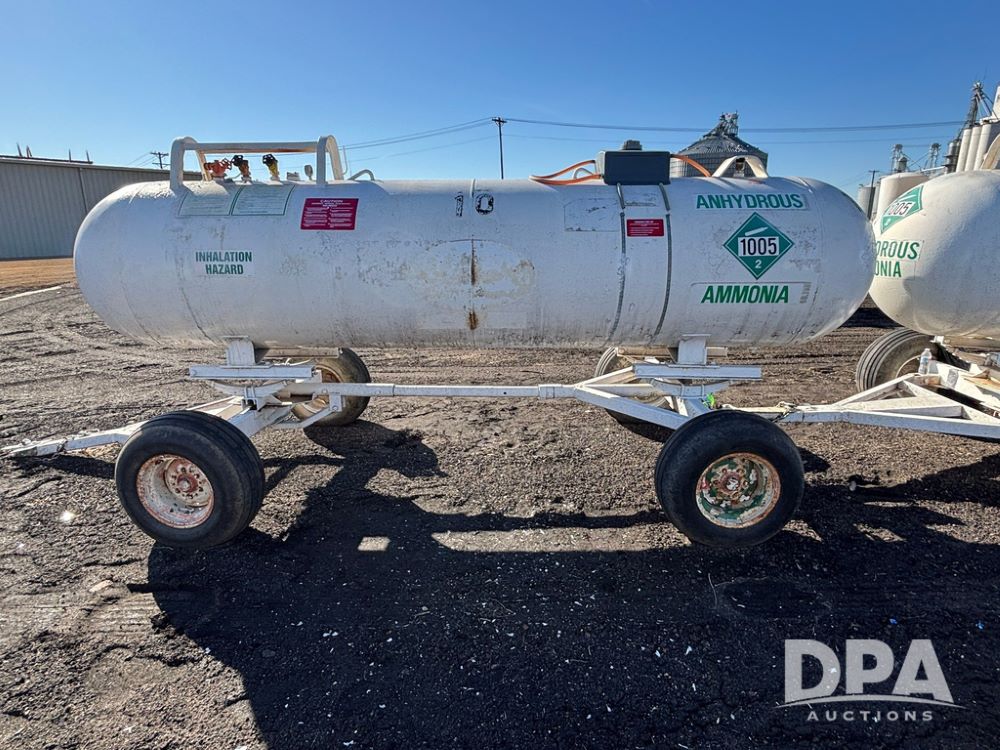 NH3 Nurse Tank (GP12489, Tank 10), Beaird 1,000 gallon anhydrous nurse tank, top front fill, 4 wheel running gear, 11L-15 flotation tires, water tank, data plate.