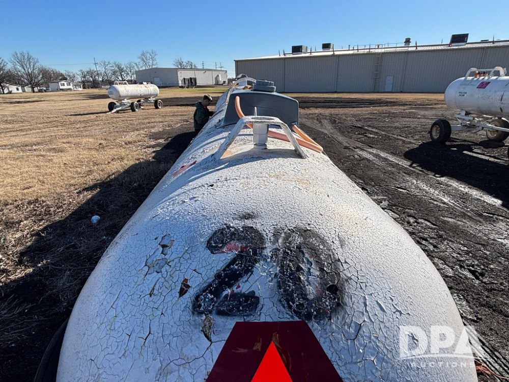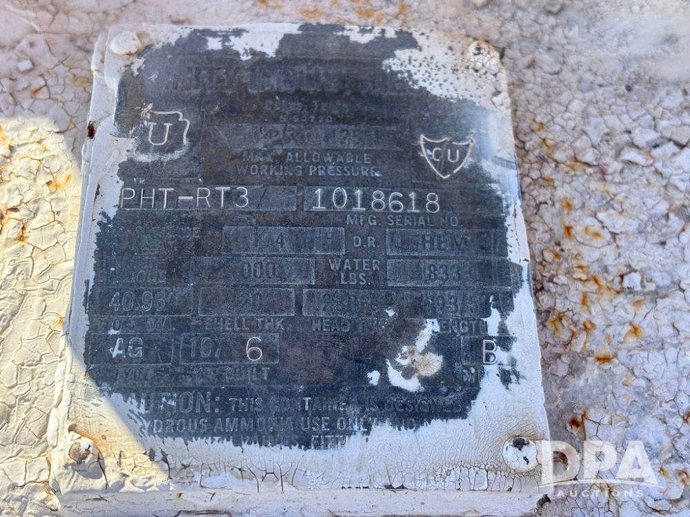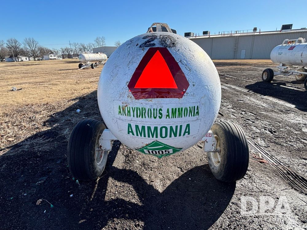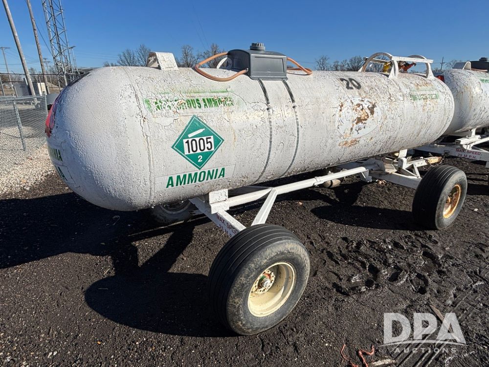NH3 Nurse Tank (GP12485, Tank 20), Trinity Industries Inc. 1,000 gallon anhydrous nurse tank, top front fill, 4 wheel running gear, 12.5L-15 flotation tires, water tank, data plate.