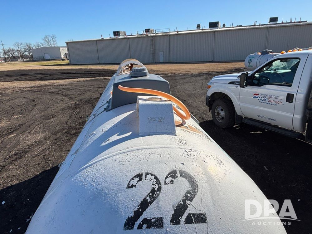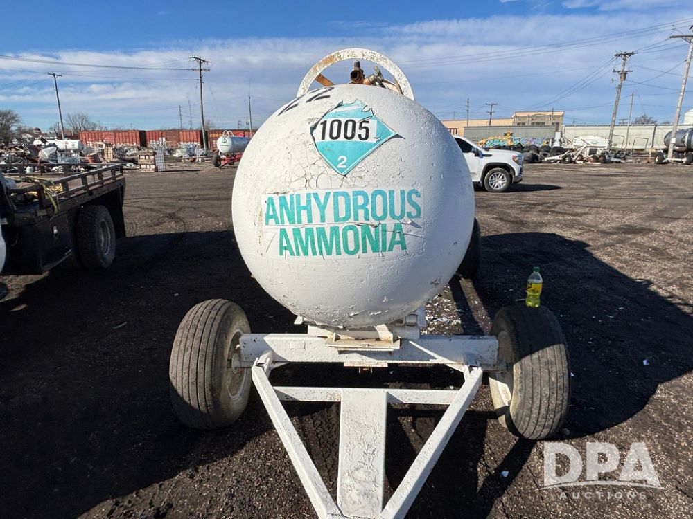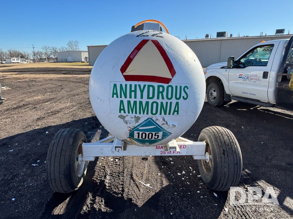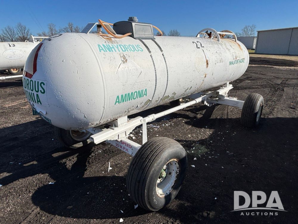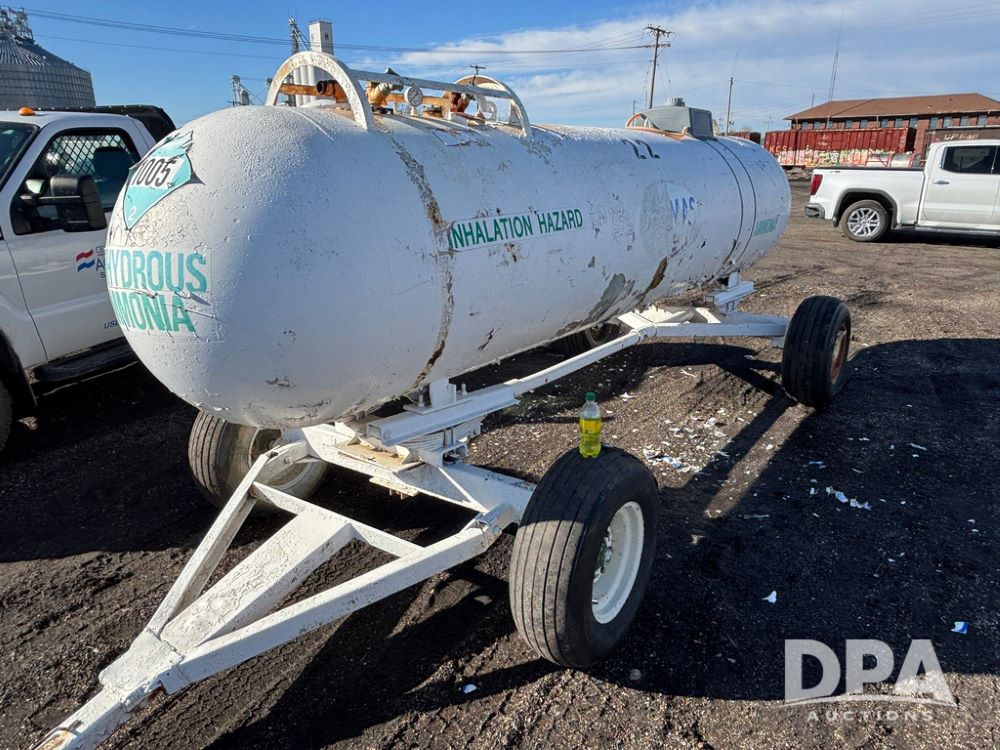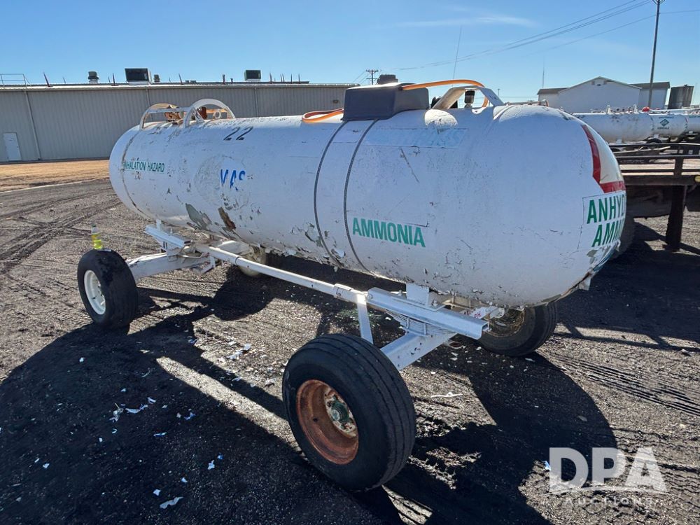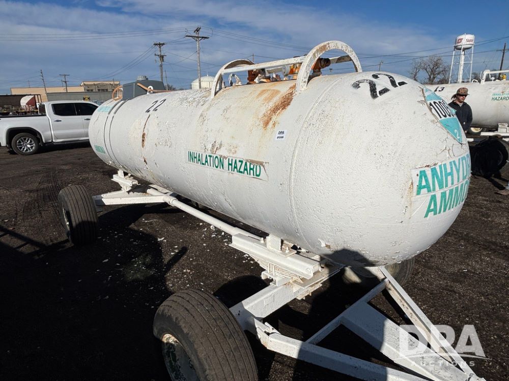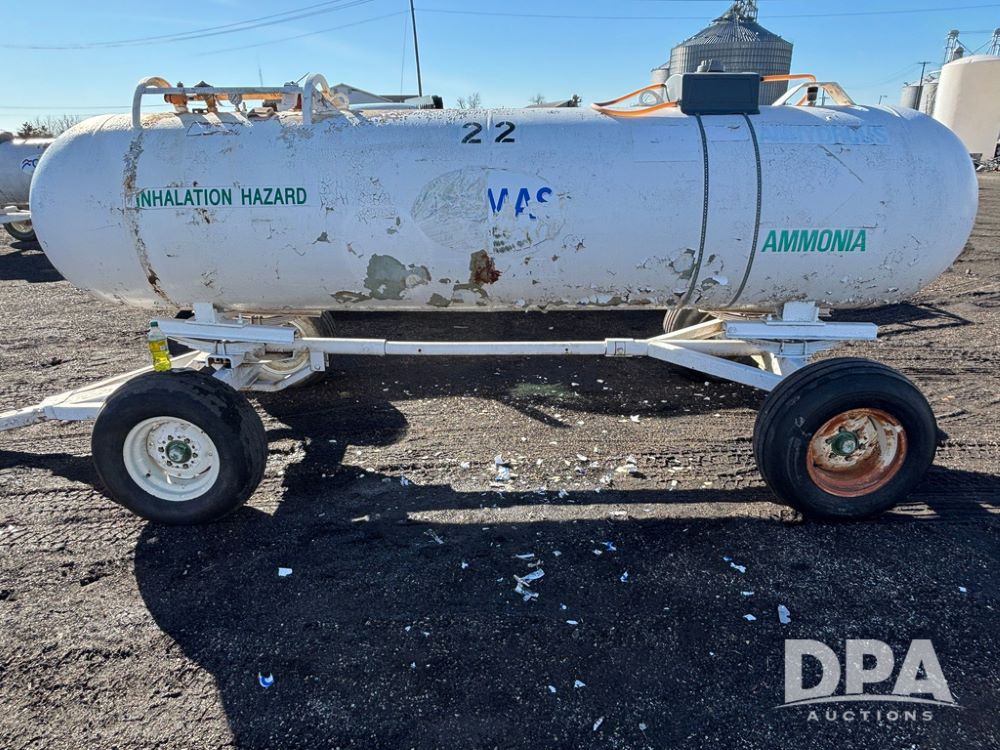 NH3 Nurse Tank (GP12490, Tank 22), 1,000 gallon anhydrous nurse tank, top front fill, 4 wheel running gear, flotation tires, water tank, data plate.