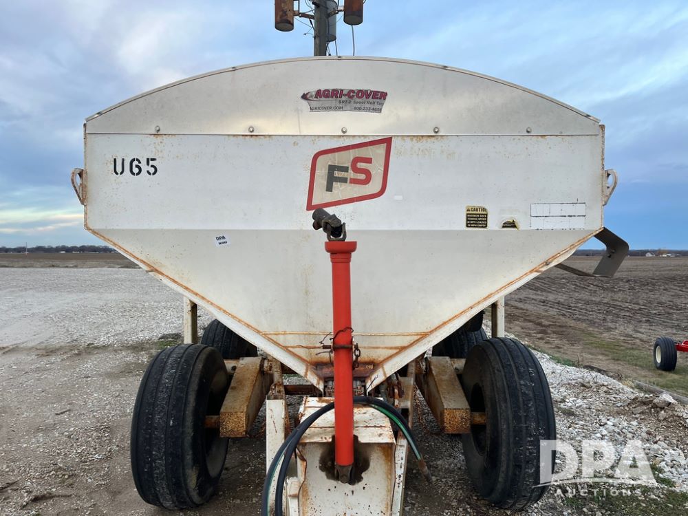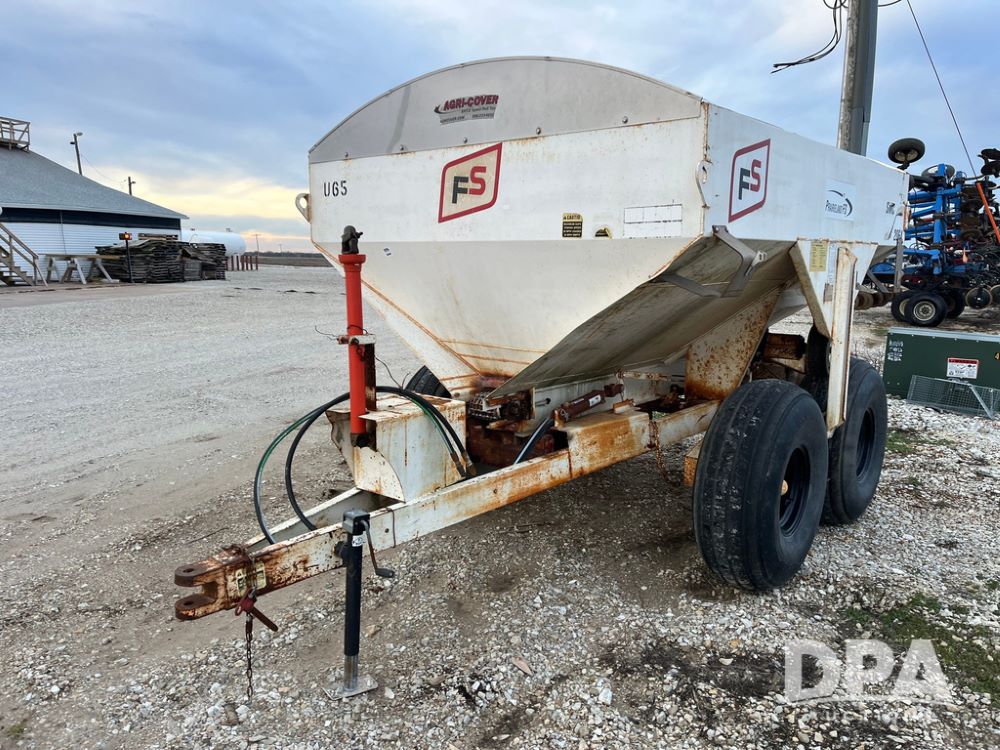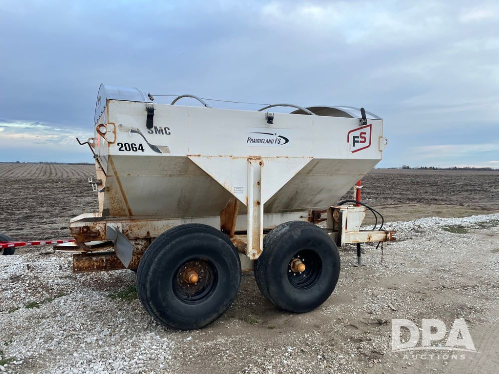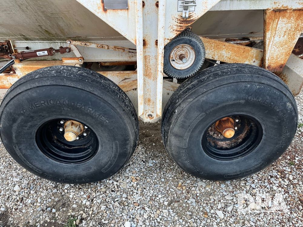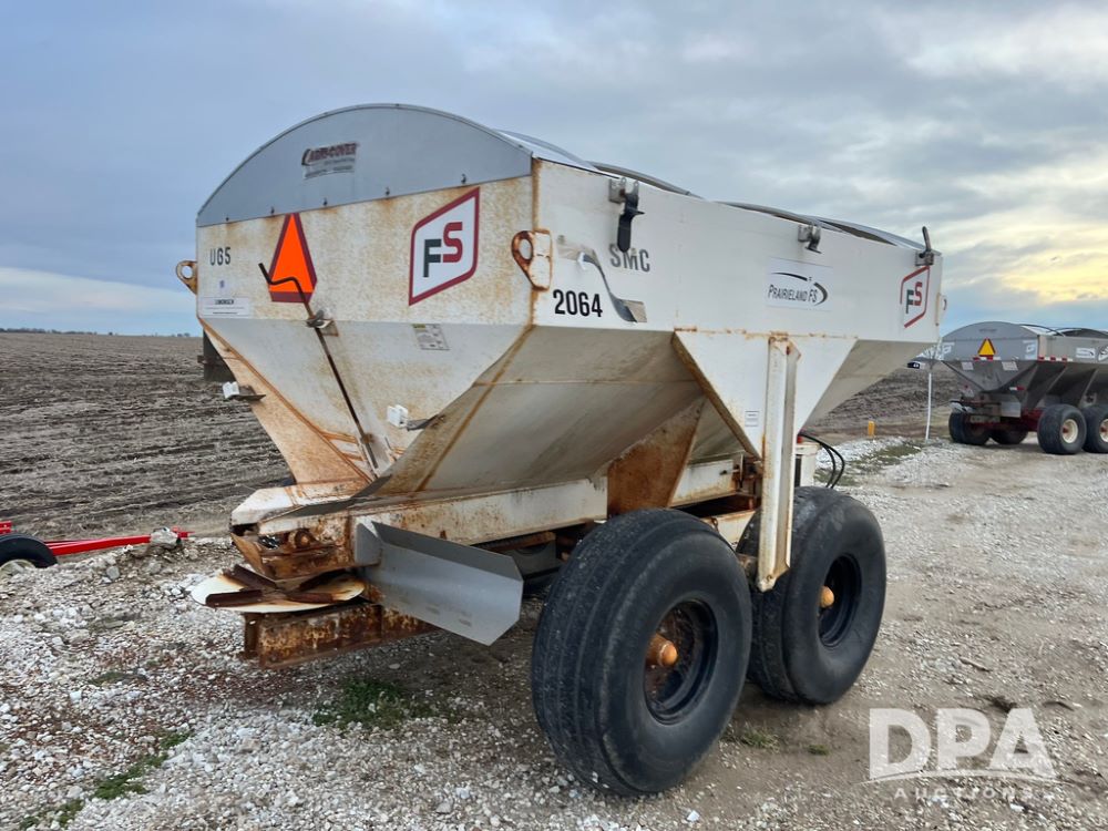 Simonsen Dry Spreader (JN3669, Unit U65), Simonsen 2064 dry spreader, single spinner, PTO, tandem axle, 16.5L-16.1 flotation tires.