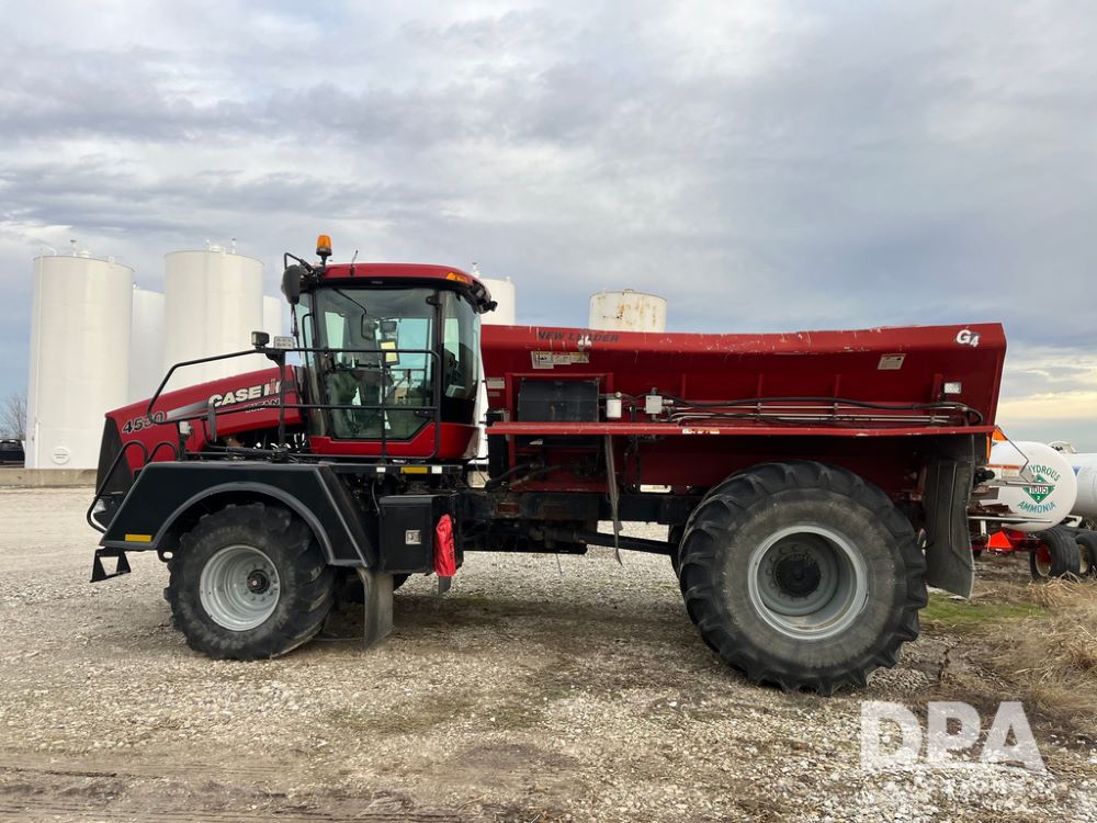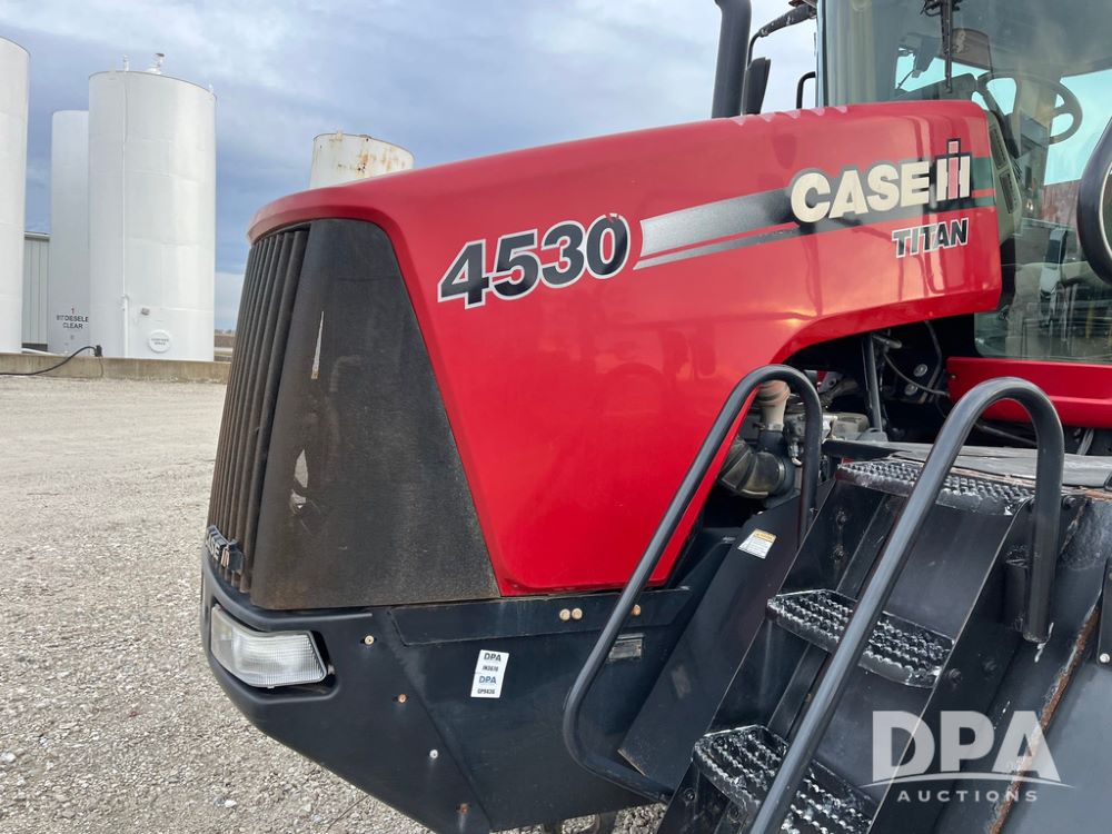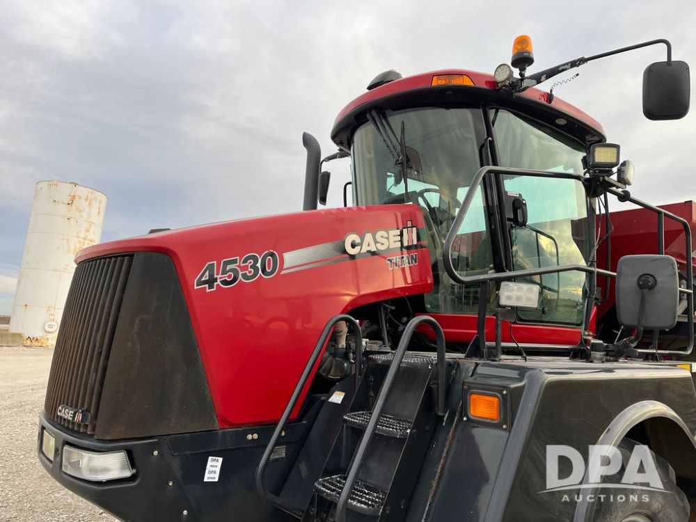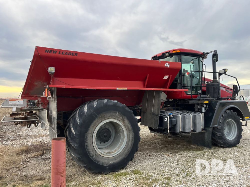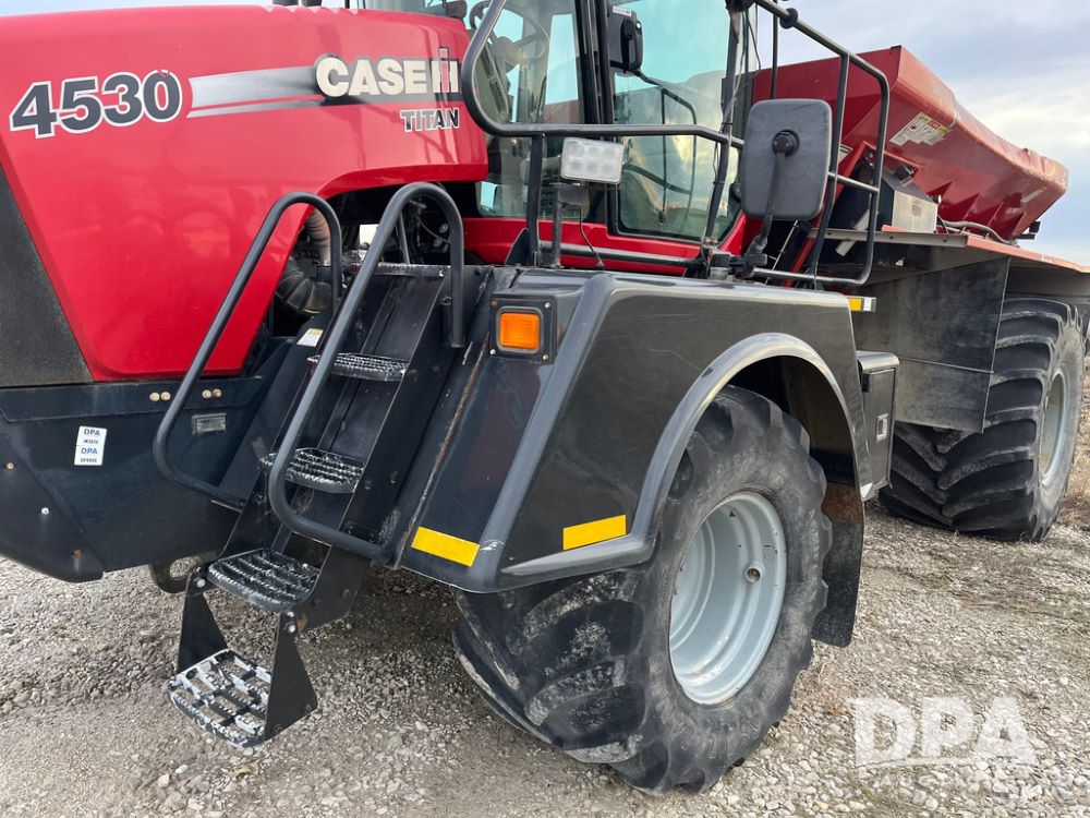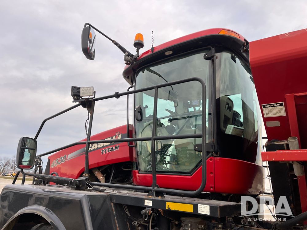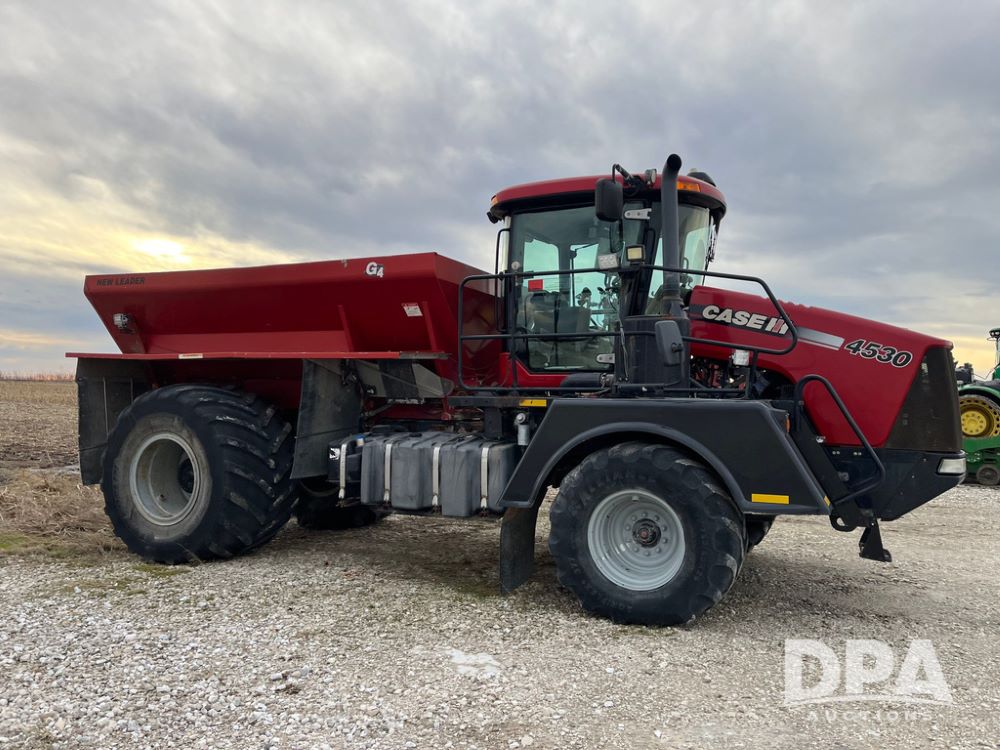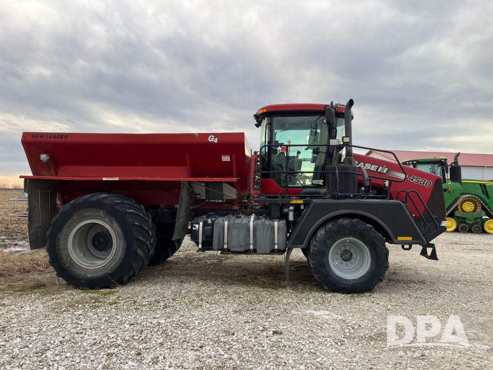 2014 CaseIH Titan 4530 Dry Floater (JN3670, Unit 122), diesel engine, Allison automatic transmission, air conditioning, heat, Am/Fm CD radio, cruise control, buddy seat, beacon light, New Leader L3020 G4 stainless steel dry spreader box (S/N 124253), twin spinner, all hydraulic, Alliance Agriflex+ 377 VF750/50R26 front tires, Michelin Mega X Bib 2 & Good Year 1050/50R32 rear tires, Voyager cab camera, lightbar, Raven Viper Pro monitor, shows 6,656 hours.