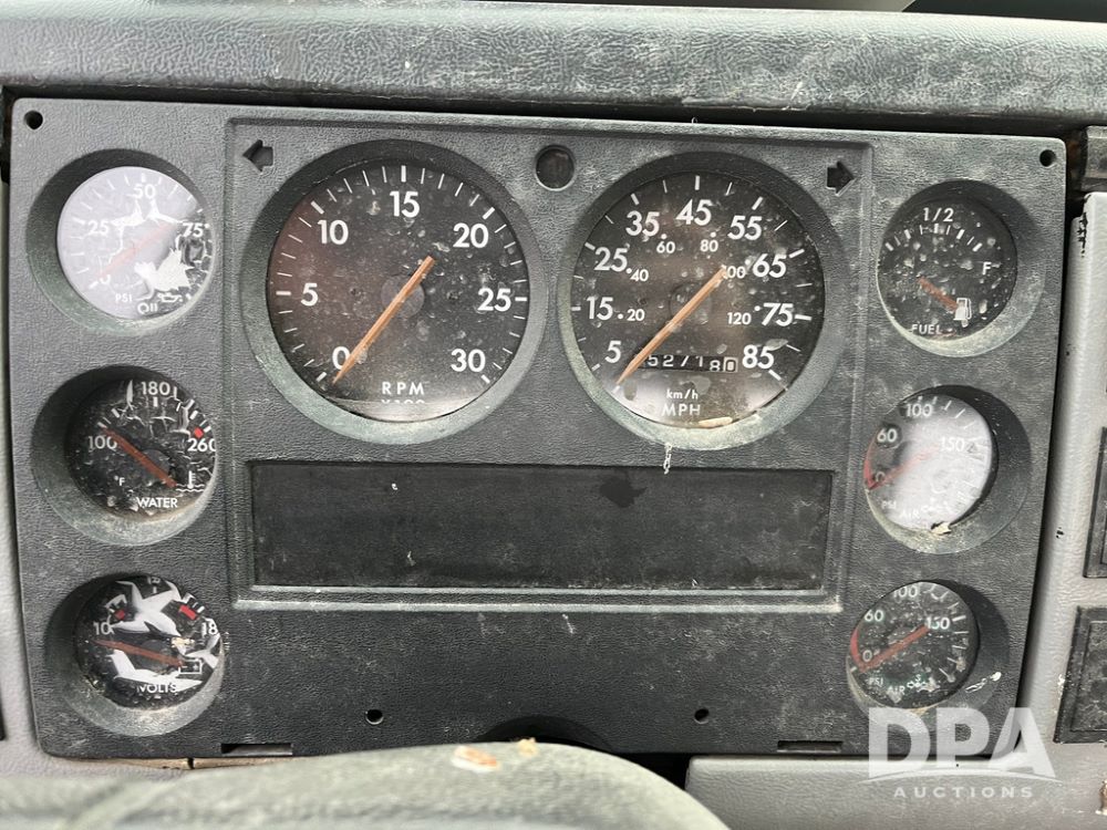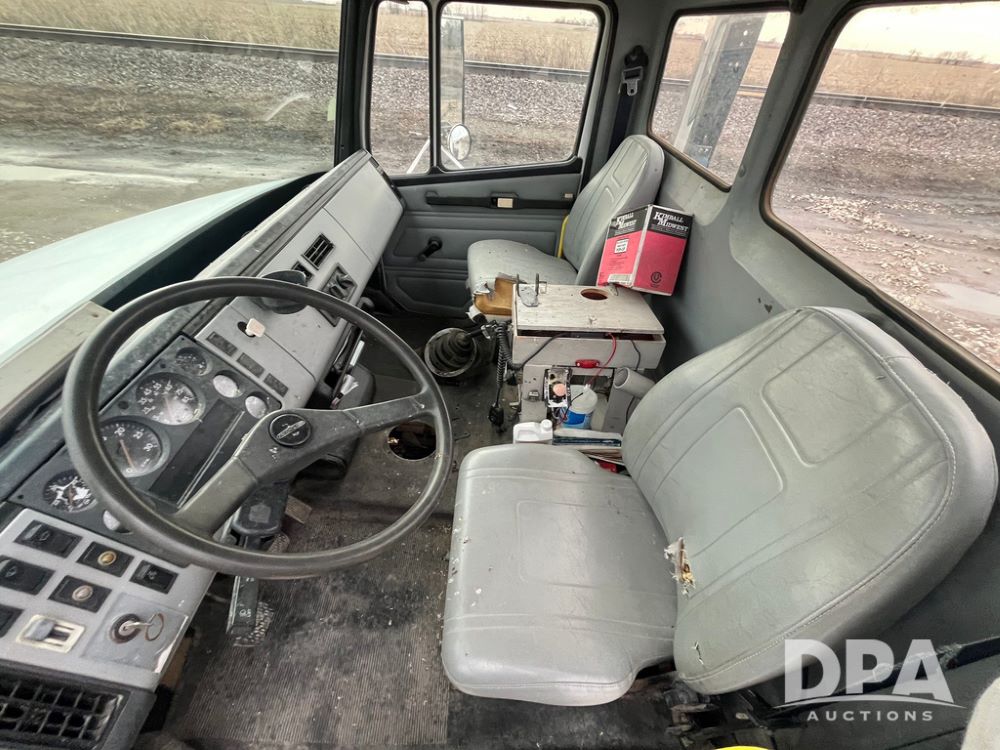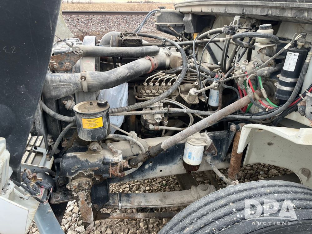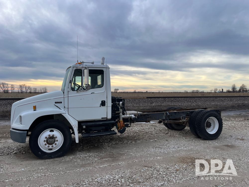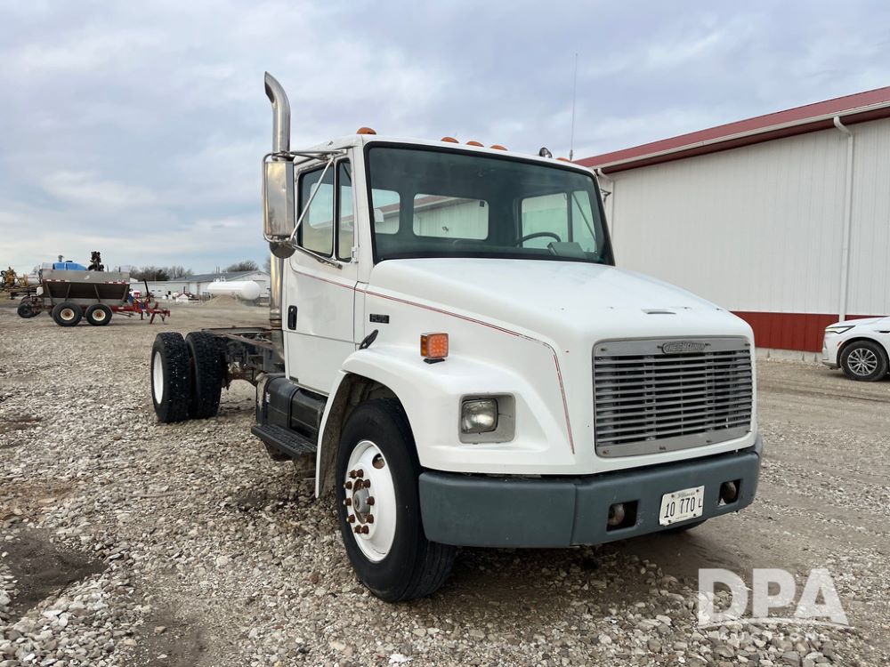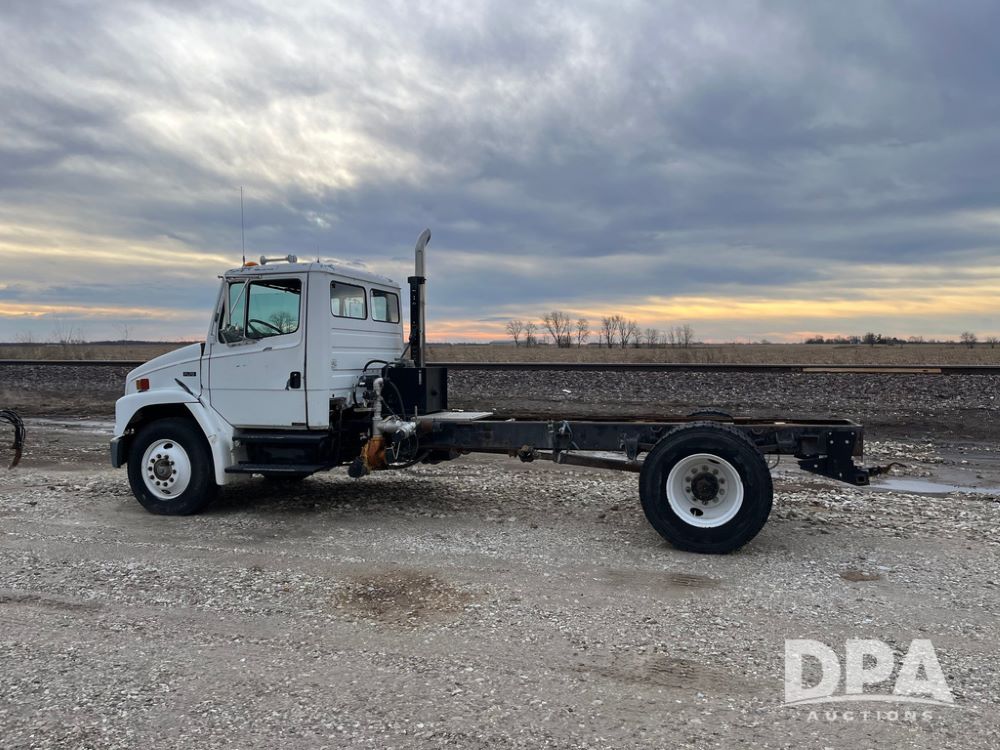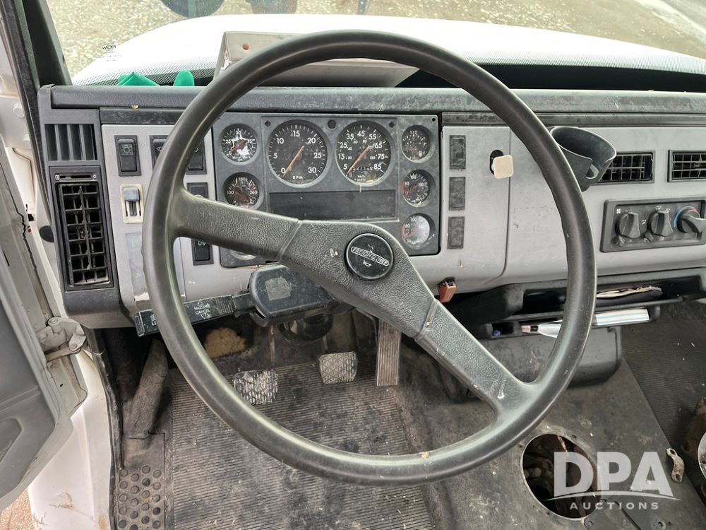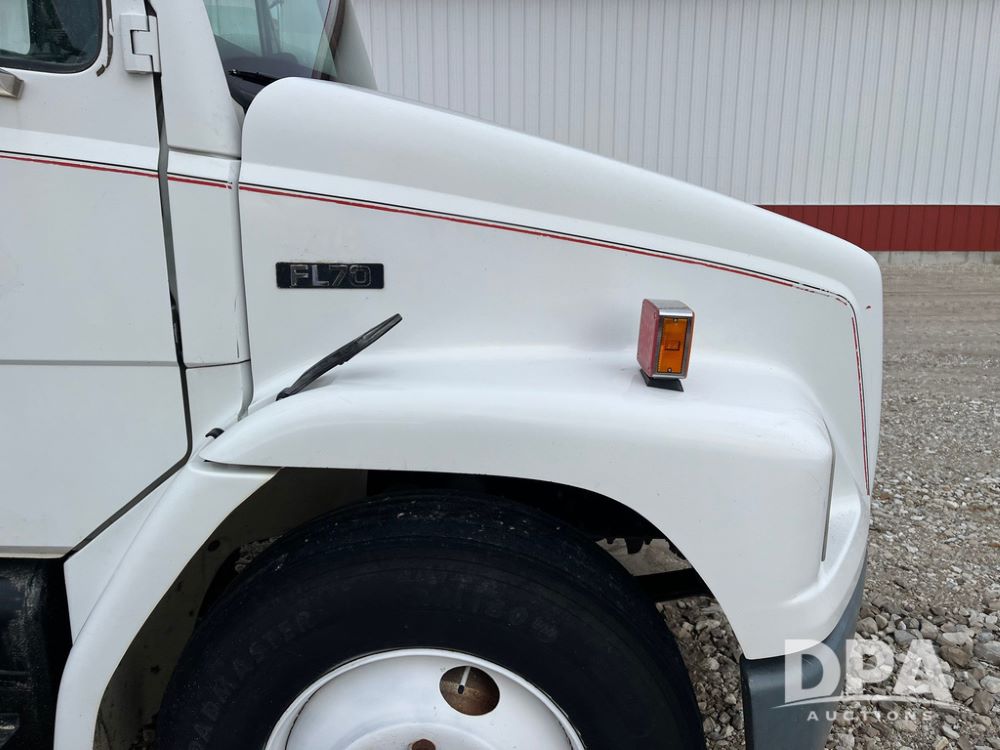 1992 Freightliner FL70 Truck (JN3671, Unit 219), 5.9L Cummins diesel engine, transmission, heat, Am/Fm radio, single axle, spring suspension, hydraulic pump, 295/75R22.5 front tires, 11R22.5 rear tires, shows 152,718 miles.