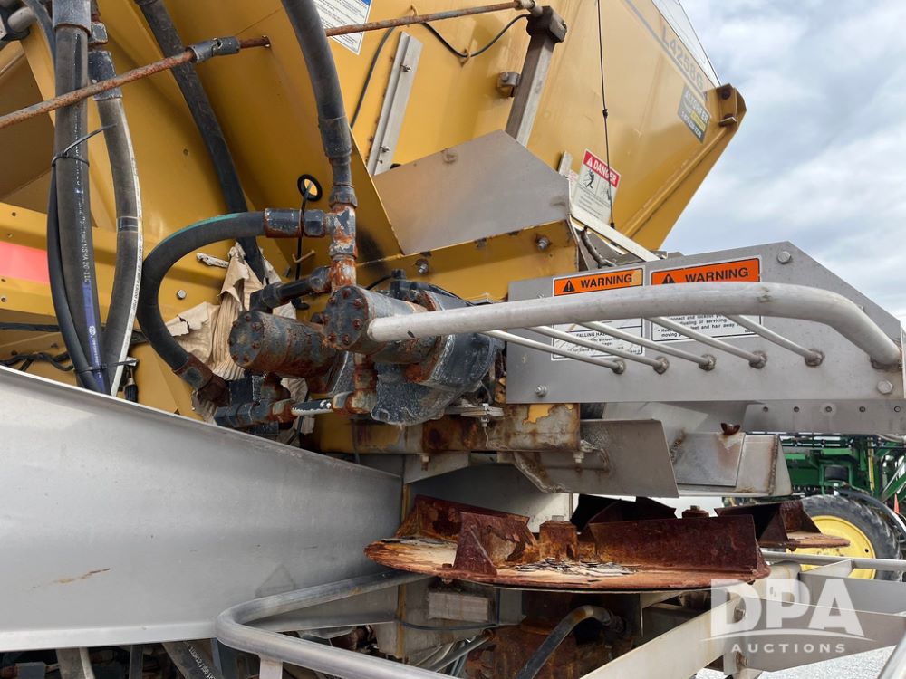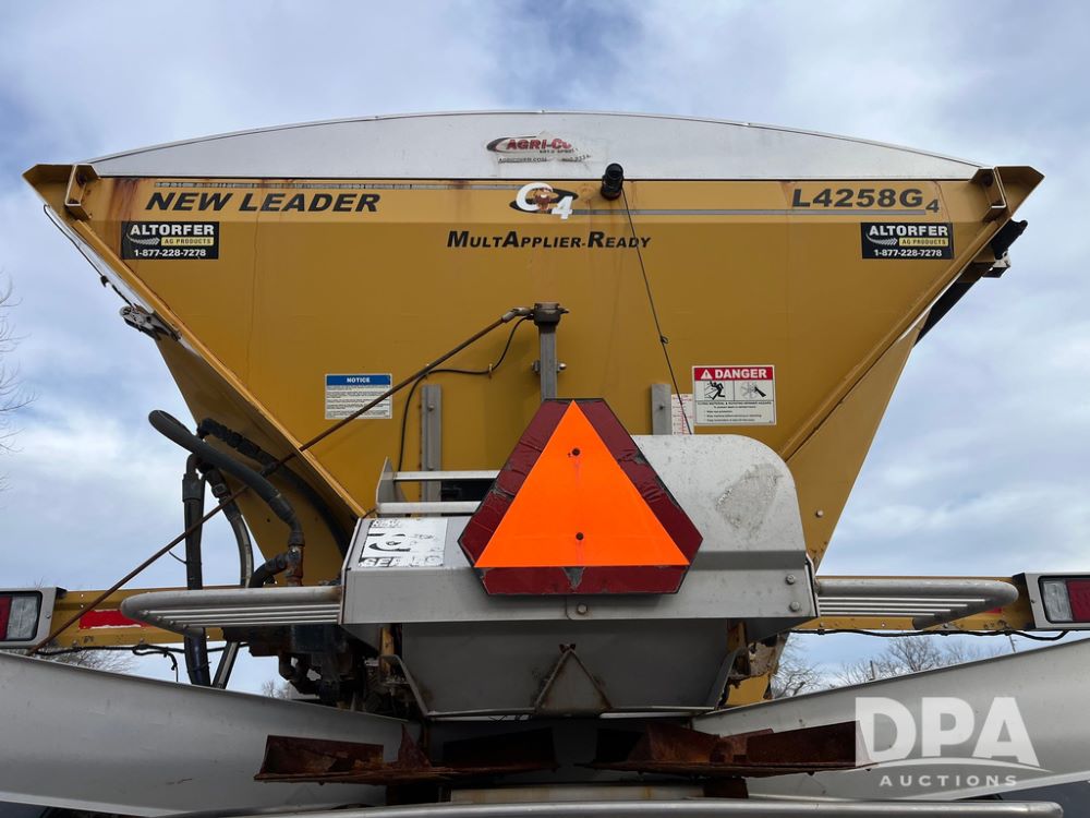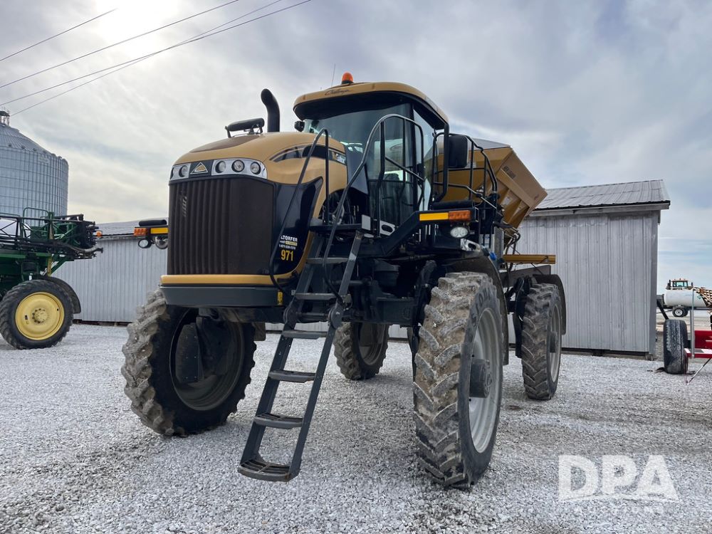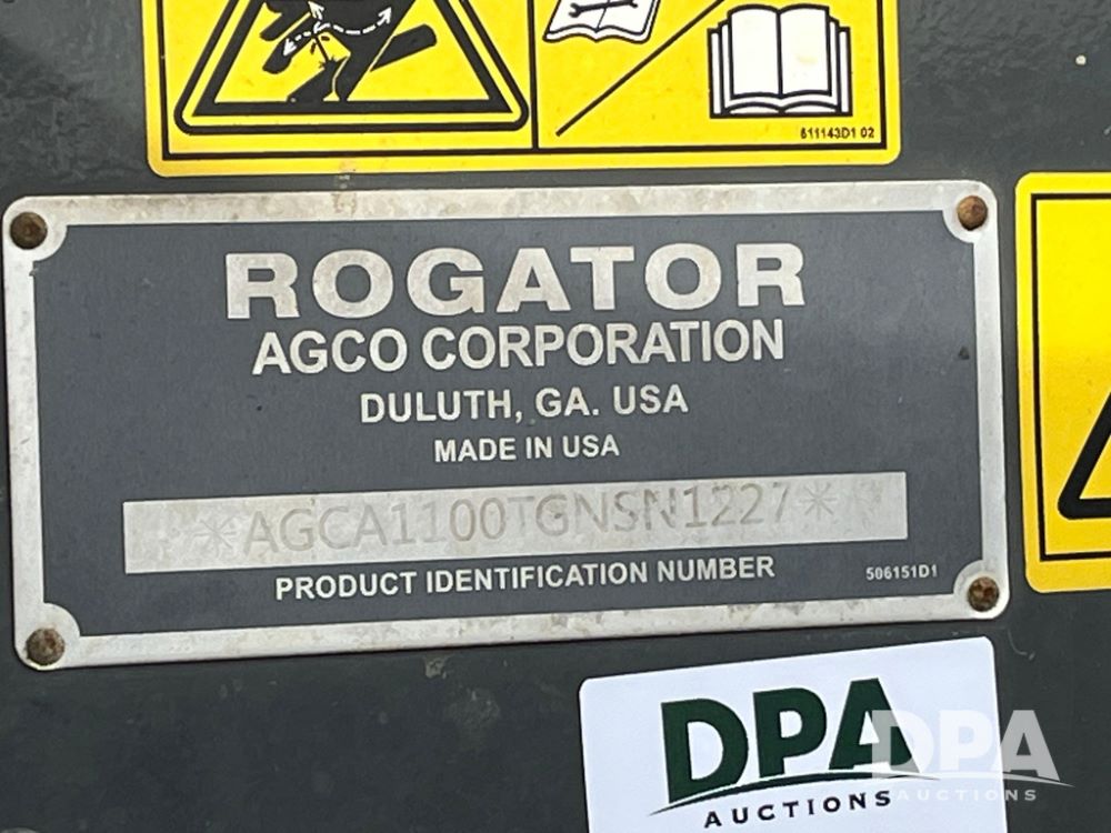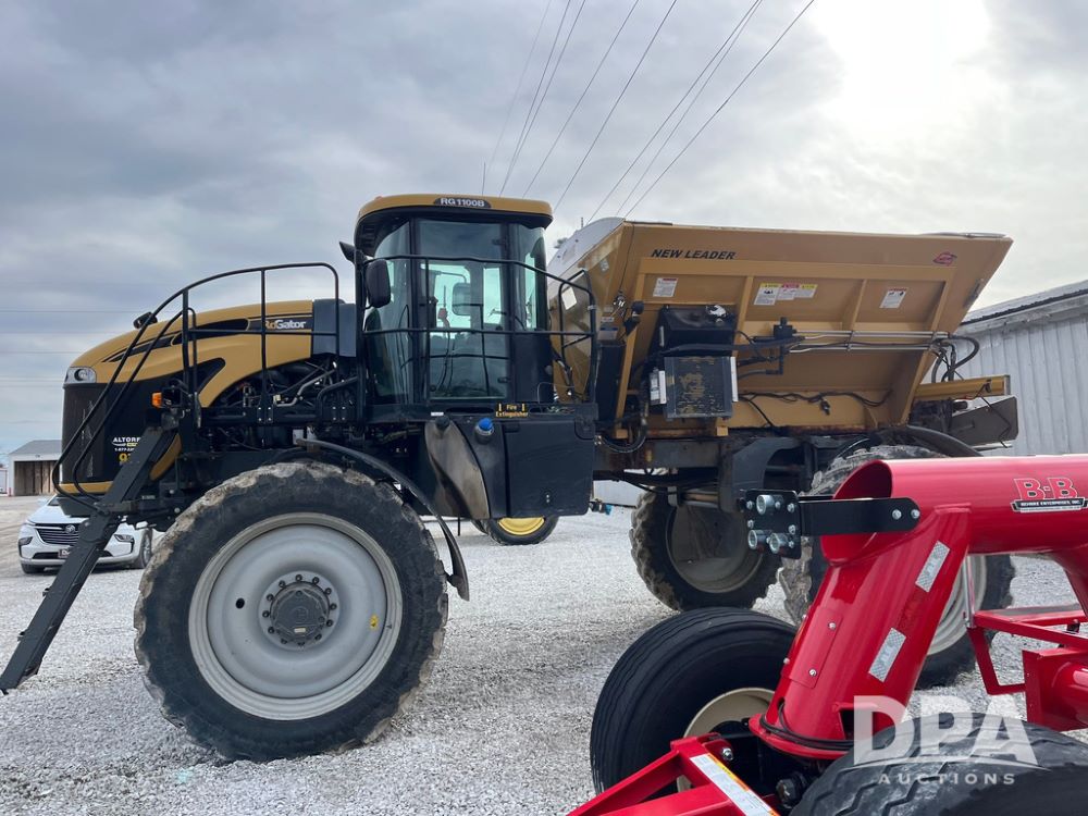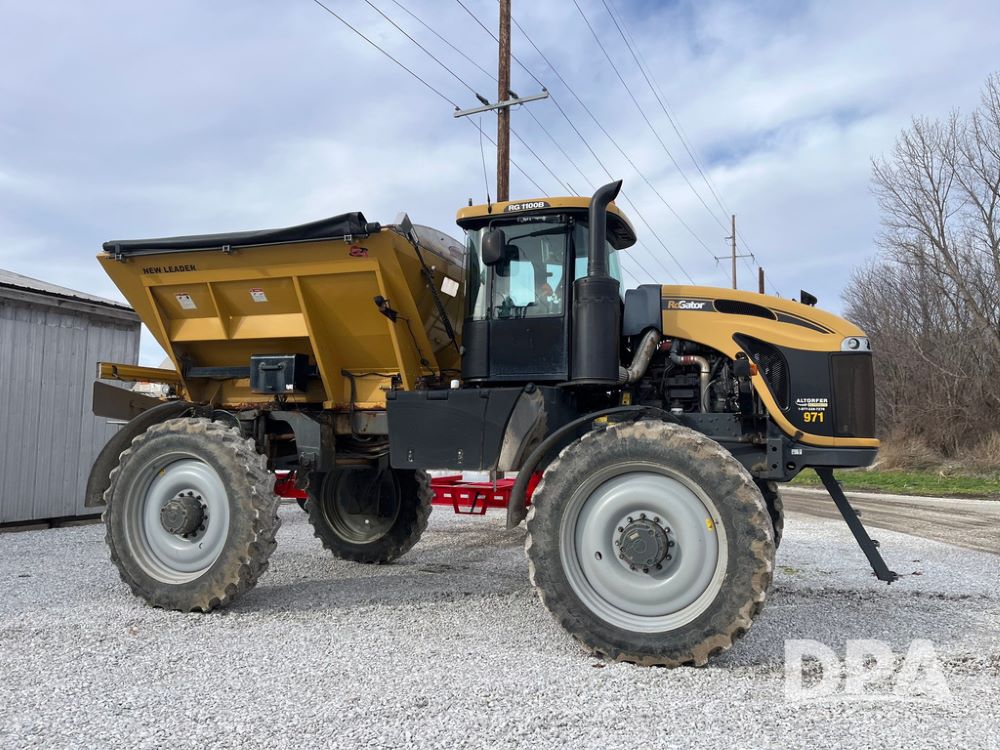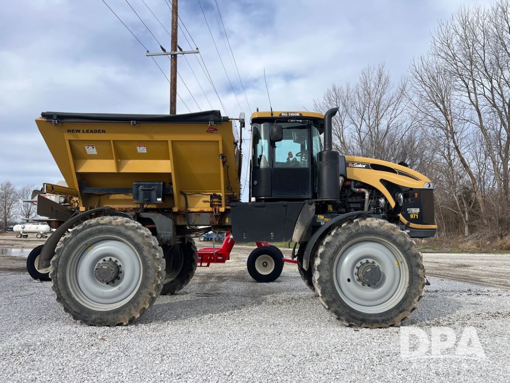2016 RoGator 1100B Dry Machine (JN3684, Unit 971), AGCO diesel engine, hydrostatic transmission, air conditioning, heat, Am/Fm CD radio, leather seat, buddy seat, beacon light, New Leader L4258 G4 - 11' dry spreader box (S/N 454308), twin spinner, all hydraulic, Agri Cover electric roll over tarp, Firestone VF380/90R46 tires, fenders, Raven Viper 4 monitor, shows 2,458 hours.