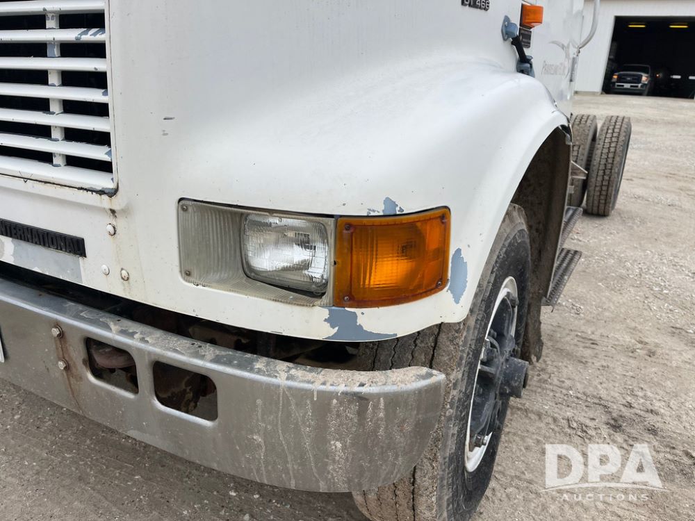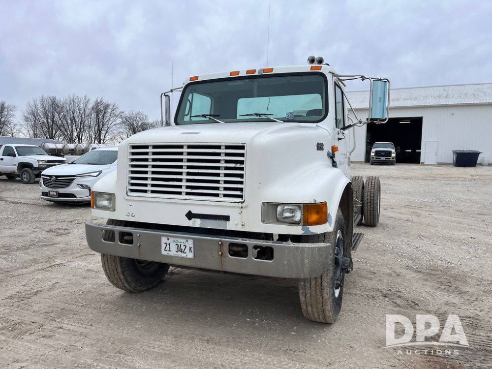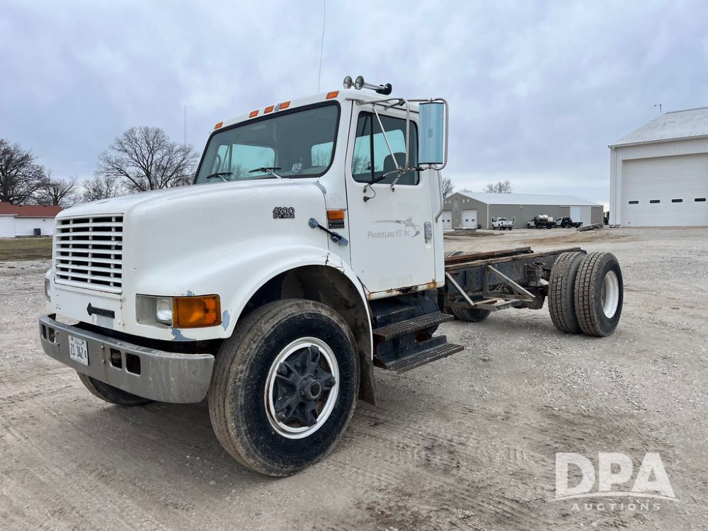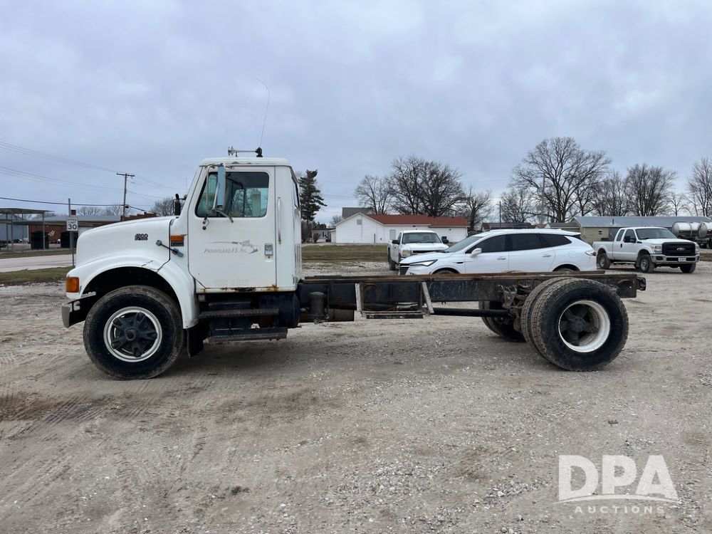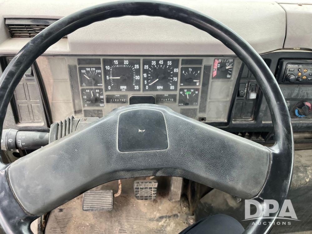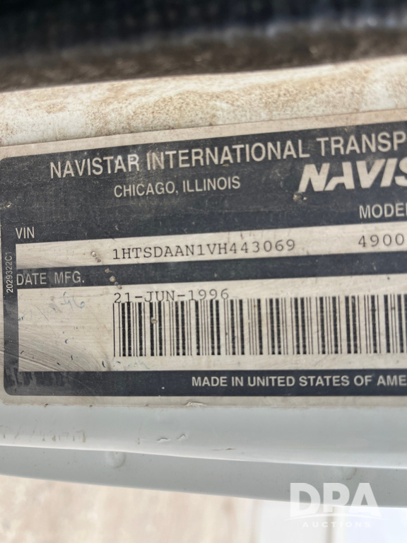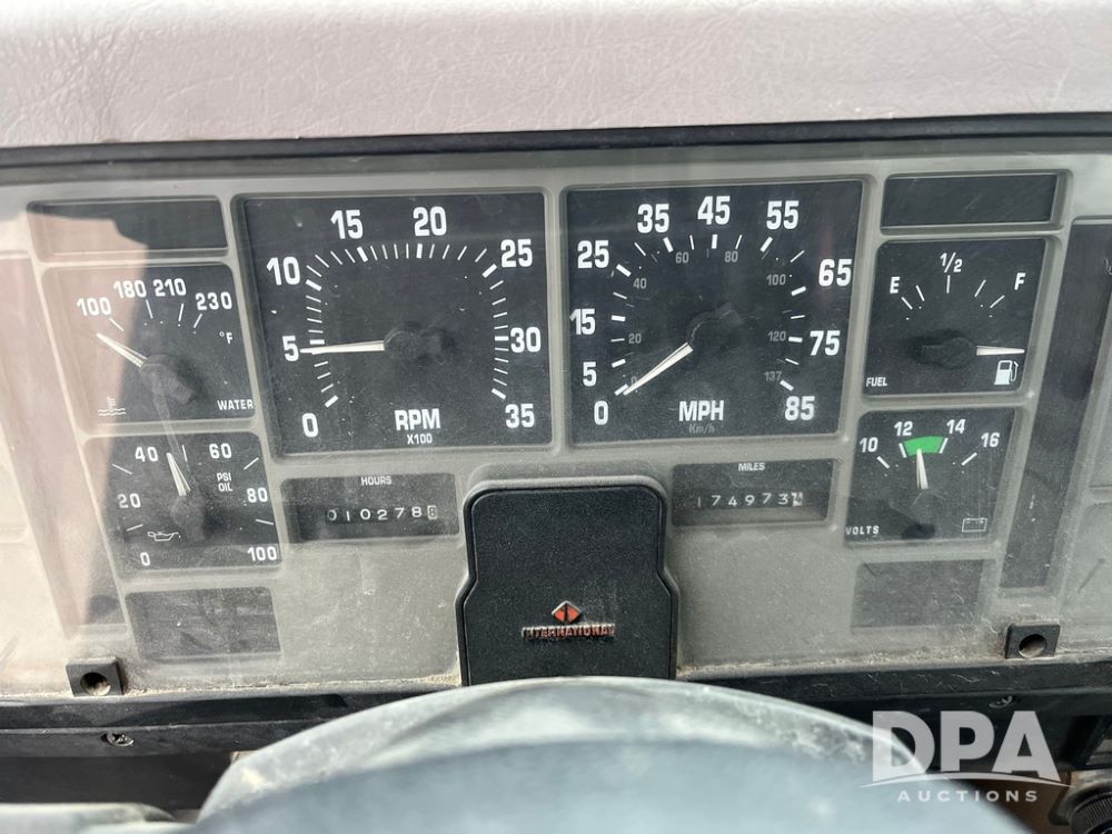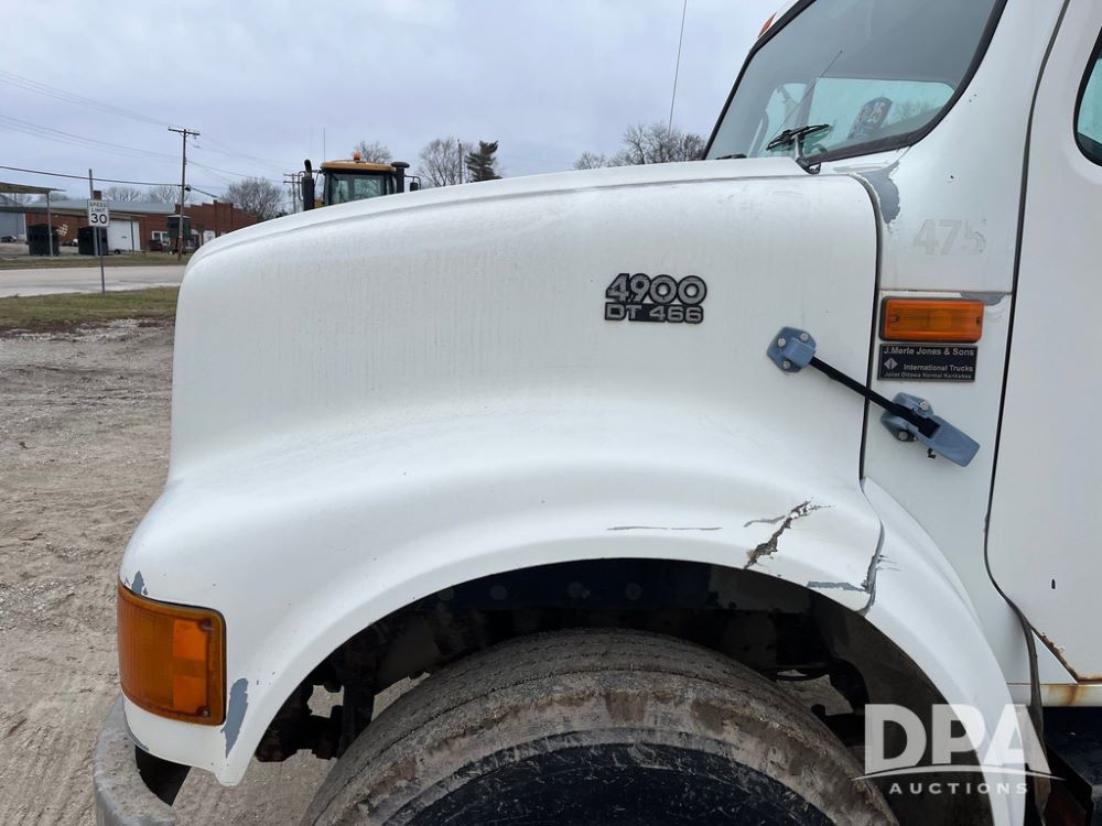 1997 IHC 4900 Truck (JN3690, Unit 475), DT466 diesel engine, 6 Plus speed transmission, air conditioning, heat, Am/Fm radio, single axle, spring suspension, 11R22.5 tires, shows 174,973 miles.