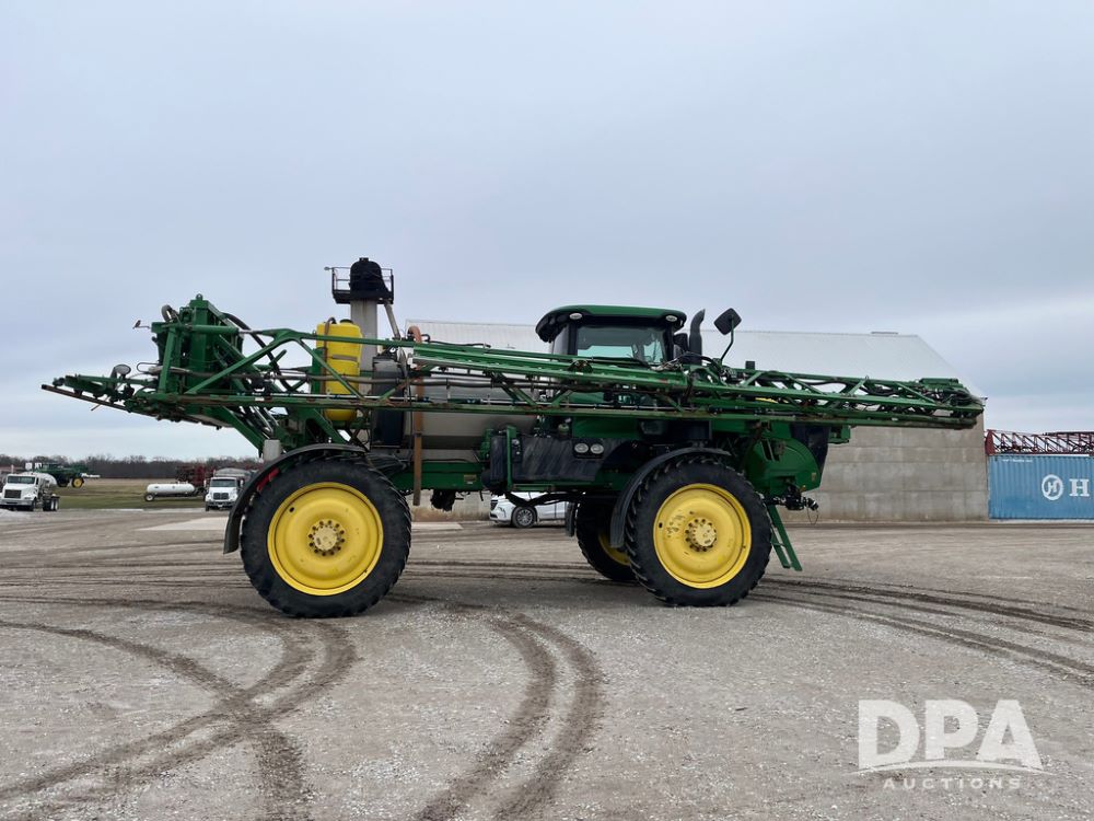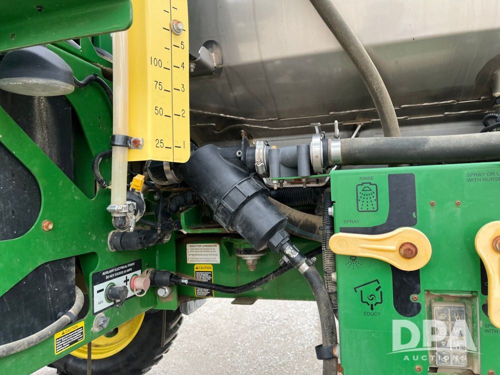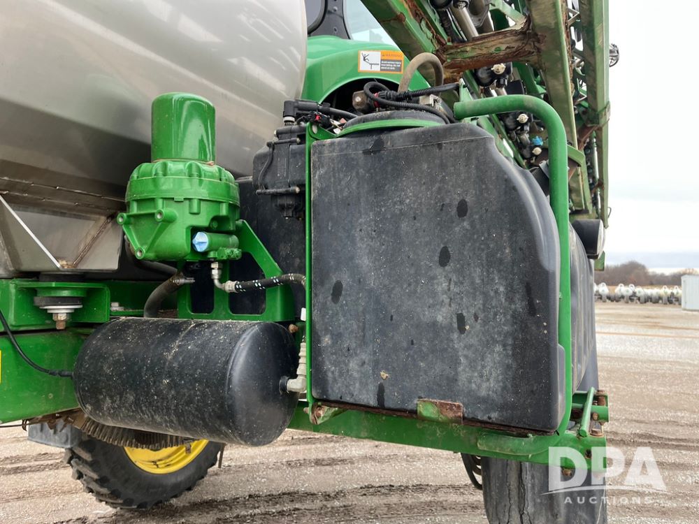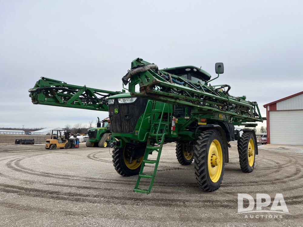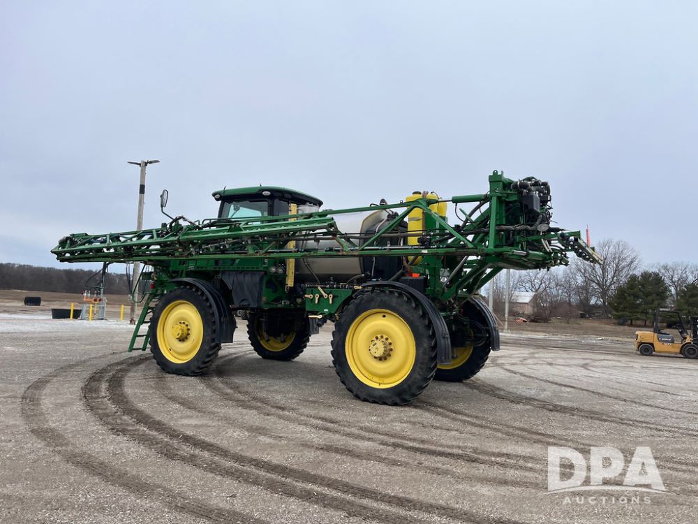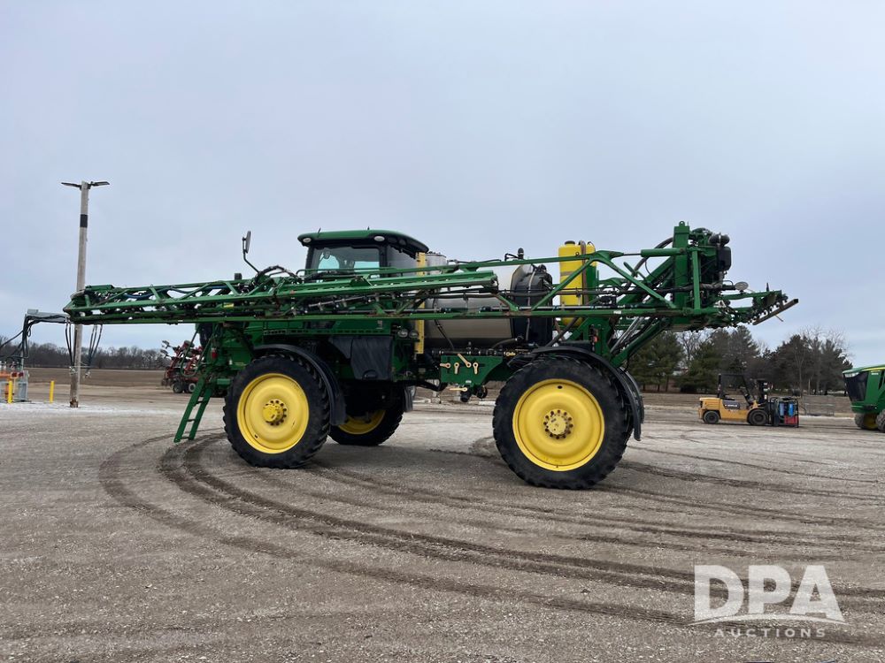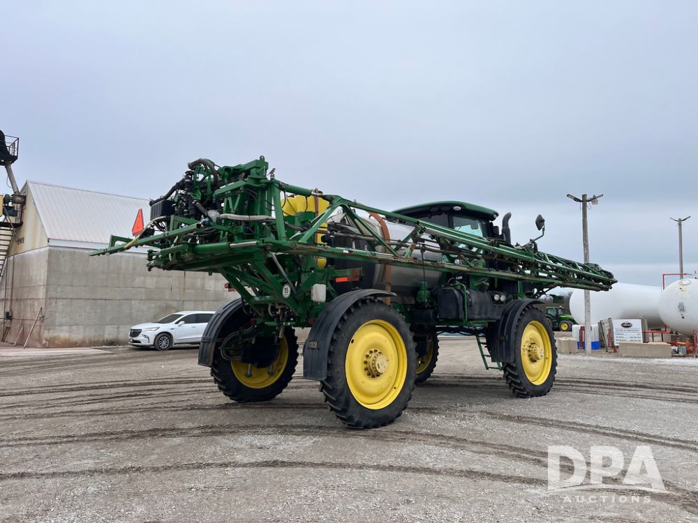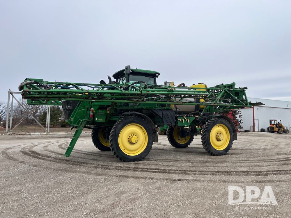 2018 John Deere R4038 Sprayer (JN3691, Unit 1021), John Deere diesel engine (S/N RG6090U043778), hydrostatic transmission, air conditioning, heat, Am/Fm CD radio, leather seat, buddy seat, 1000 gallon stainless steel liquid system, 120' boom, back poly rinse tank, 2 - 50 gallon poly direct injection tanks, Raven Sidekick Pro pump, front fill, Alliance Agriflex+ 354 VF320/105R46 tires, fenders, John Deere monitor, shows 4,065 hours.