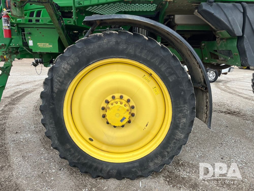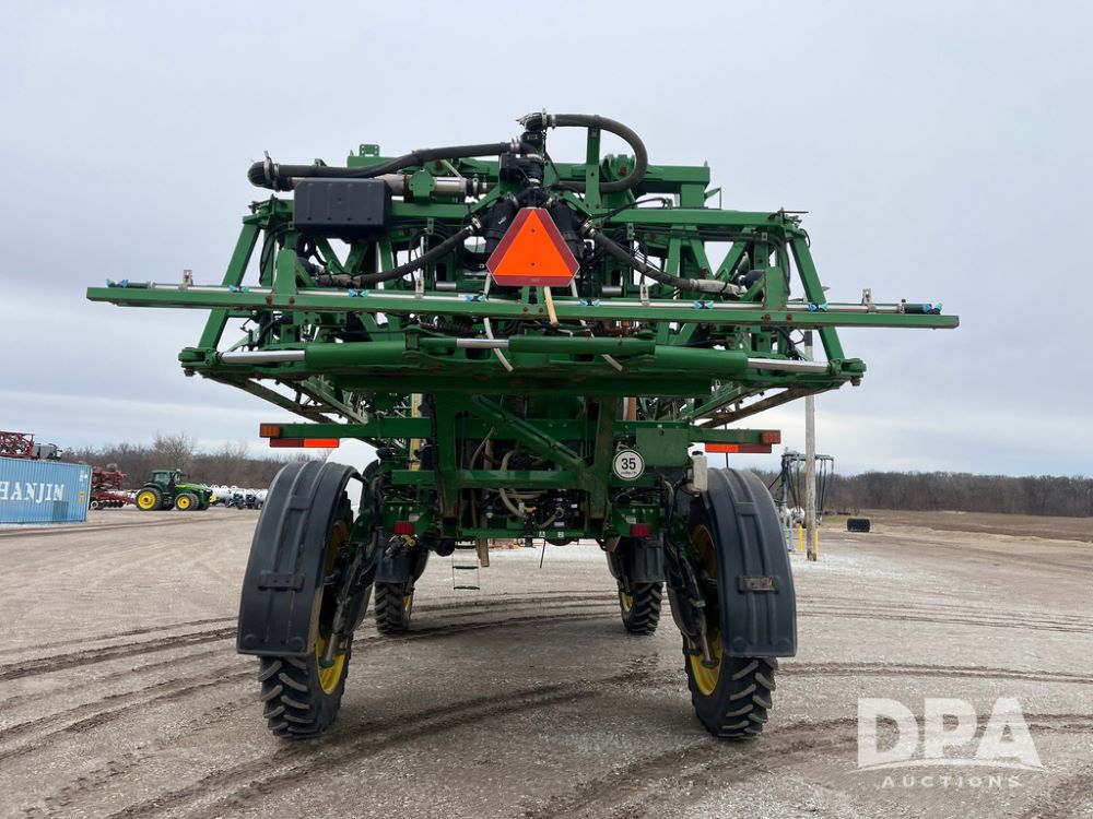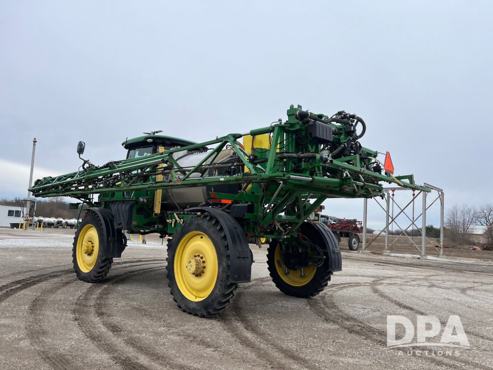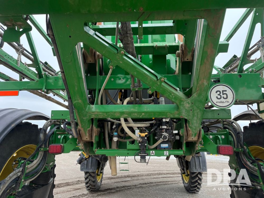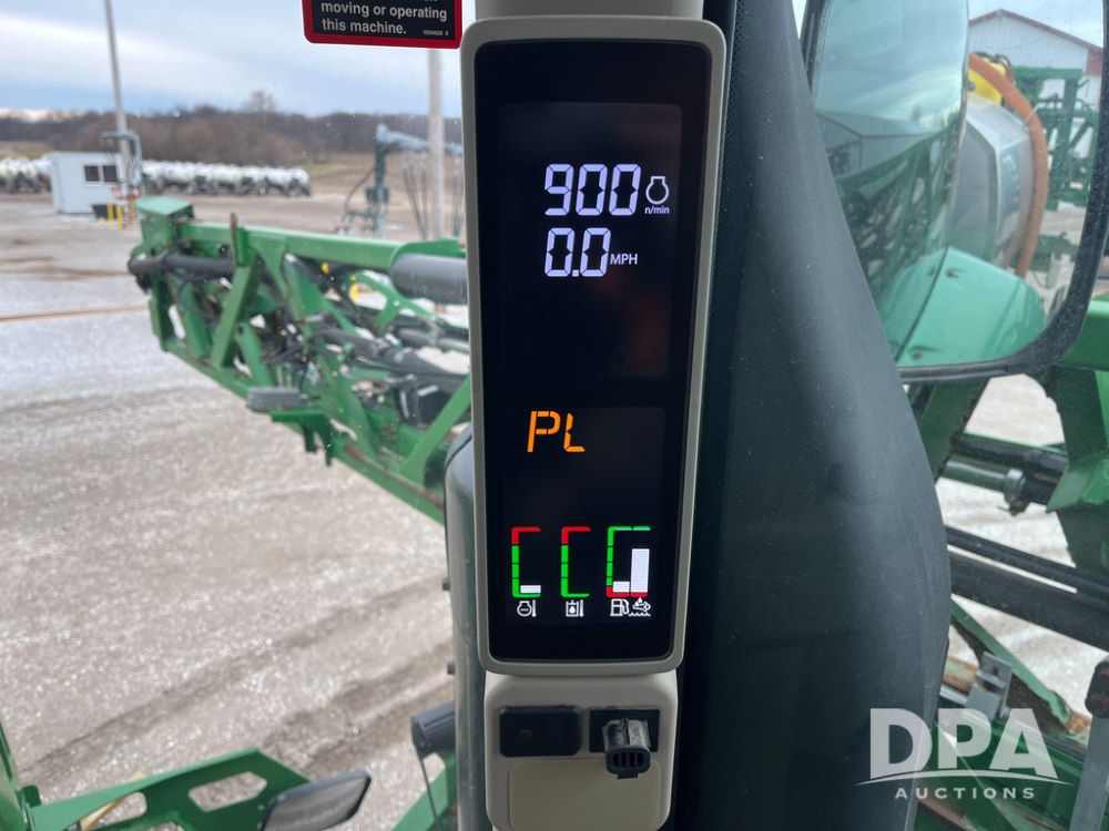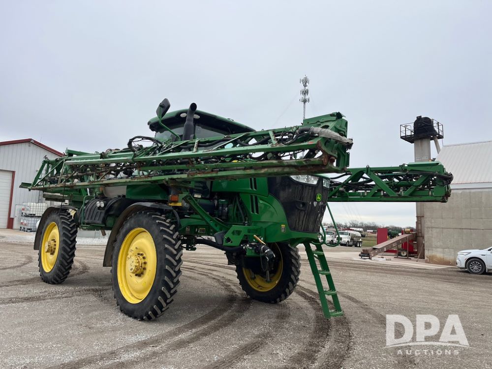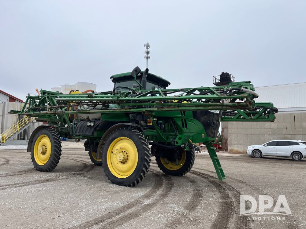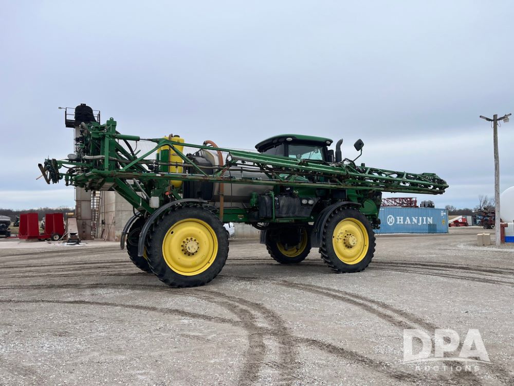 2018 John Deere R4038 Sprayer (JN3691, Unit 1021), John Deere diesel engine (S/N RG6090U043778), hydrostatic transmission, air conditioning, heat, Am/Fm CD radio, leather seat, buddy seat, 1000 gallon stainless steel liquid system, 120' boom, back poly rinse tank, 2 - 50 gallon poly direct injection tanks, Raven Sidekick Pro pump, front fill, Alliance Agriflex+ 354 VF320/105R46 tires, fenders, John Deere monitor, shows 4,065 hours.