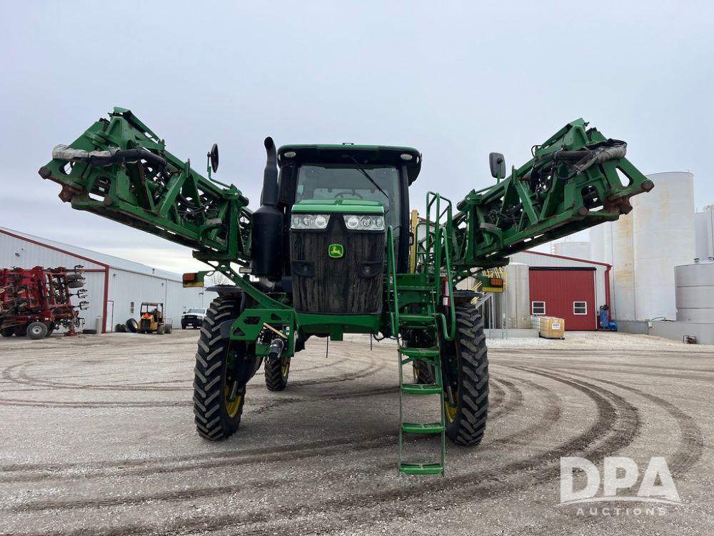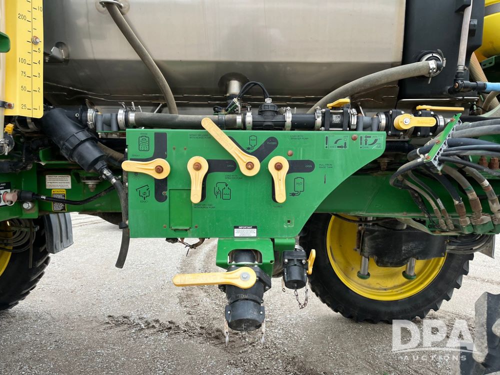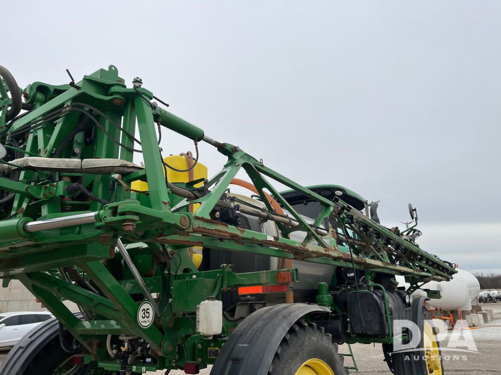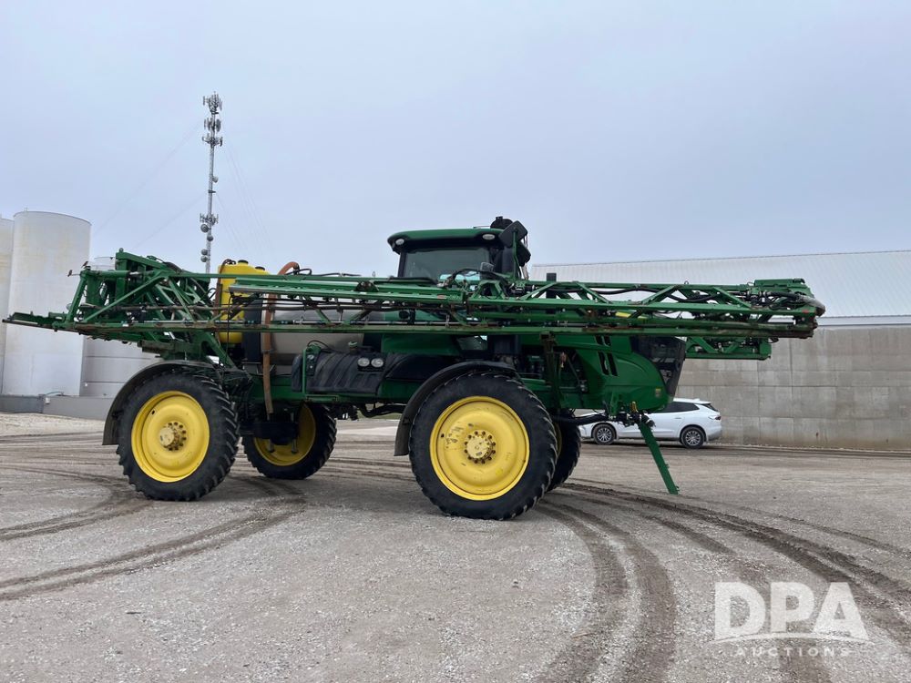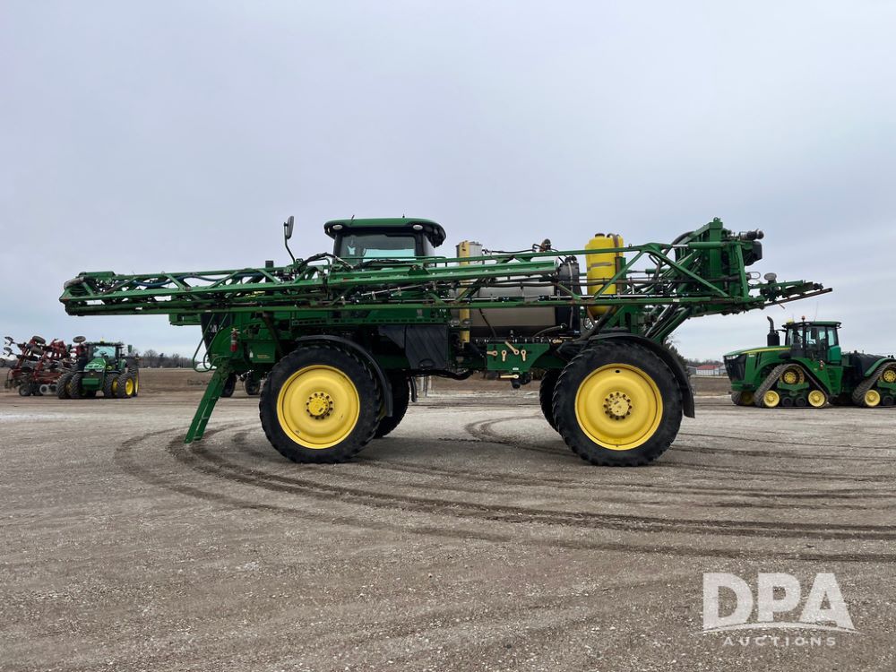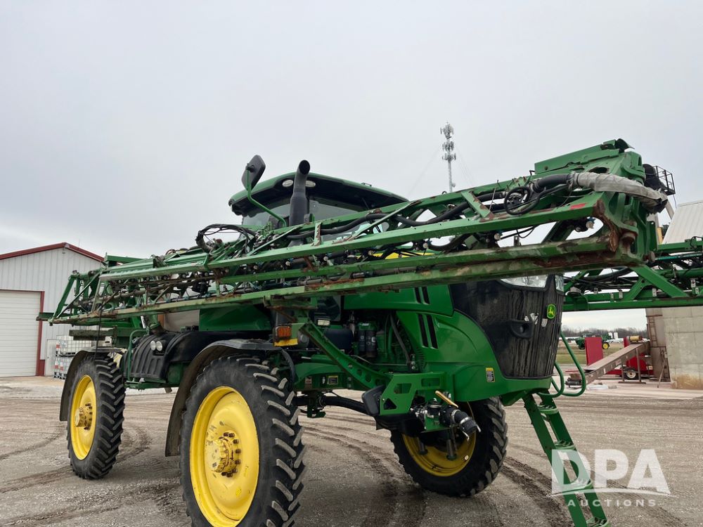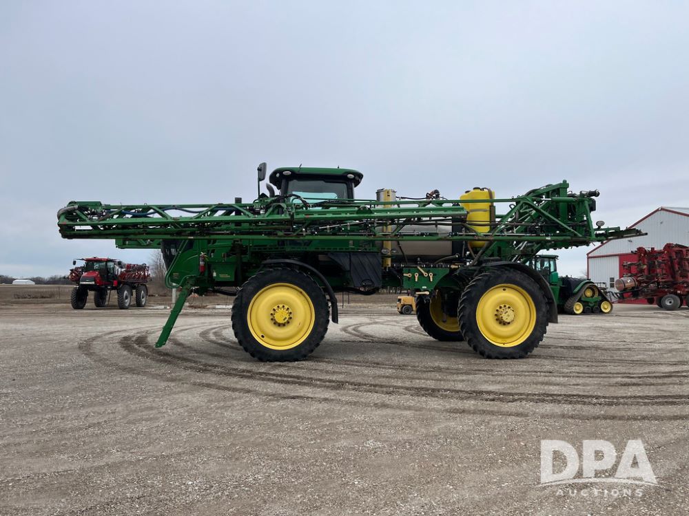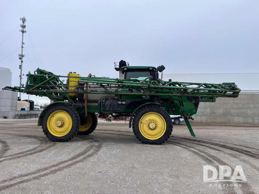 2018 John Deere R4038 Sprayer (JN3691, Unit 1021), John Deere diesel engine (S/N RG6090U043778), hydrostatic transmission, air conditioning, heat, Am/Fm CD radio, leather seat, buddy seat, 1000 gallon stainless steel liquid system, 120' boom, back poly rinse tank, 2 - 50 gallon poly direct injection tanks, Raven Sidekick Pro pump, front fill, Alliance Agriflex+ 354 VF320/105R46 tires, fenders, John Deere monitor, shows 4,065 hours.