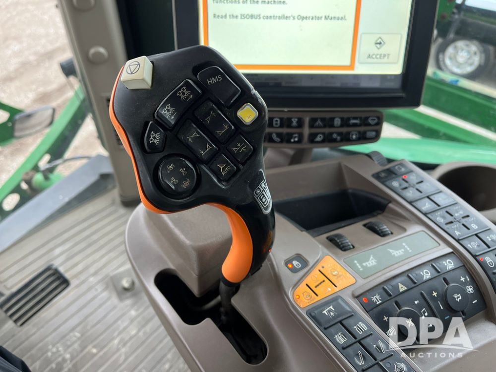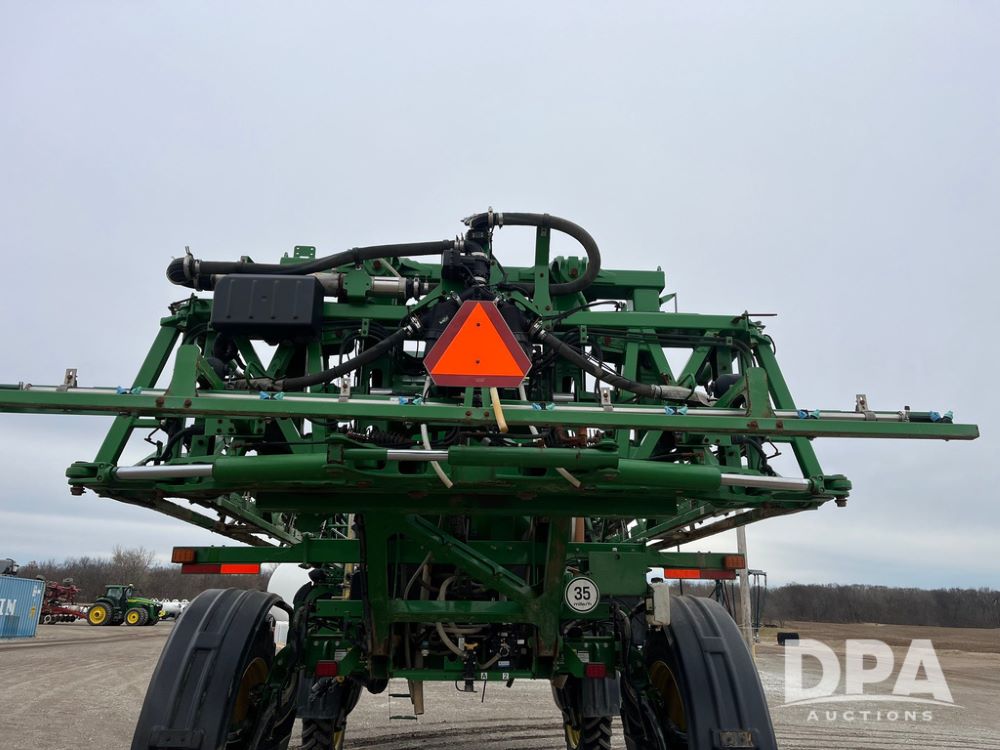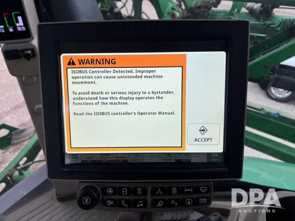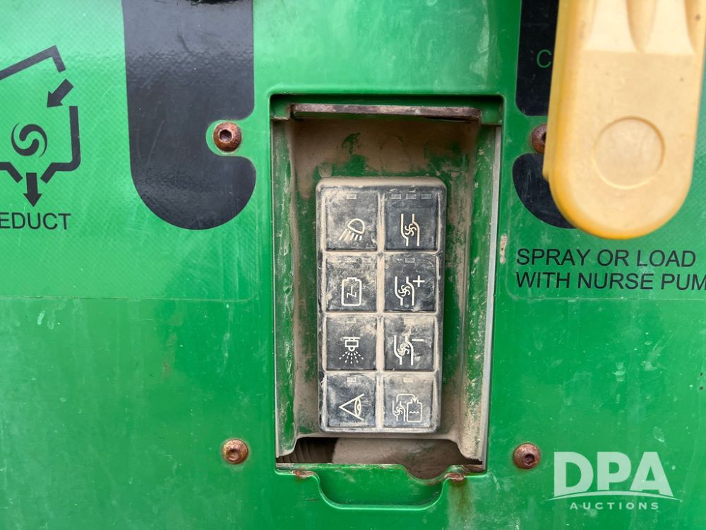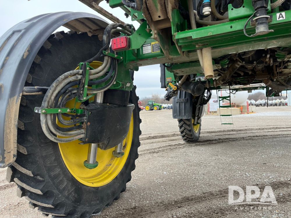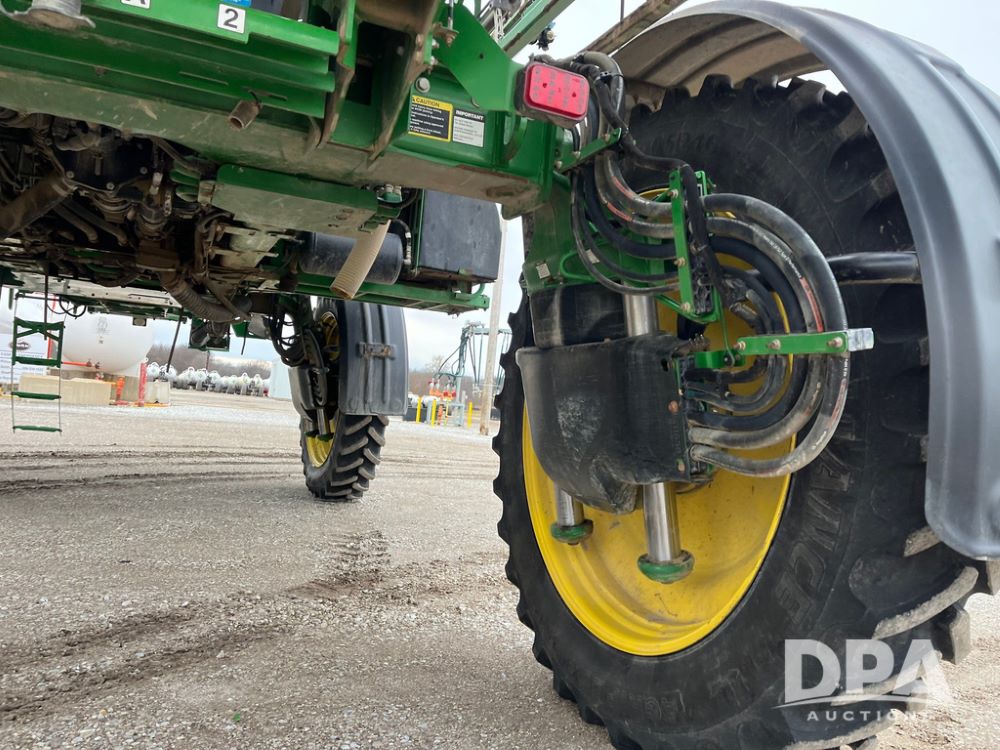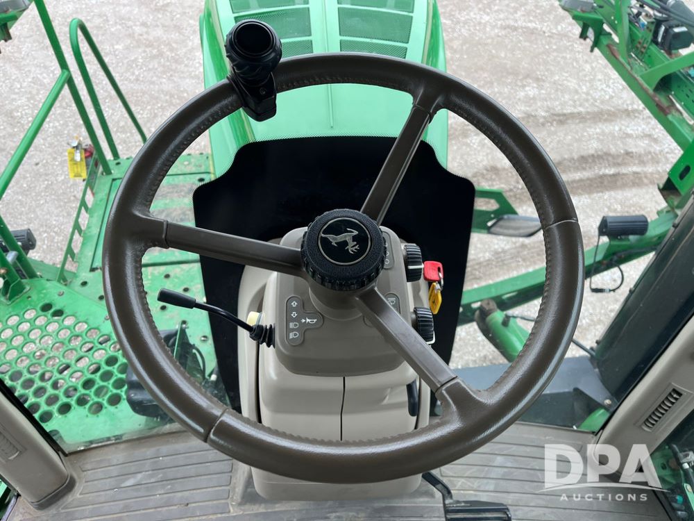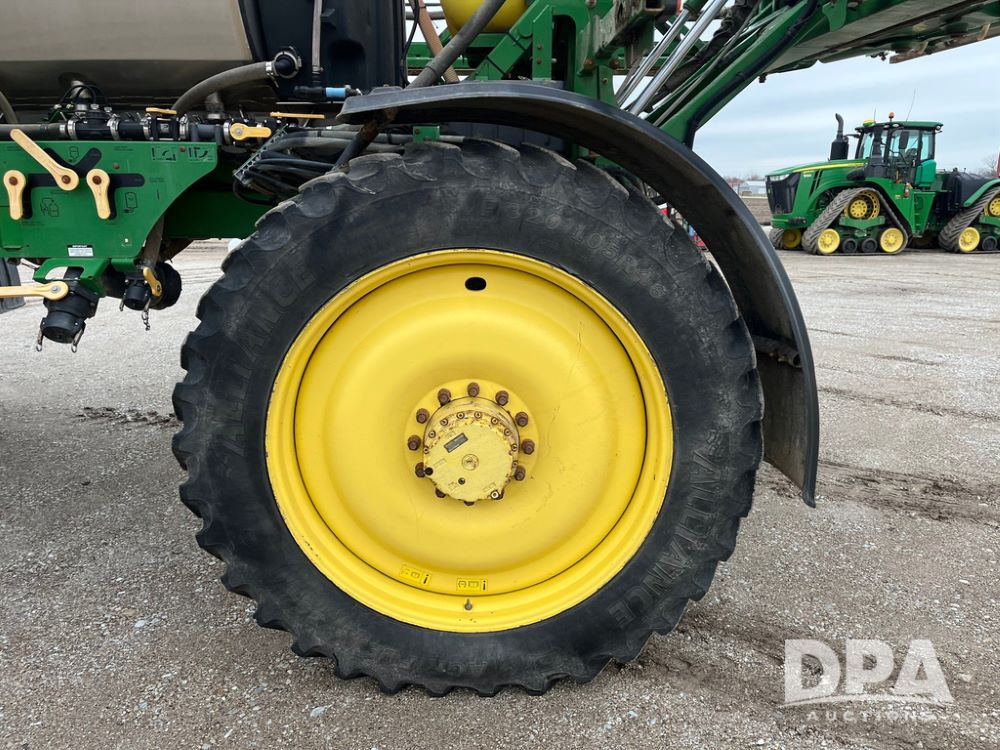 2018 John Deere R4038 Sprayer (JN3691, Unit 1021), John Deere diesel engine (S/N RG6090U043778), hydrostatic transmission, air conditioning, heat, Am/Fm CD radio, leather seat, buddy seat, 1000 gallon stainless steel liquid system, 120' boom, back poly rinse tank, 2 - 50 gallon poly direct injection tanks, Raven Sidekick Pro pump, front fill, Alliance Agriflex+ 354 VF320/105R46 tires, fenders, John Deere monitor, shows 4,065 hours.