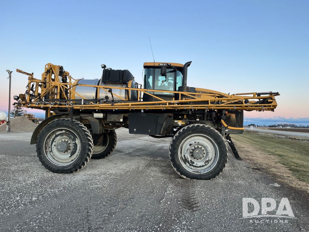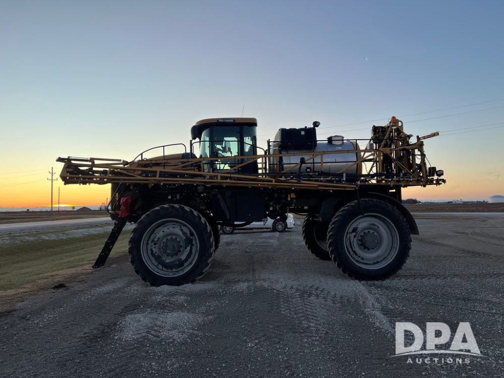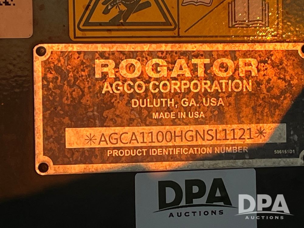 2016 RoGator 1100B Sprayer (JN3693, Unit 151), AGCO diesel engine, hydrostatic transmission, air conditioning, heat, Am/Fm CD radio, leather seat, buddy seat, beacon light, 1100 gallon stainless steel liquid system, 100' boom, top poly rinse tank, front fill, Alliance & Good Year 380/90R46 tires, rear fenders, Raven Viper 4 monitor, shows 4,314 hours.