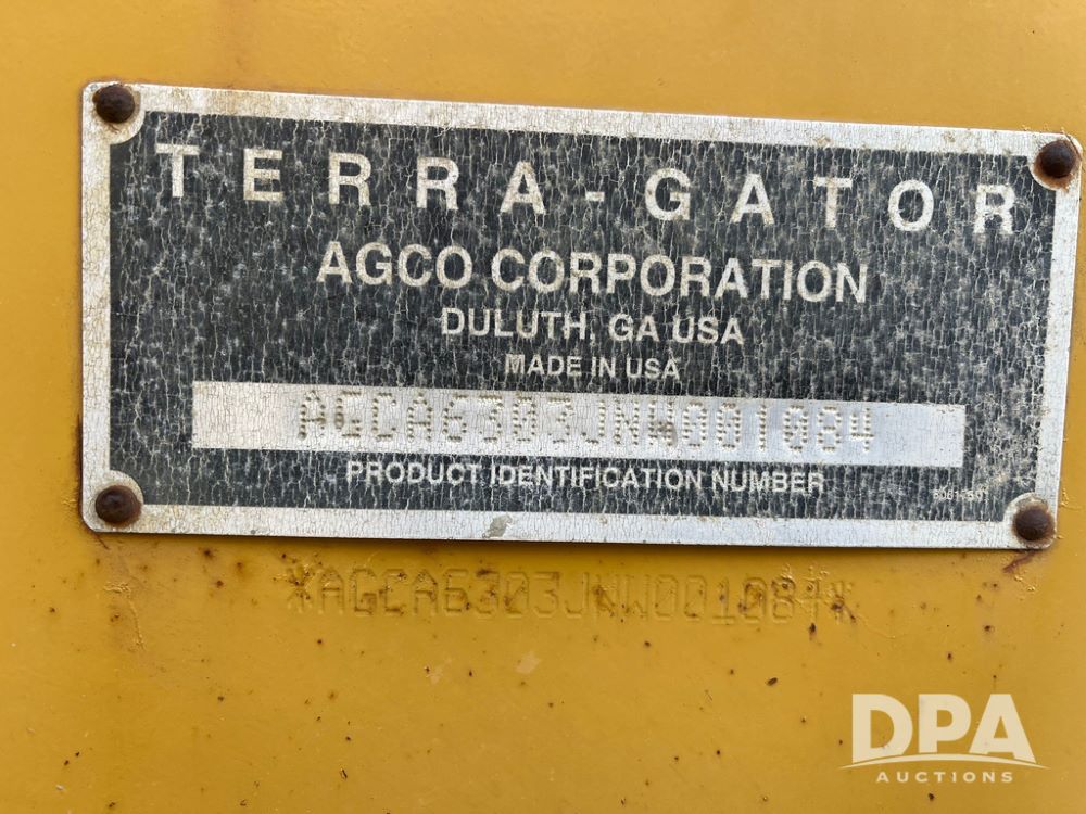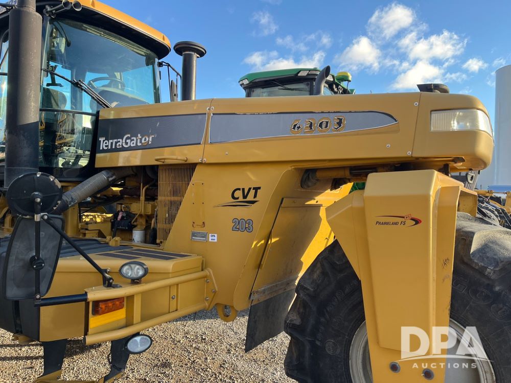 2010 Terra Gator 6303 Dry Floater (JN3697, Unit 203), AGCO Sisu diesel engine, CVT transmission, air conditioning, heat, Am/Fm CD radio, New Leader L4000 G4 - 13' stainless steel dry spreader box (S/N 127959), twin spinner, all hydraulic, Good Year Optiterra 1000/50R25 front tire, Alliance Agri-Star & Mitas 1000/50R25 rear tires, Raven Viper Pro monitor.
