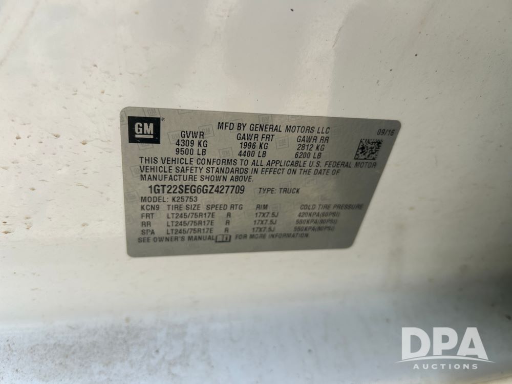 2016 GMC 2500HD 4 Door Pickup (CP1429, Unit 701), 4x4, Vortec gas engine, automatic transmission, air conditioning, heat, Am/Fm CD radio, cruise control, power windows & locks, running boards, rear hitch, LT265/70R17 tires, shows 162,496 miles.