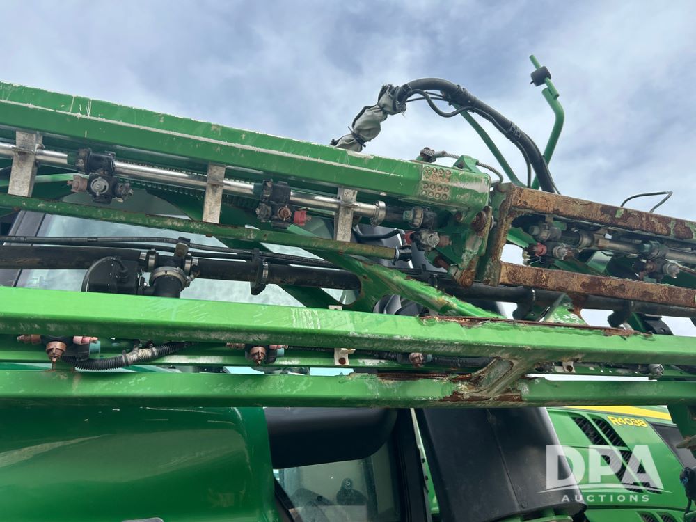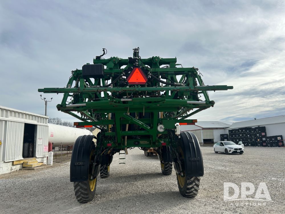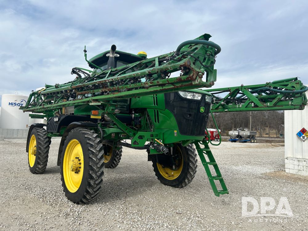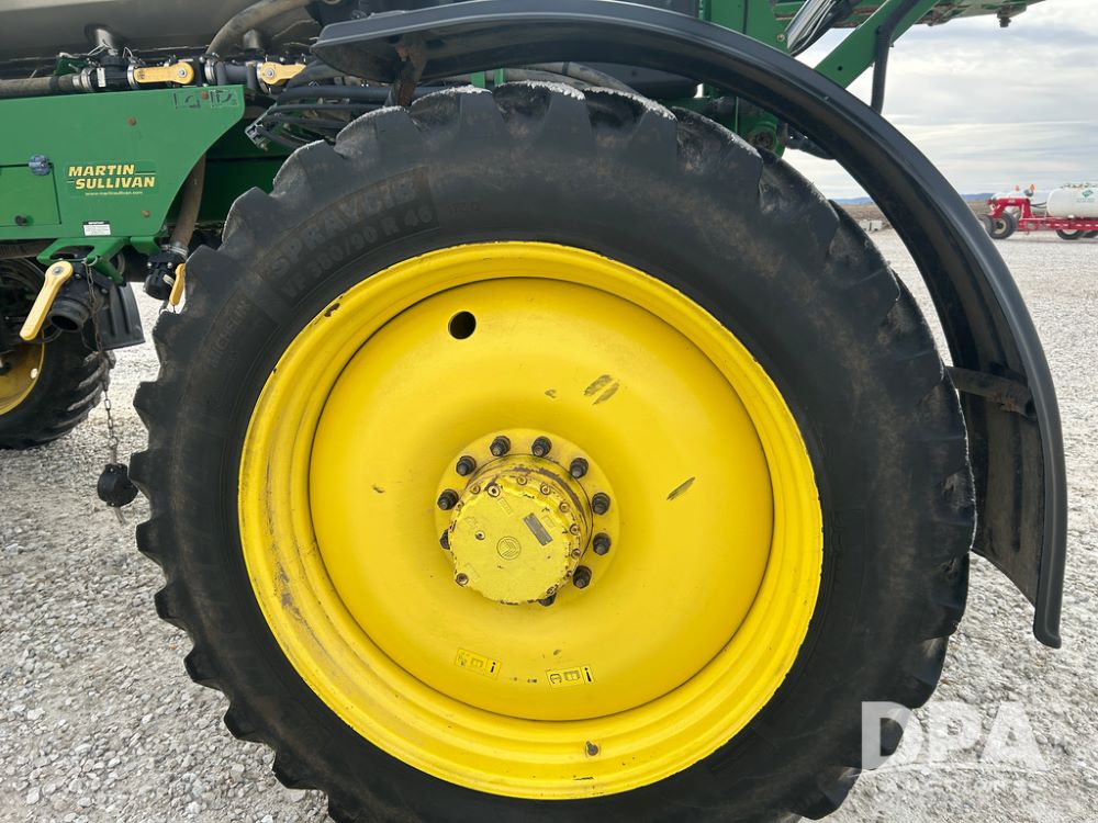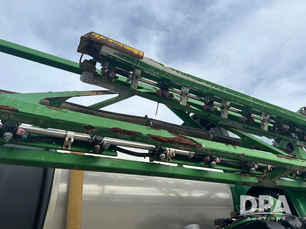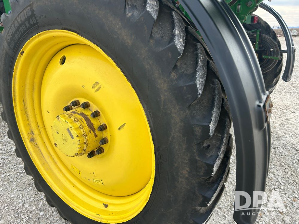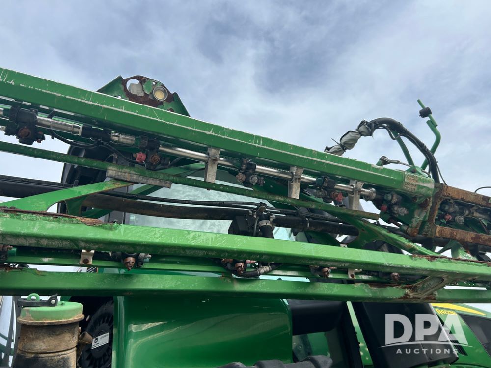 2019 John Deere R4038 Sprayer (CP1433, Unit 900), John Deere diesel engine, hydrostatic transmission, air conditioning, heat, Am/Fm radio, beacon light, 1000 gallon stainless steel liquid system, 120' boom, rear poly rinse tank, automatic solution control, front fill, Michelin Spraybib VF380/90R46 tires, fenders, John Deere StarFire 6000 globe, John Deere monitor, shows 3,611 hours.