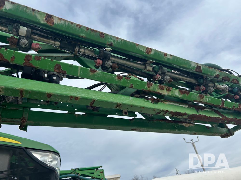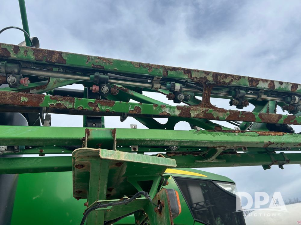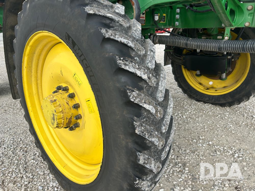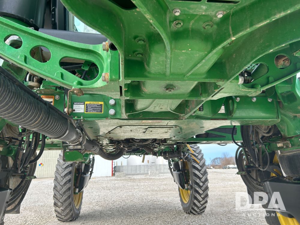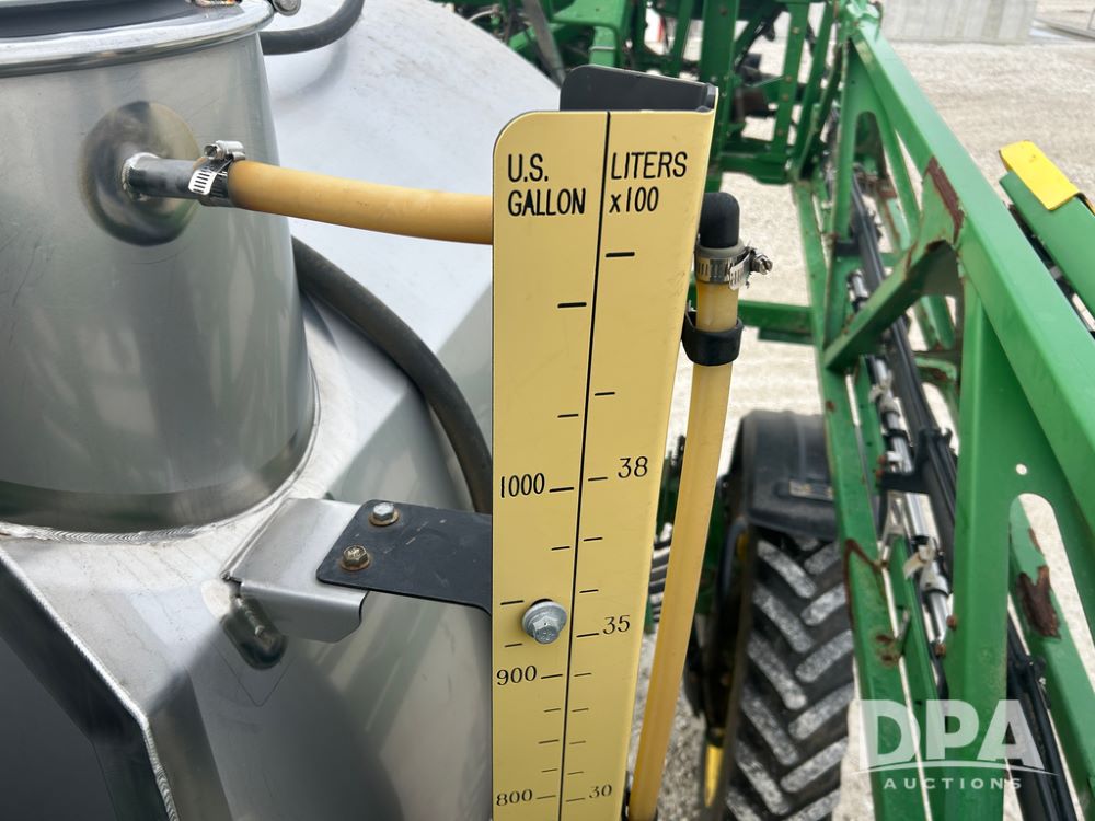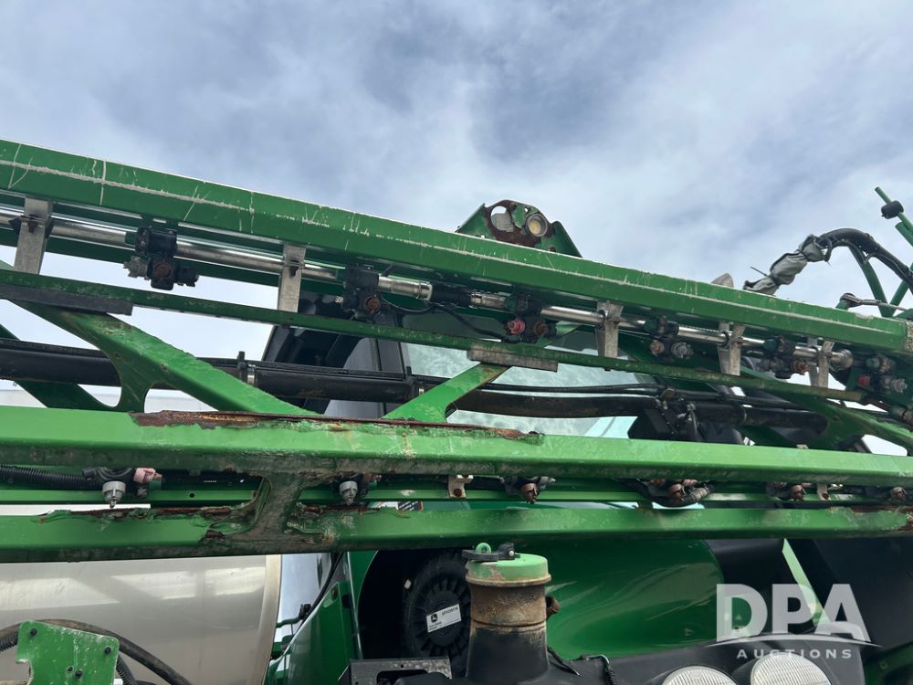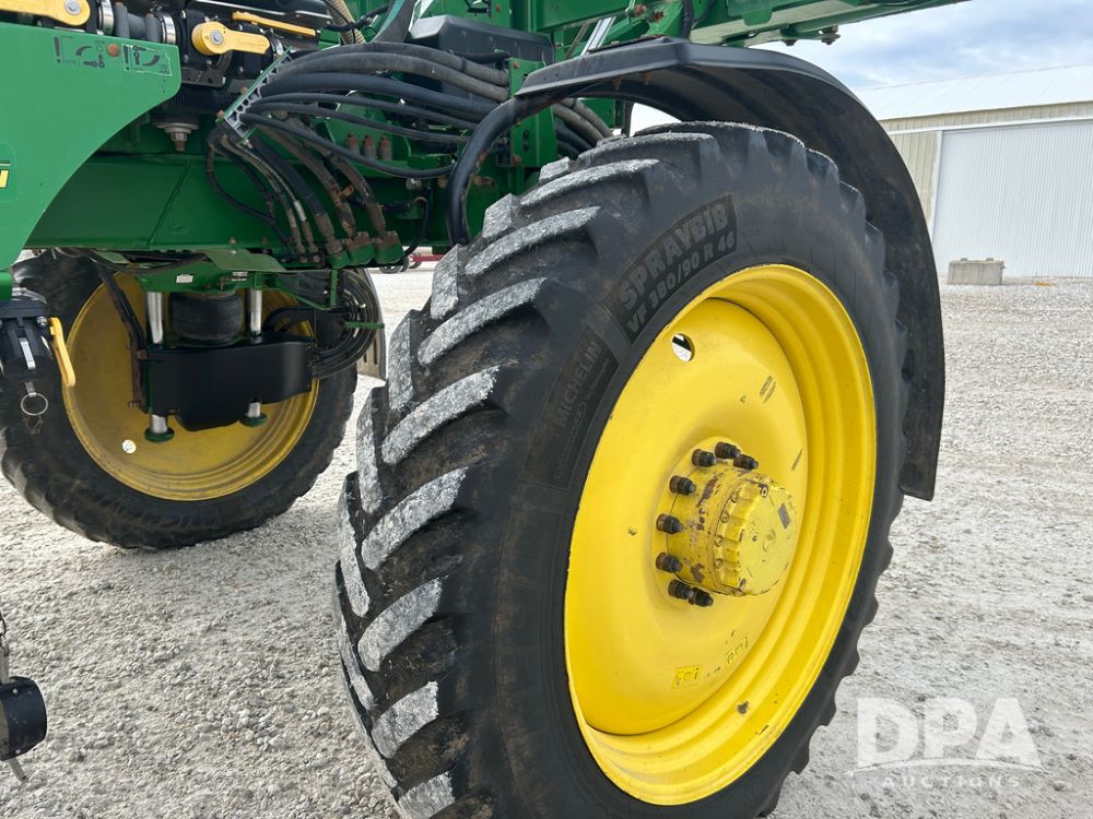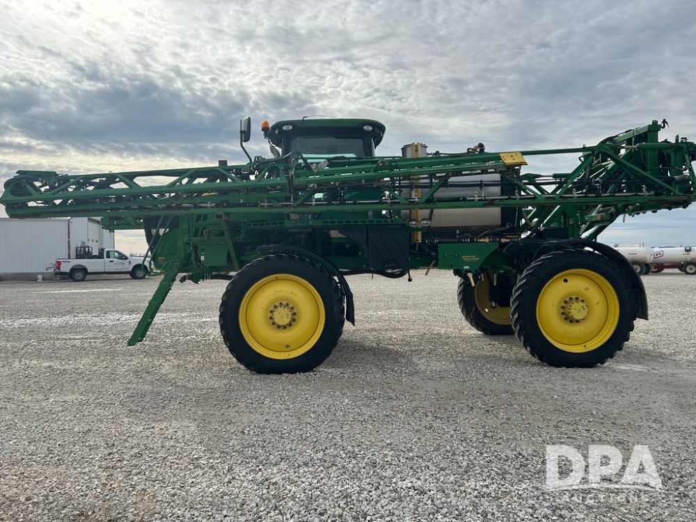 2019 John Deere R4038 Sprayer (CP1433, Unit 900), John Deere diesel engine, hydrostatic transmission, air conditioning, heat, Am/Fm radio, beacon light, 1000 gallon stainless steel liquid system, 120' boom, rear poly rinse tank, automatic solution control, front fill, Michelin Spraybib VF380/90R46 tires, fenders, John Deere StarFire 6000 globe, John Deere monitor, shows 3,611 hours.