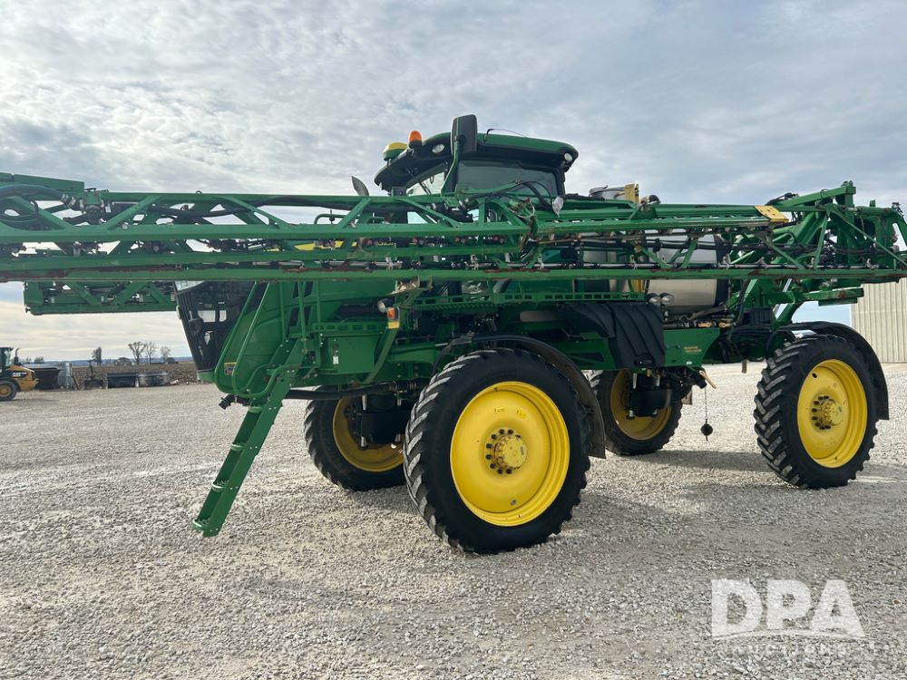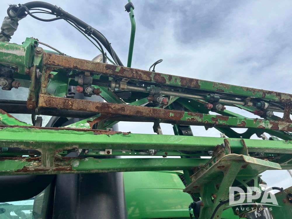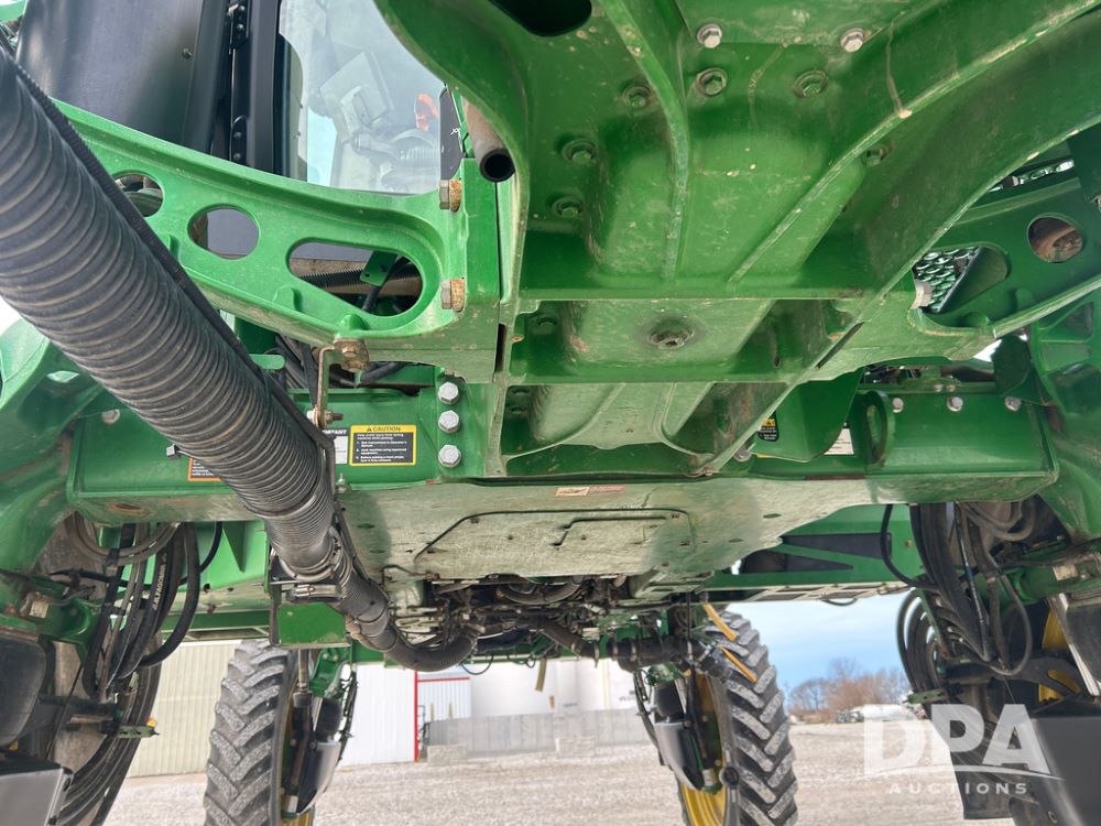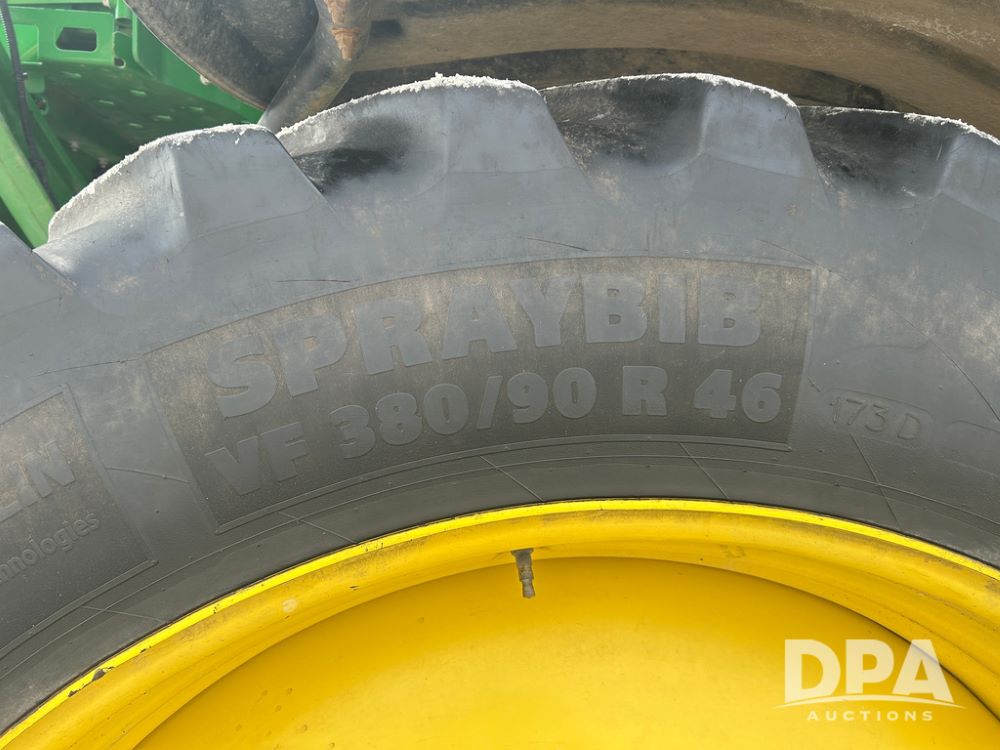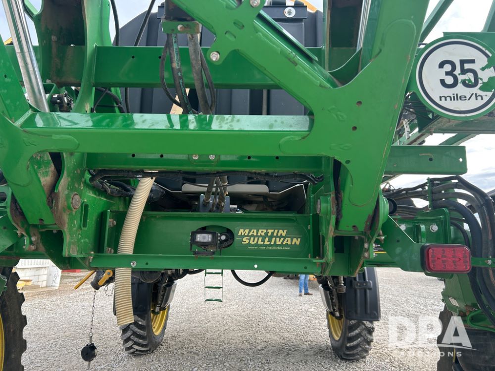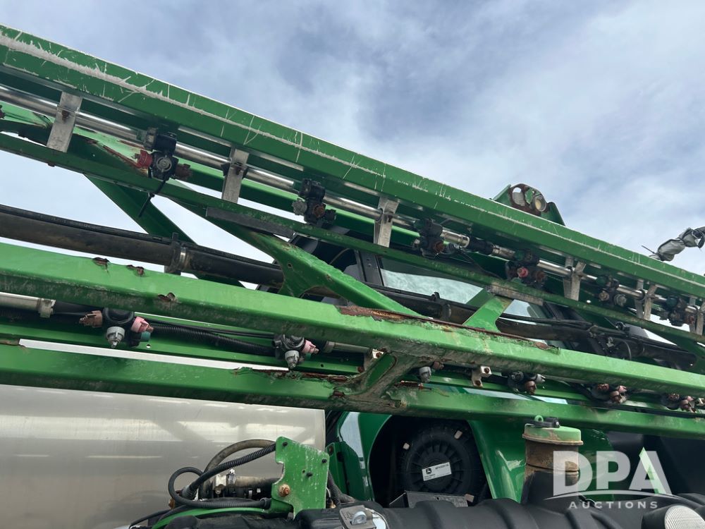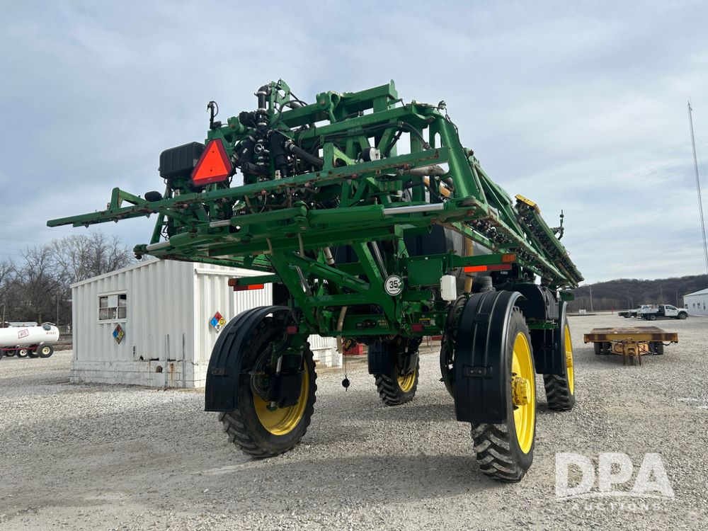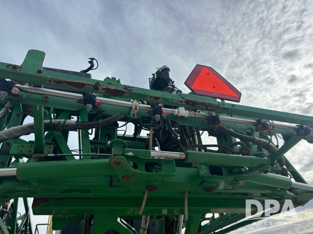 2019 John Deere R4038 Sprayer (CP1433, Unit 900), John Deere diesel engine, hydrostatic transmission, air conditioning, heat, Am/Fm radio, beacon light, 1000 gallon stainless steel liquid system, 120' boom, rear poly rinse tank, automatic solution control, front fill, Michelin Spraybib VF380/90R46 tires, fenders, John Deere StarFire 6000 globe, John Deere monitor, shows 3,611 hours.