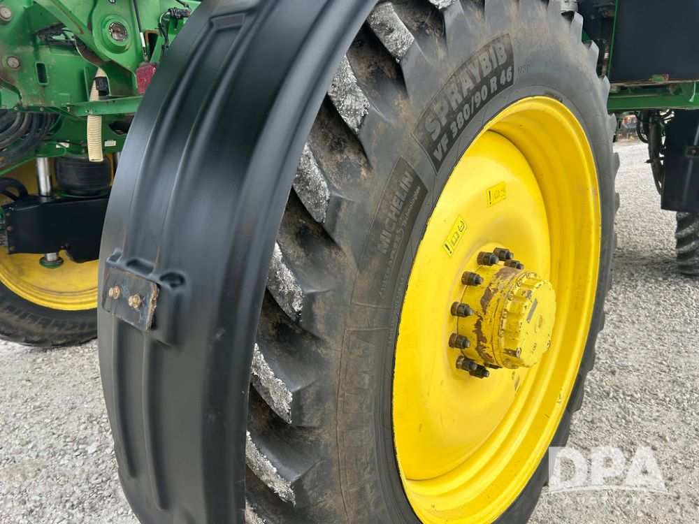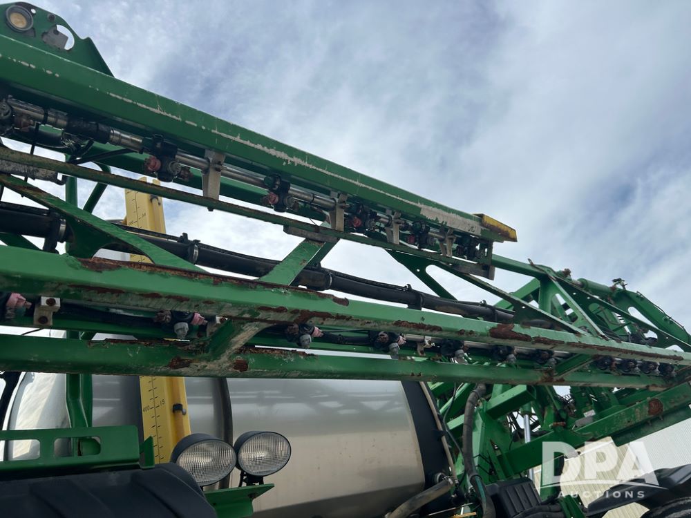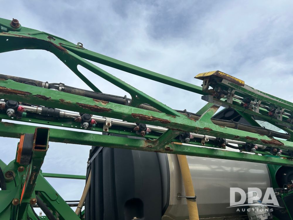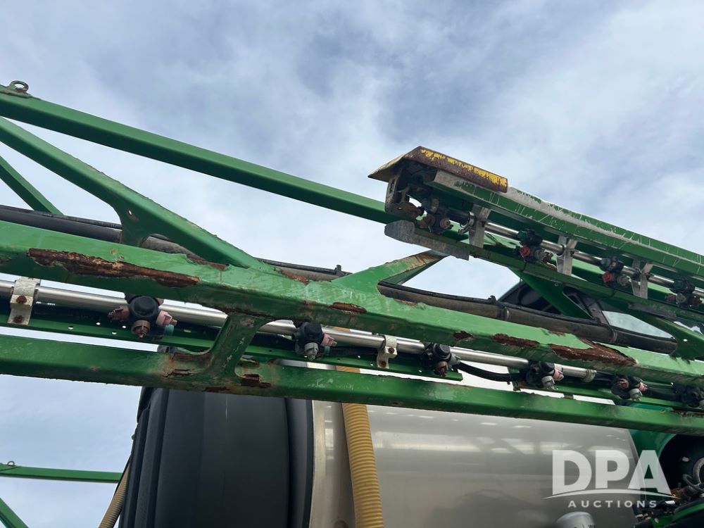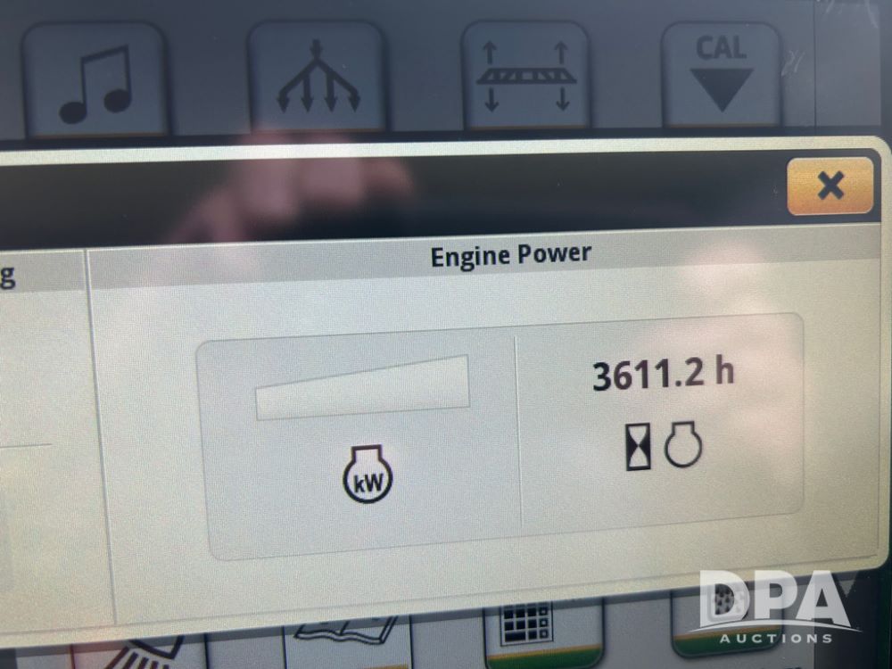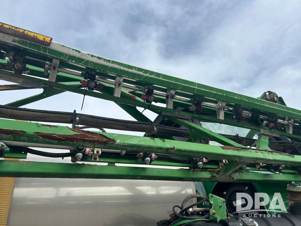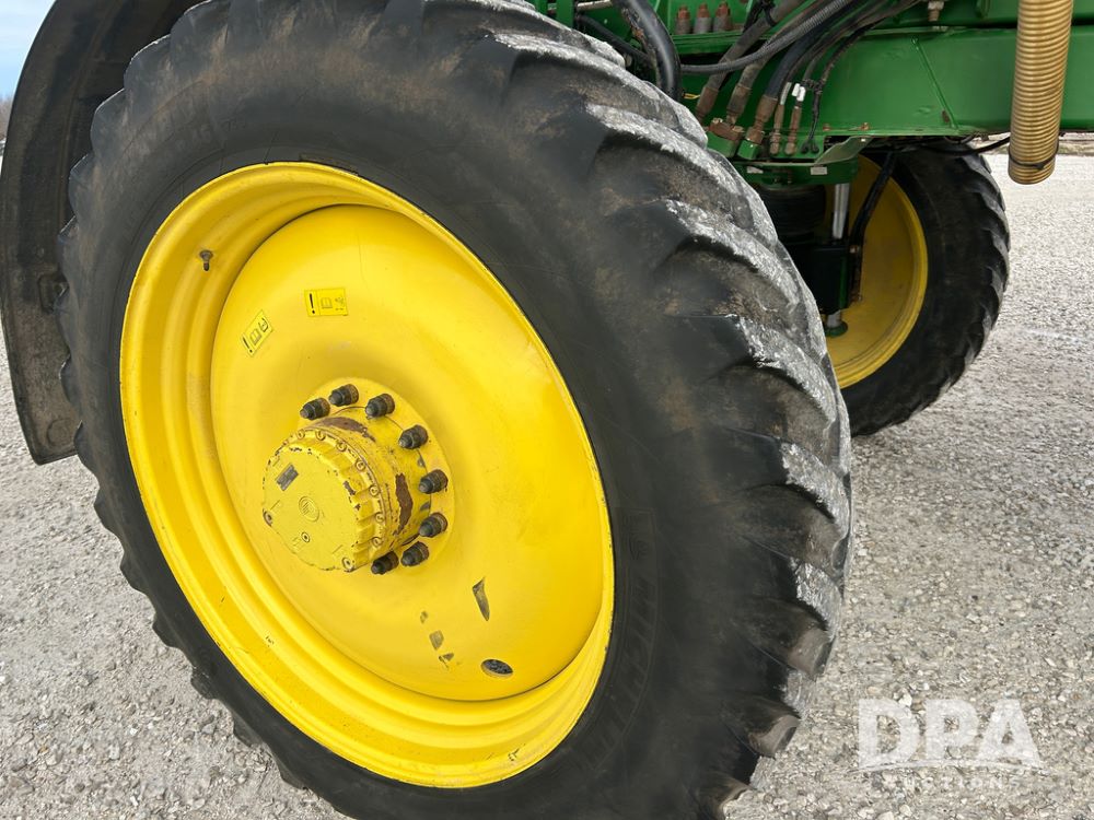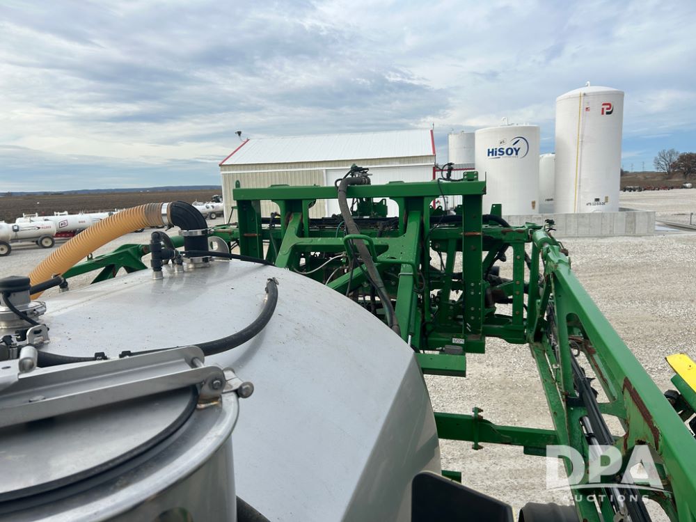 2019 John Deere R4038 Sprayer (CP1433, Unit 900), John Deere diesel engine, hydrostatic transmission, air conditioning, heat, Am/Fm radio, beacon light, 1000 gallon stainless steel liquid system, 120' boom, rear poly rinse tank, automatic solution control, front fill, Michelin Spraybib VF380/90R46 tires, fenders, John Deere StarFire 6000 globe, John Deere monitor, shows 3,611 hours.
