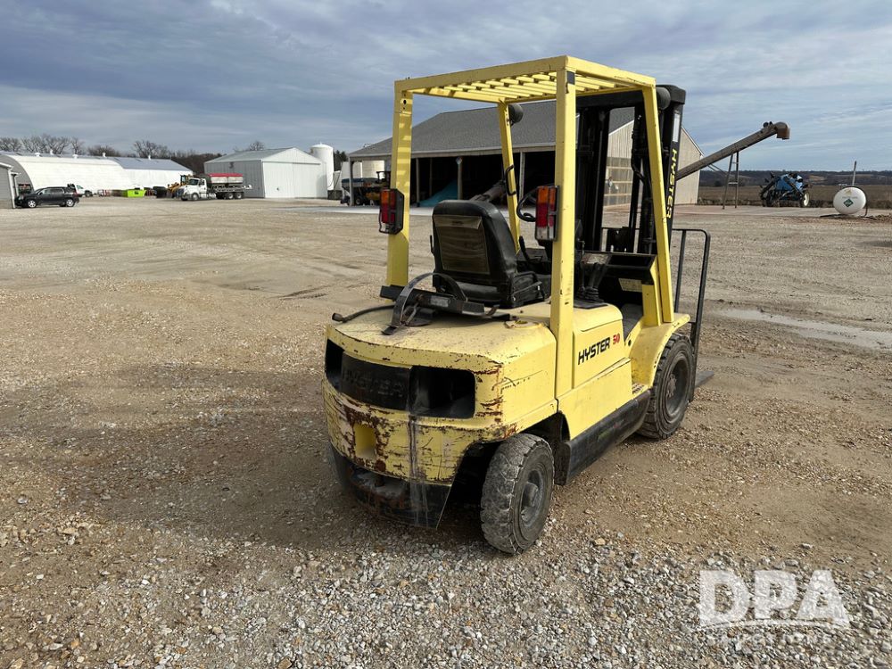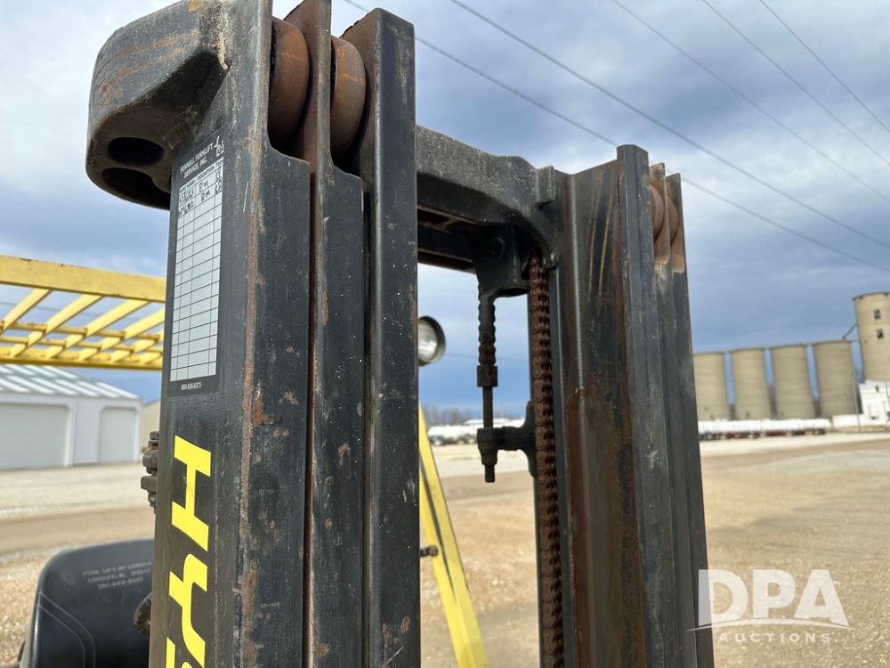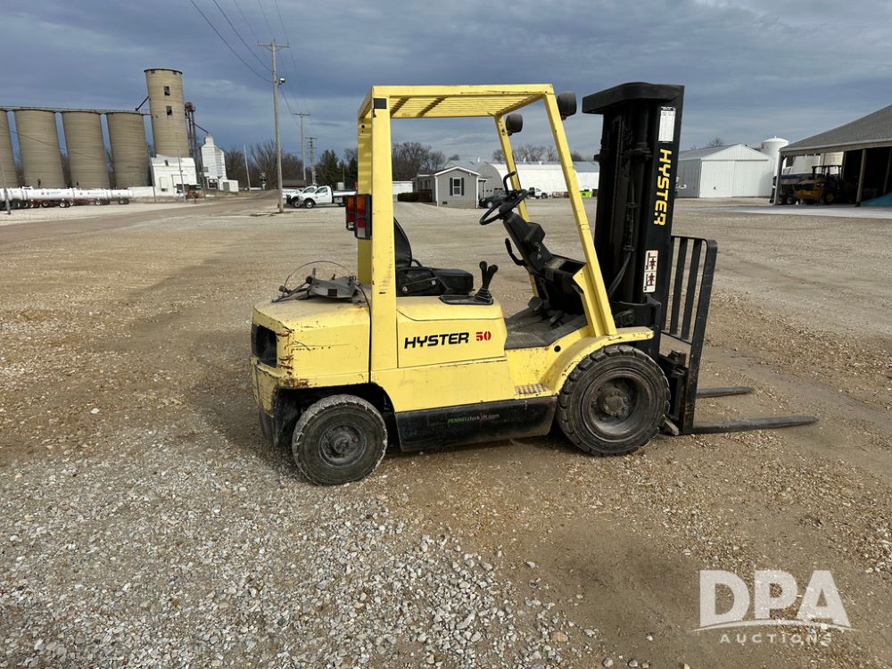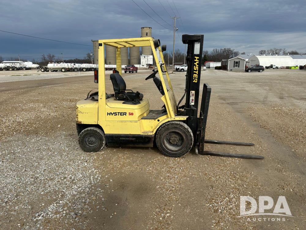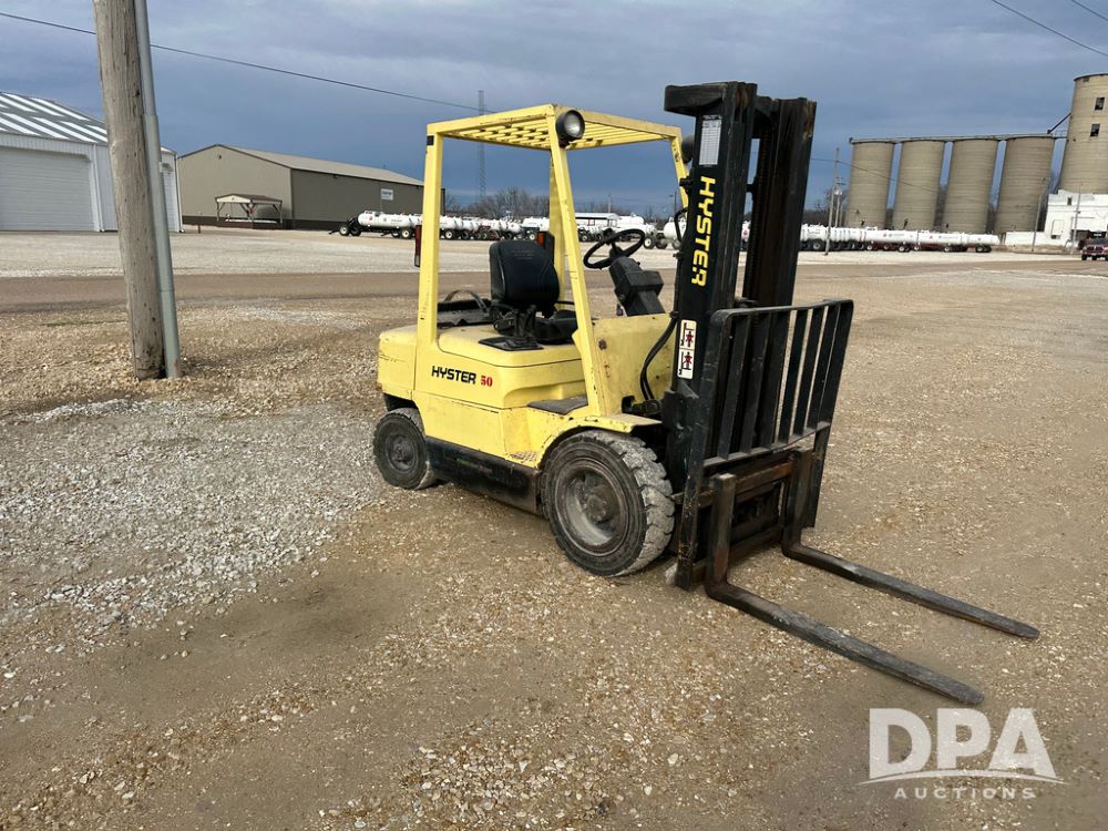 1996 Hyster H50XM Forklift (CP1439, Unit 906), LP gas engine, shuttle shift transmission, canopy, lights, forks, side shift, 815x15 front tires, 600x9 rear tires, approx. 6,406 hours.