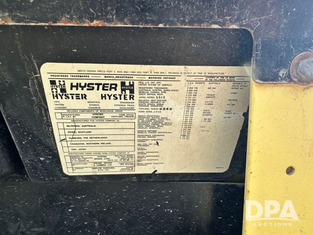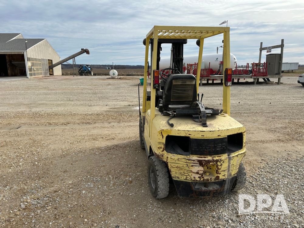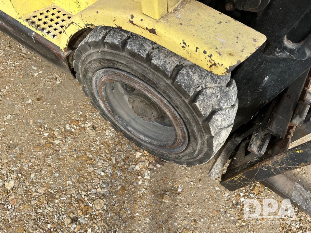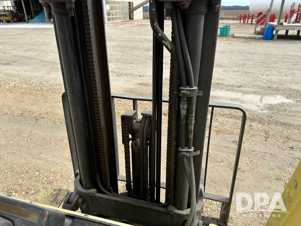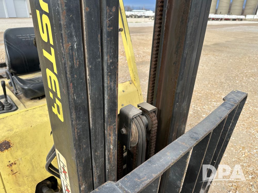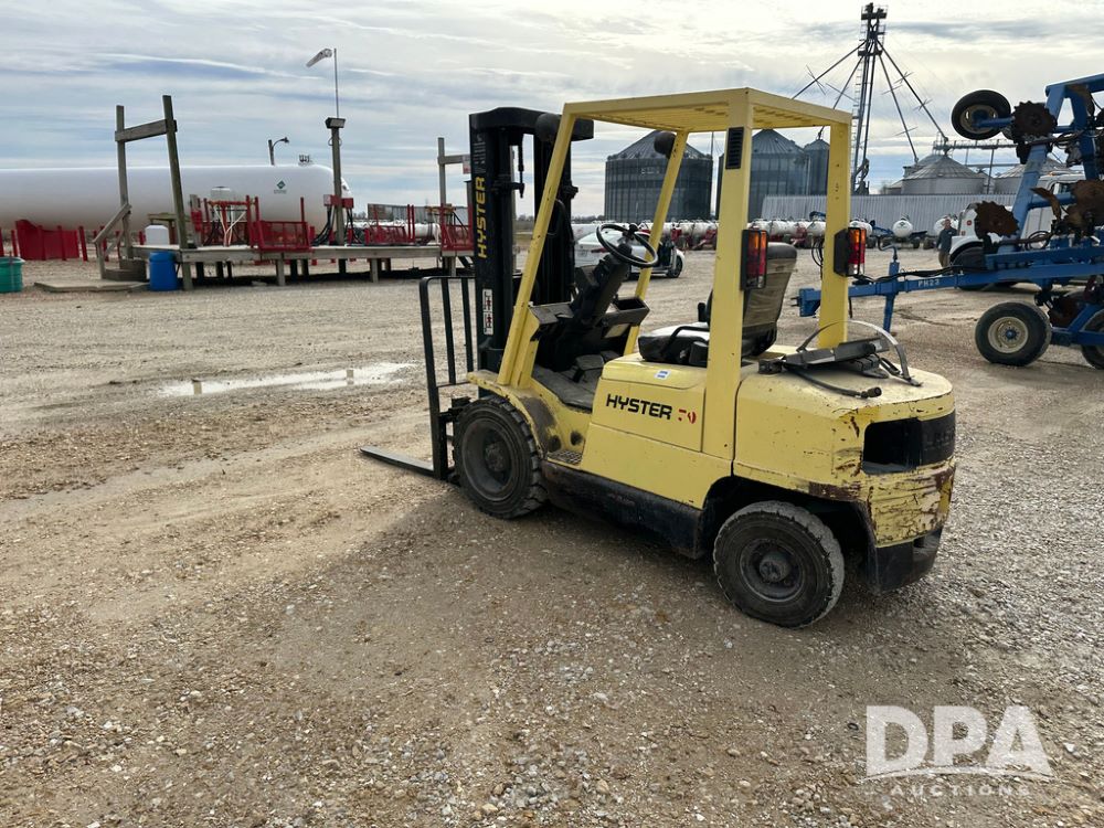 1996 Hyster H50XM Forklift (CP1439, Unit 906), LP gas engine, shuttle shift transmission, canopy, lights, forks, side shift, 815x15 front tires, 600x9 rear tires, approx. 6,406 hours.
