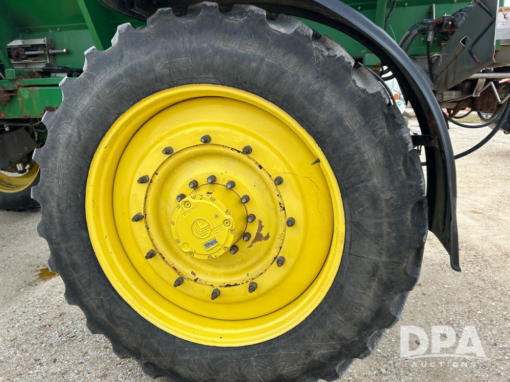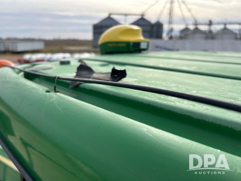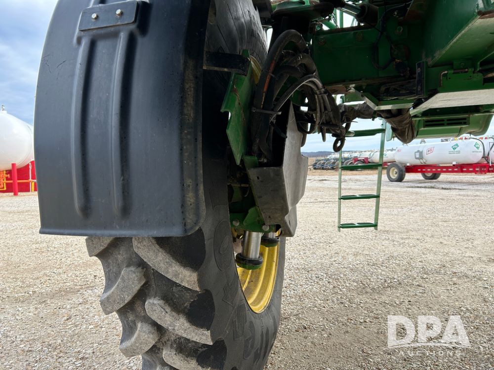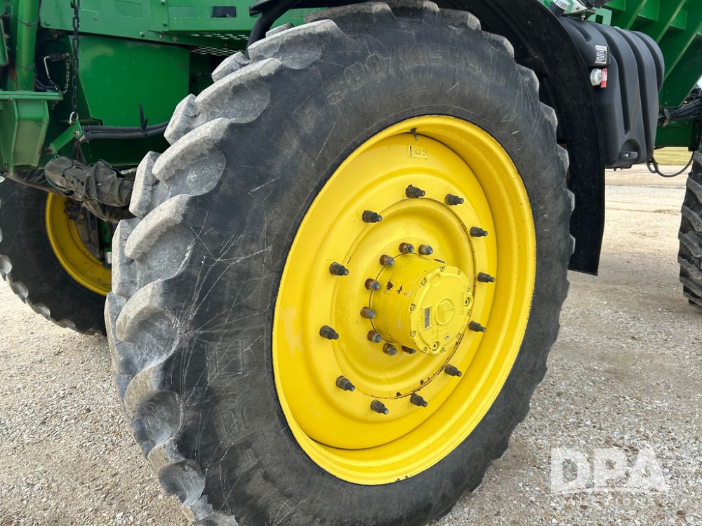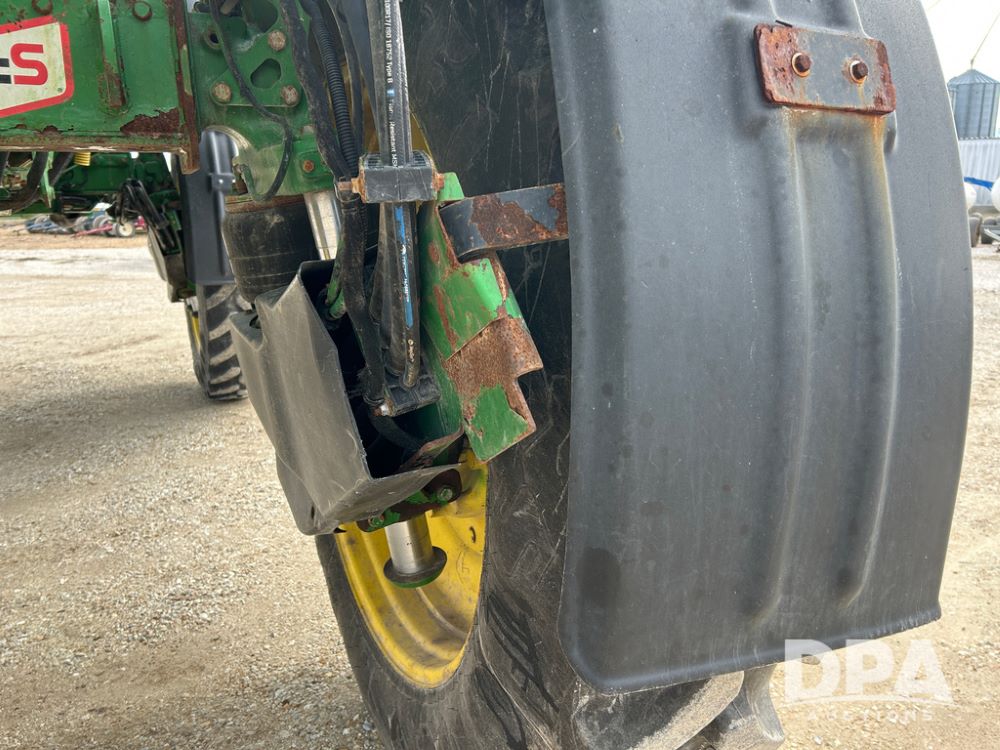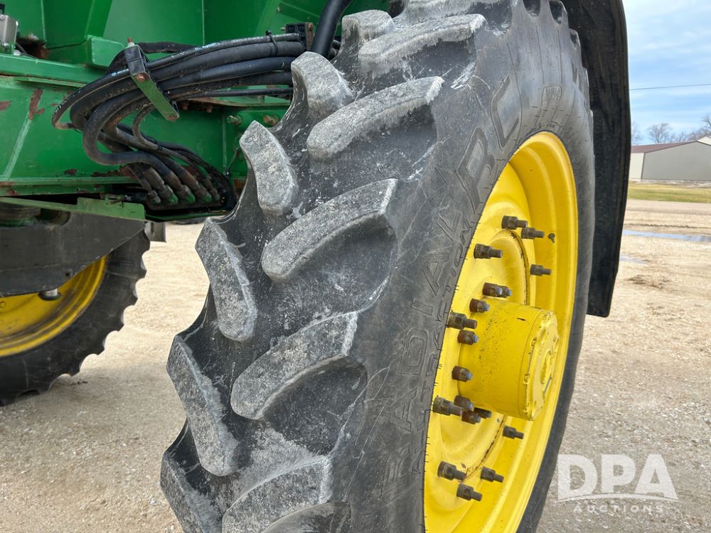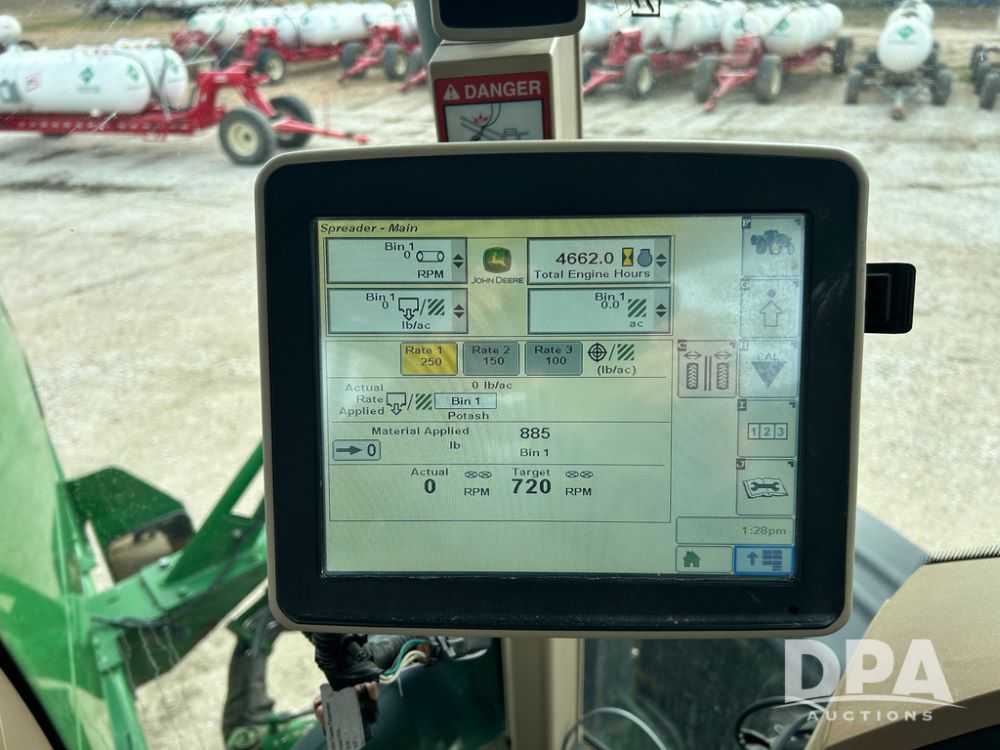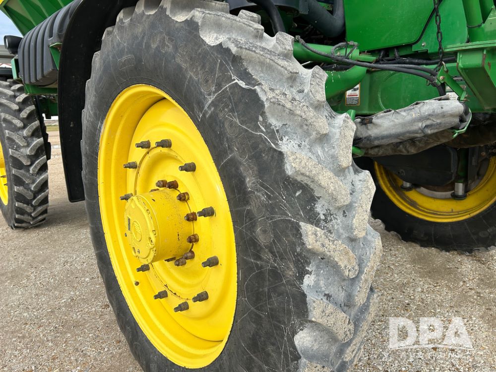 2014 John Deere 4940 Dry Machine (CP1437, Unit 989), John Deere diesel engine, hydrostatic transmission, air conditioning, heat, Am/Fm CD radio, beacon light, New Leader dry spreader box, twin spinner, all hydraulic, Firestone VF380/105R50 tires, fenders, John Deere StarFire 6000 globe, John Deer monitor, shows 4,662 hours.