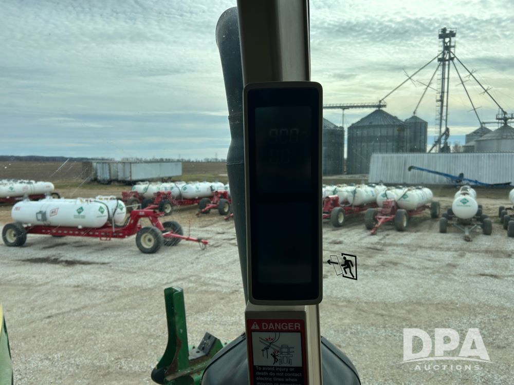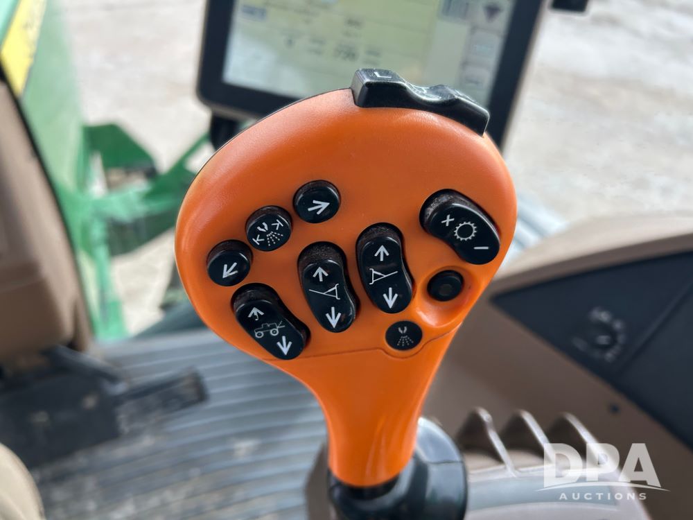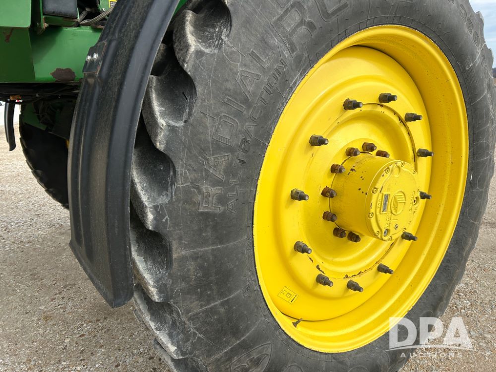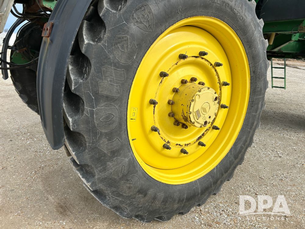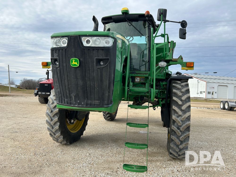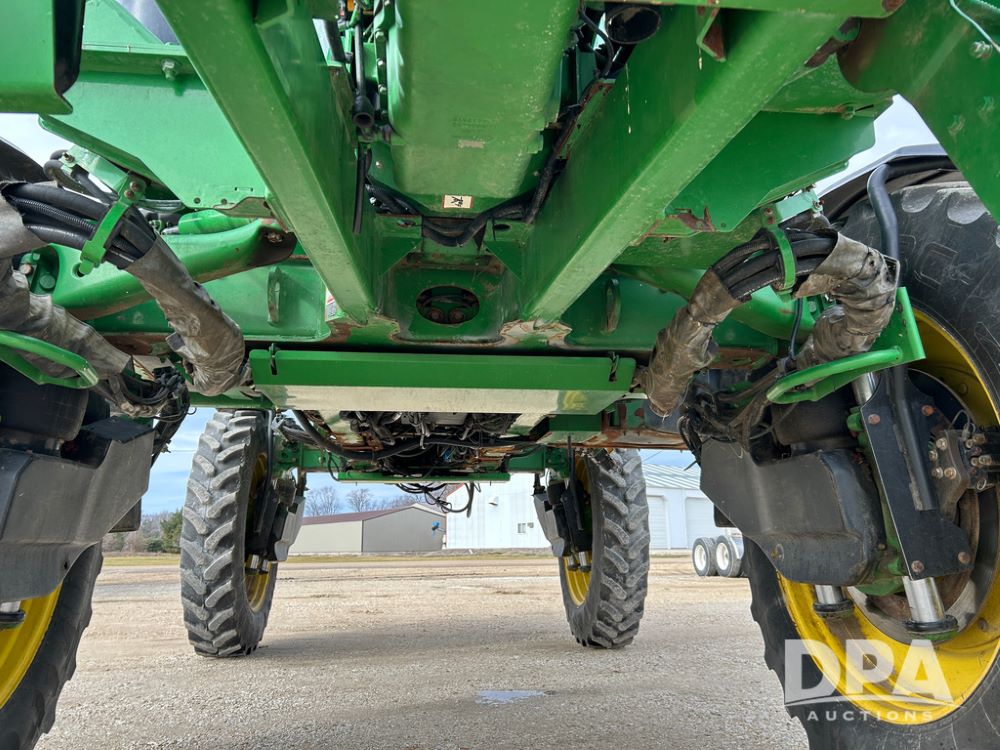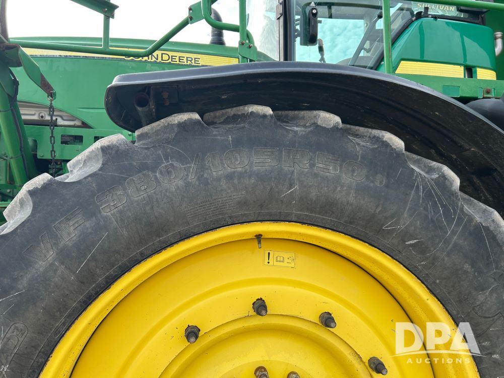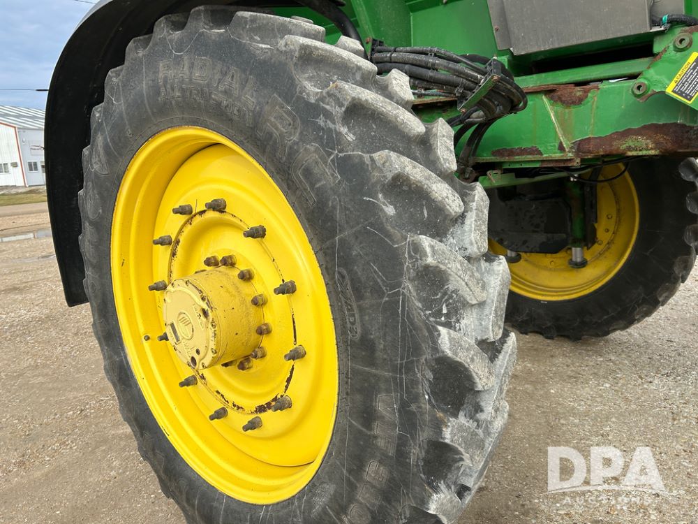 2014 John Deere 4940 Dry Machine (CP1437, Unit 989), John Deere diesel engine, hydrostatic transmission, air conditioning, heat, Am/Fm CD radio, beacon light, New Leader dry spreader box, twin spinner, all hydraulic, Firestone VF380/105R50 tires, fenders, John Deere StarFire 6000 globe, John Deer monitor, shows 4,662 hours.