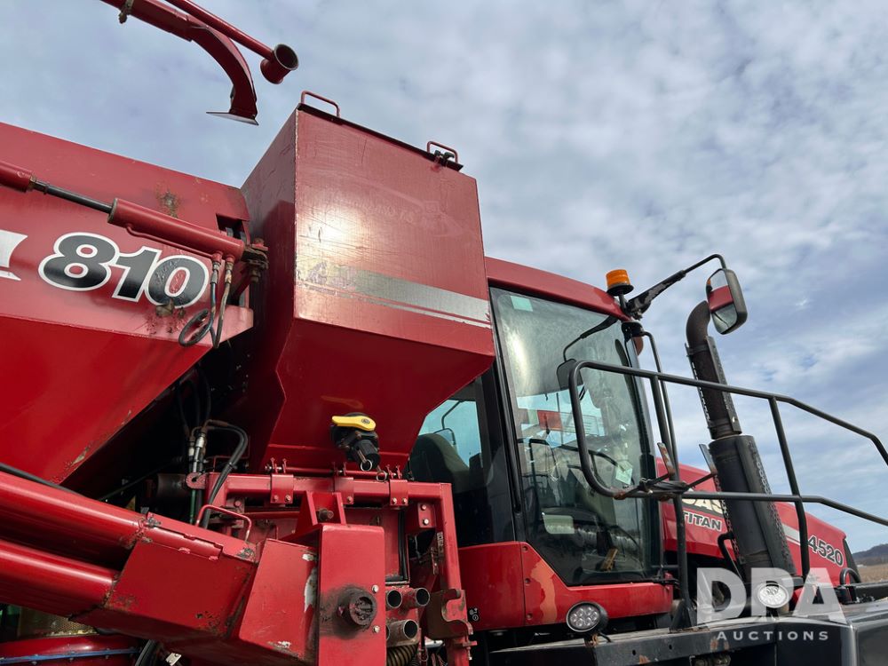 2011 CaseIH Titan 4520 Dry Air Flow Floater (CP1438, Unit 815), diesel engine, Allison automatic transmission, air conditioning, heat, Am/Fm CD radio, cruise control, buddy seat, beacon light, CaseIH Flex-Air 810 dry air flow system, 60' boom, (with extra set of booms), Alliance 750/45R26.5 front tires, BKT AgriMax Teris 1050/50R32 rear tires, lightbar, Raven Viper Pro monitor, shows 5,459 hours.