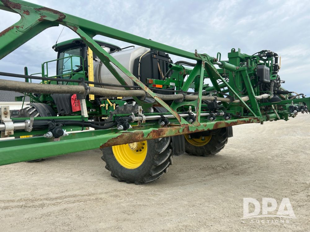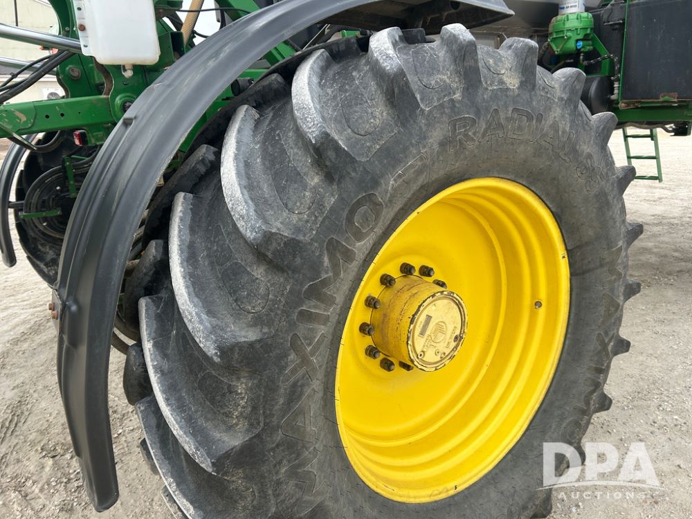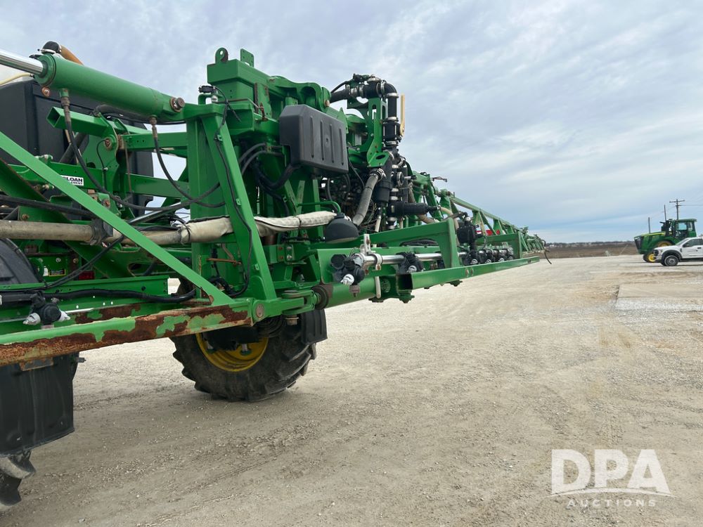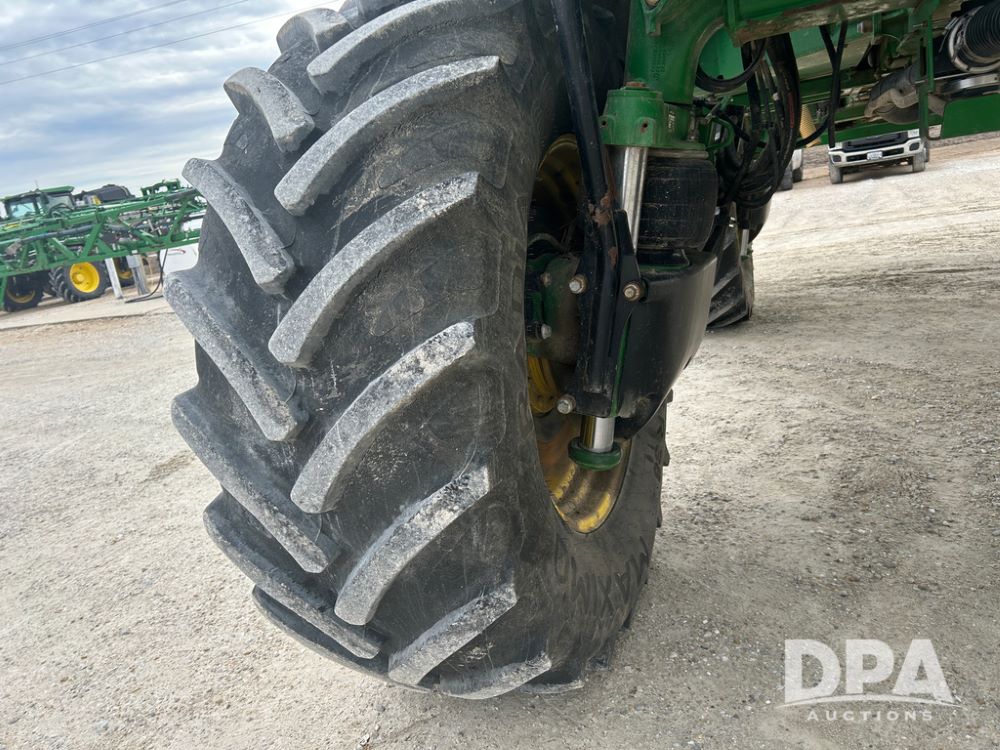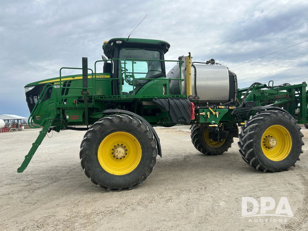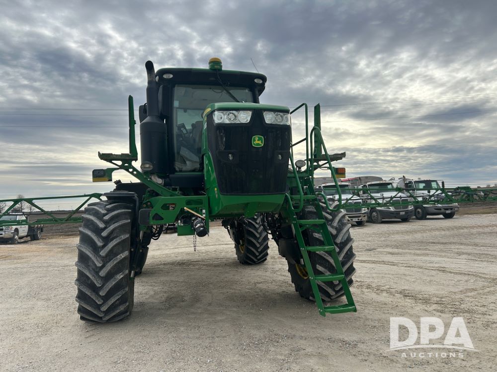 2017 John Deere R4038 Sprayer (CP1440, Unit 322), John Deere diesel engine, hydrostatic transmission, air conditioning, heat, Am/Fm CD radio, leather seat buddy seat, 1000 gallon stainless steel liquid system, 120' boom, rear poly rinse tank, front fill, Maximo 650/65R38 flotation tires, fenders, Voyager cab camera, John Deere StarFire 3000 globe, John Deere Gen 5 monitor, shows 3,534 hours.
