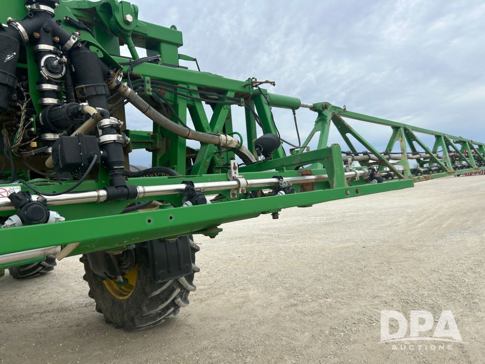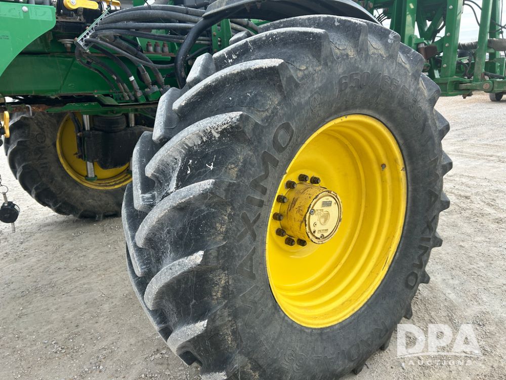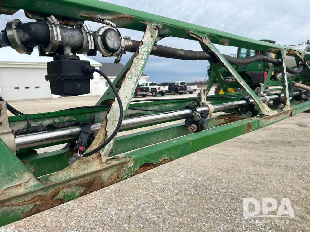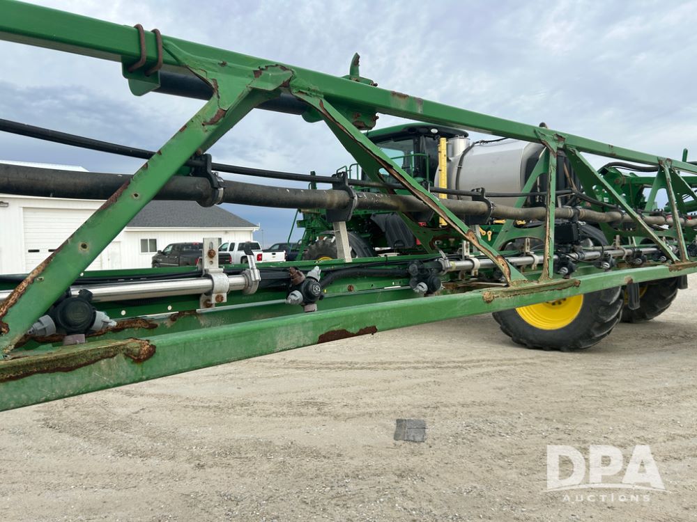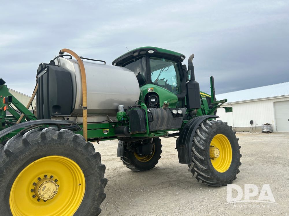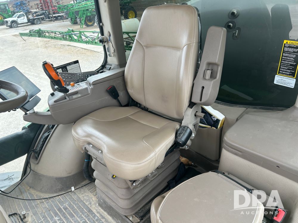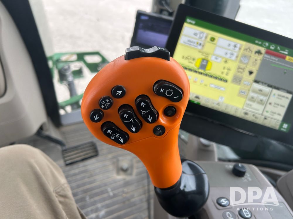 2017 John Deere R4038 Sprayer (CP1440, Unit 322), John Deere diesel engine, hydrostatic transmission, air conditioning, heat, Am/Fm CD radio, leather seat buddy seat, 1000 gallon stainless steel liquid system, 120' boom, rear poly rinse tank, front fill, Maximo 650/65R38 flotation tires, fenders, Voyager cab camera, John Deere StarFire 3000 globe, John Deere Gen 5 monitor, shows 3,534 hours.