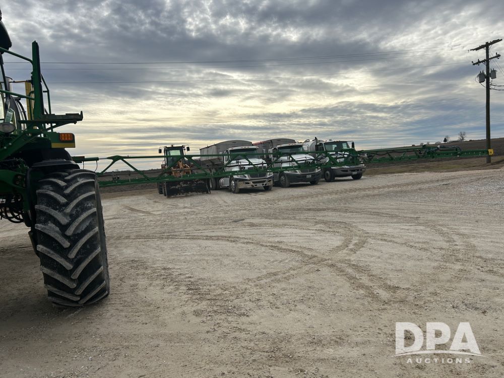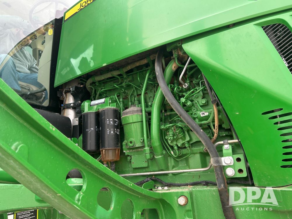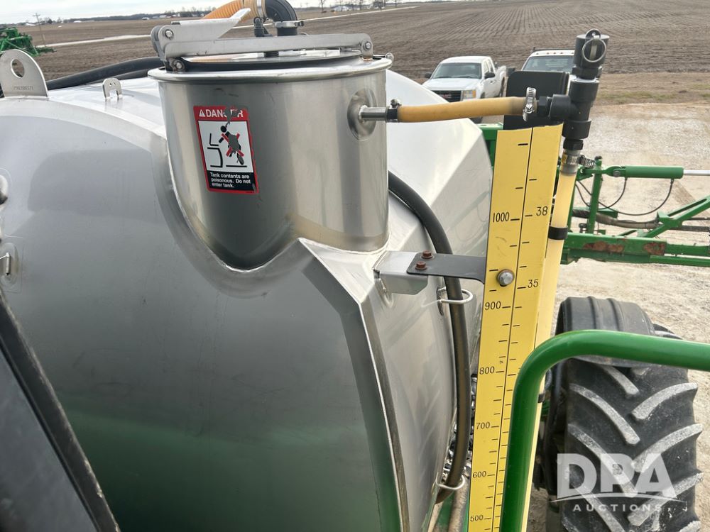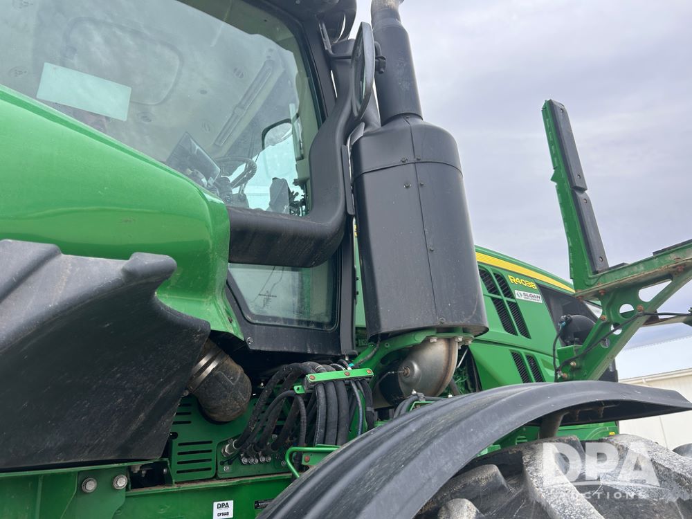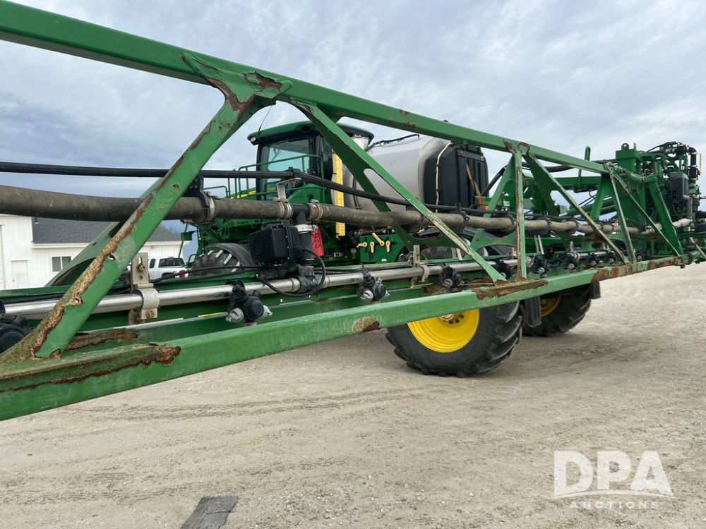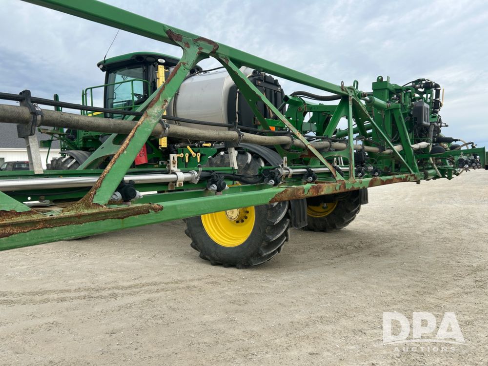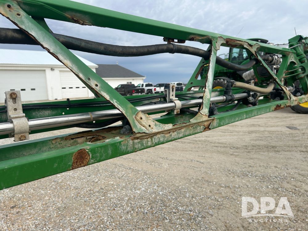 2017 John Deere R4038 Sprayer (CP1440, Unit 322), John Deere diesel engine, hydrostatic transmission, air conditioning, heat, Am/Fm CD radio, leather seat buddy seat, 1000 gallon stainless steel liquid system, 120' boom, rear poly rinse tank, front fill, Maximo 650/65R38 flotation tires, fenders, Voyager cab camera, John Deere StarFire 3000 globe, John Deere Gen 5 monitor, shows 3,534 hours.