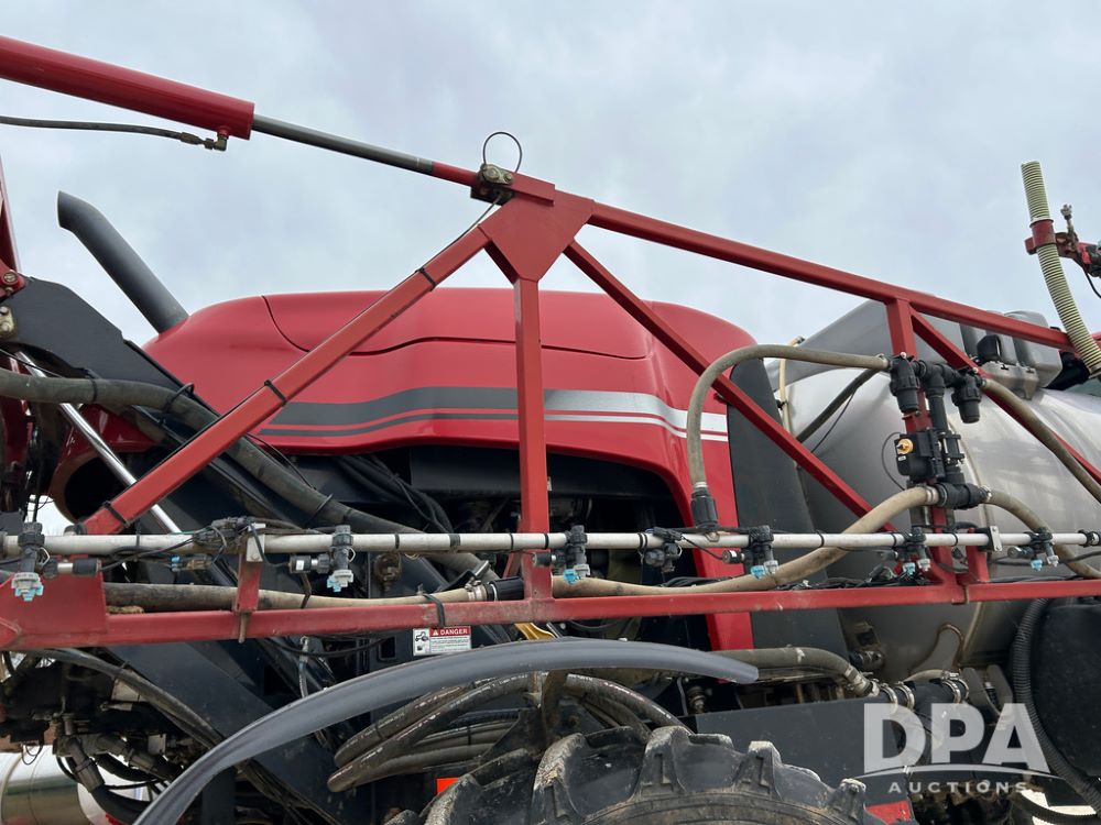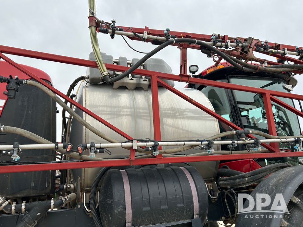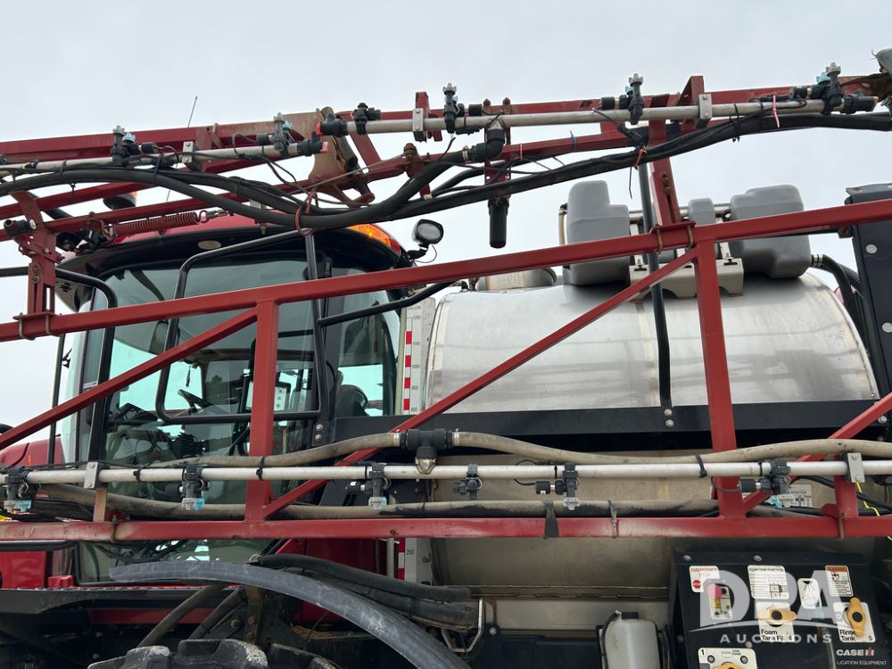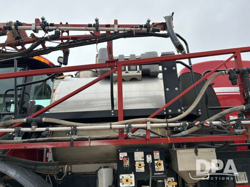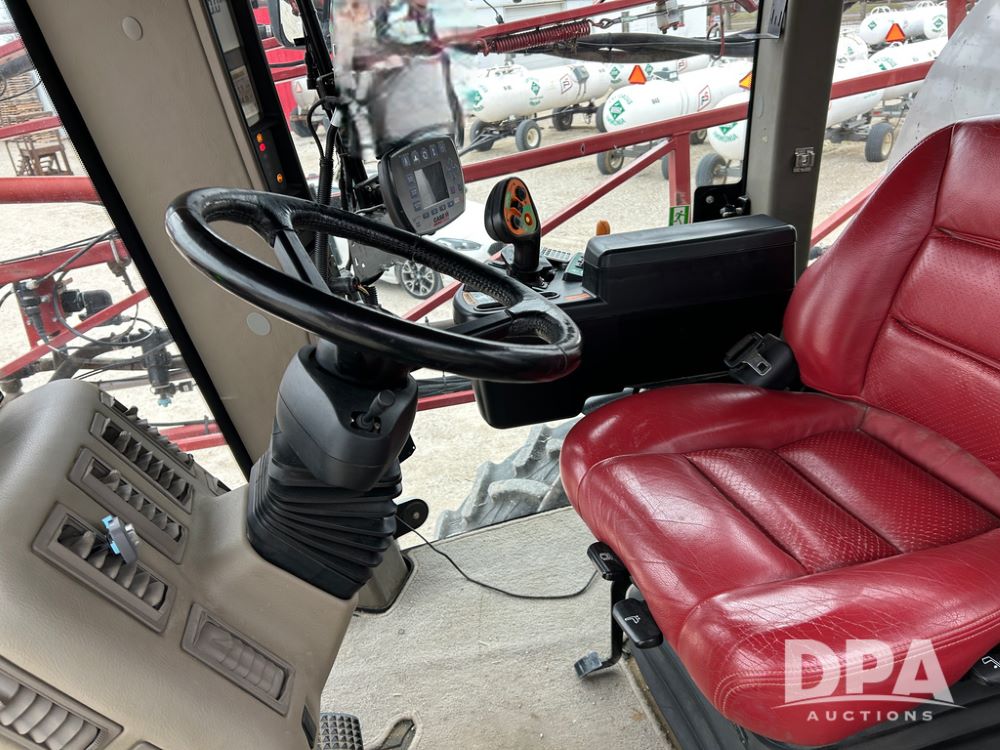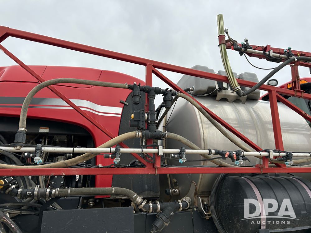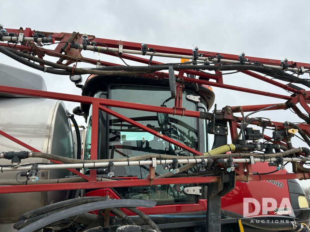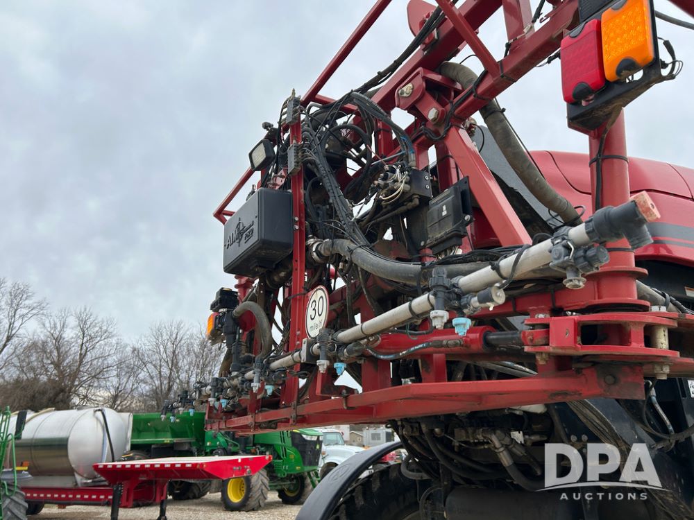 2015 CaseIH Patriot 4440 Sprayer (CP1444, Unit 399), diesel engine, hydrostatic transmission, air conditioning, heat, Am/Fm CD radio, leather seat, buddy seat, beacon light, 1200 gallon stainless steel liquid system, 90' boom, foam marker, poly foam marker tank, top poly rinse tank, stainless steel chemical inductor, front fill, Maxam - BKT - Titan 380/90R46 tires, fenders, AIM Command Pro, lightbar, NO monitor or globe, shows 4,850 hours.