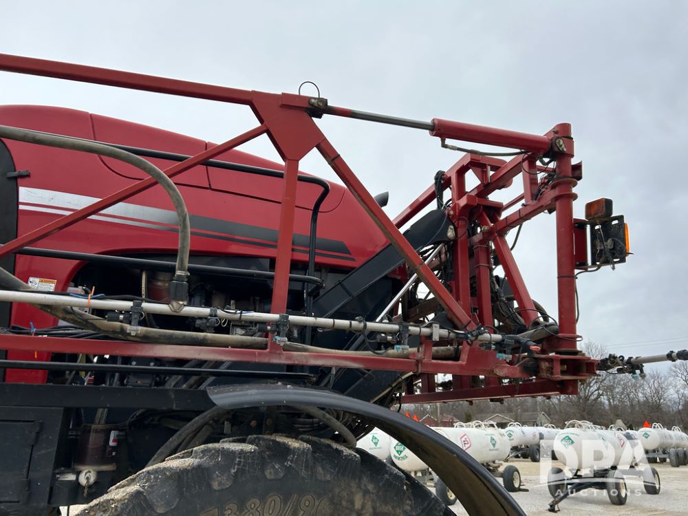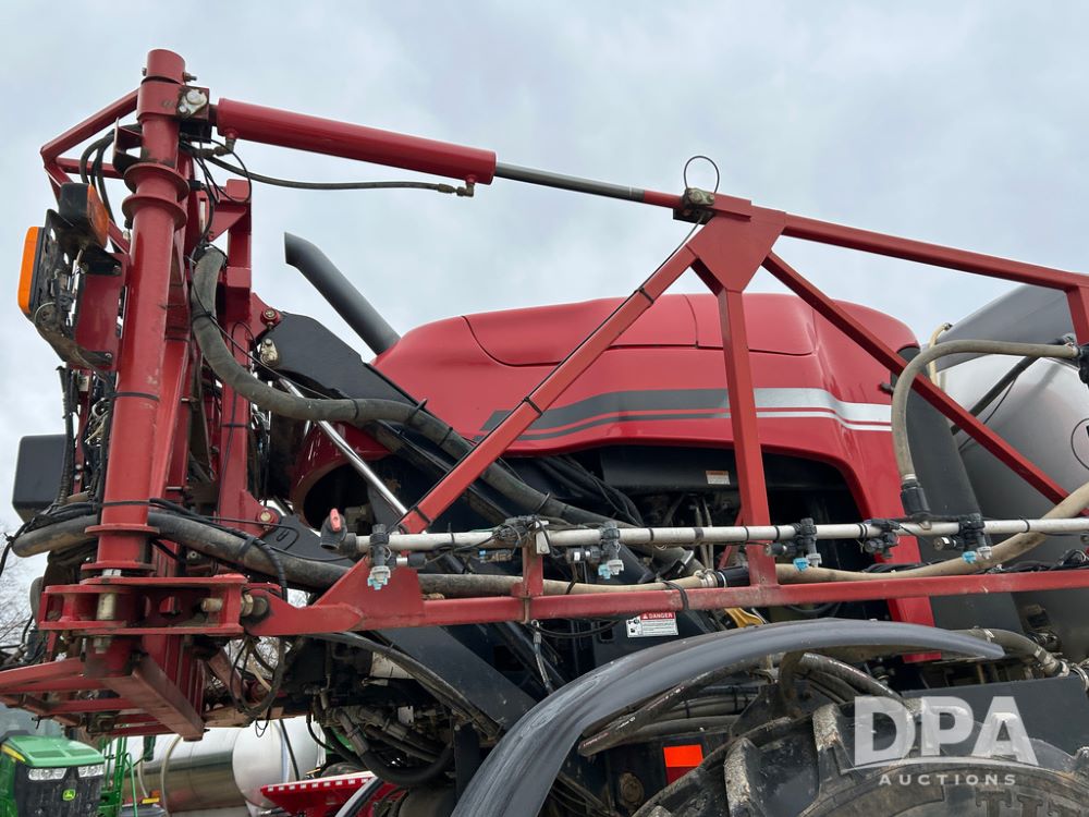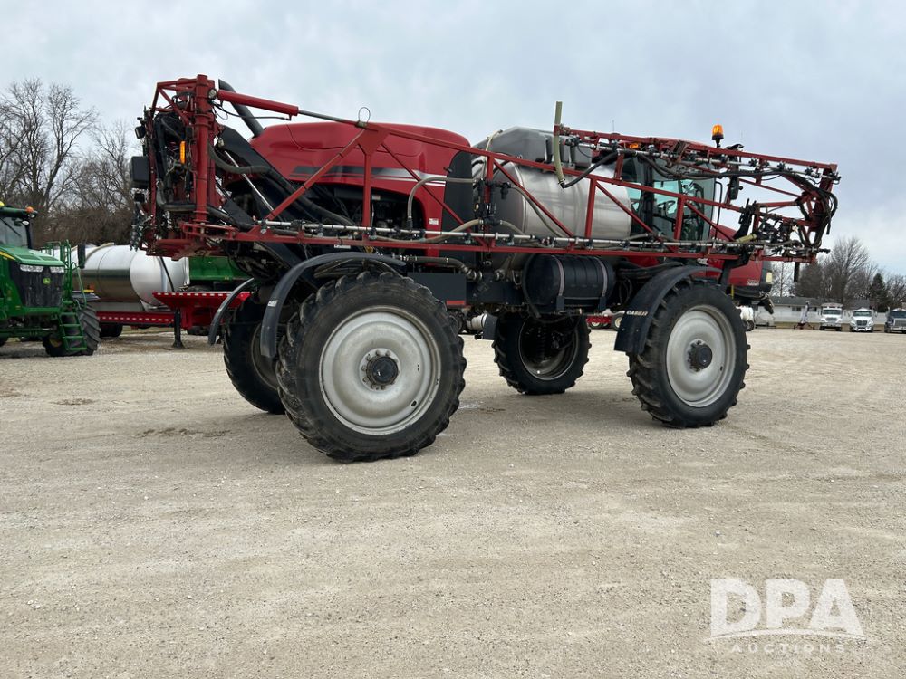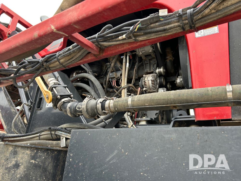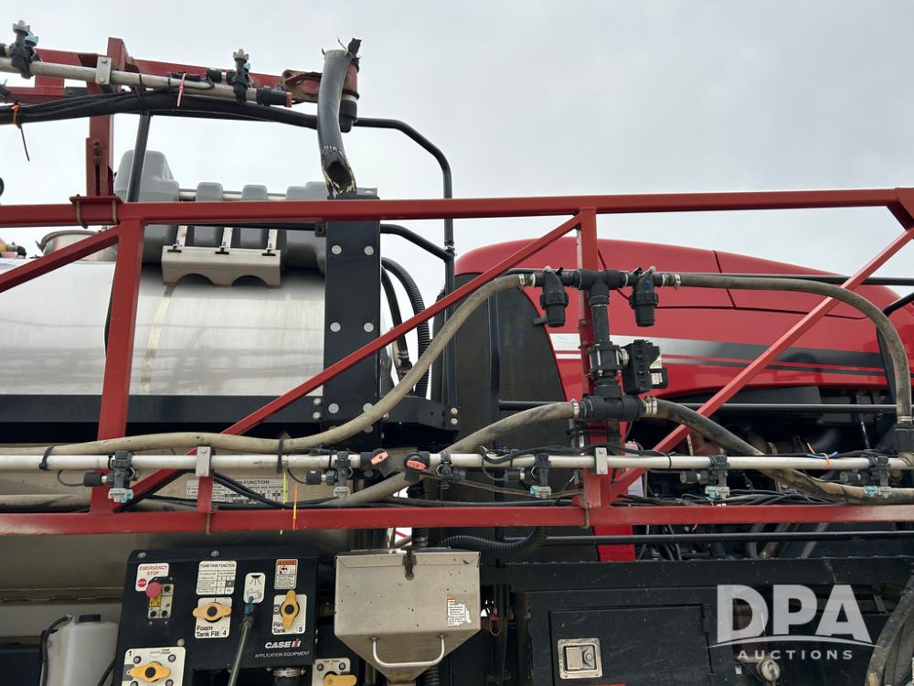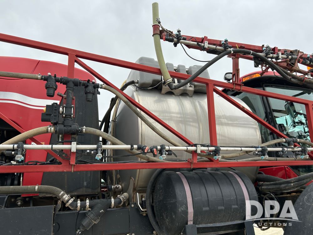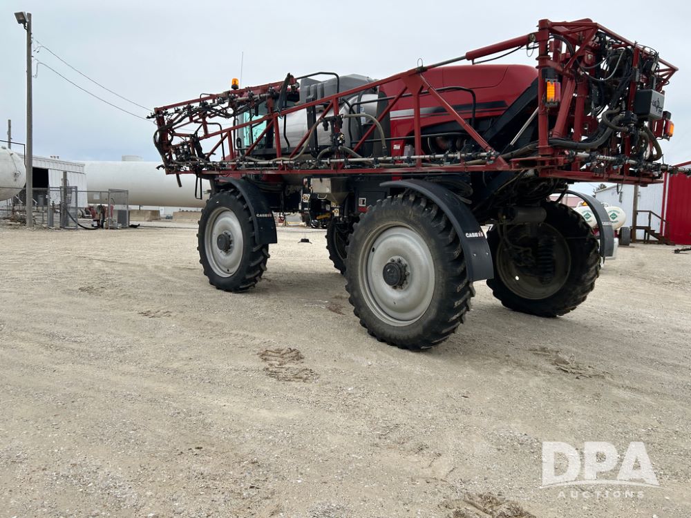 2015 CaseIH Patriot 4440 Sprayer (CP1444, Unit 399), diesel engine, hydrostatic transmission, air conditioning, heat, Am/Fm CD radio, leather seat, buddy seat, beacon light, 1200 gallon stainless steel liquid system, 90' boom, foam marker, poly foam marker tank, top poly rinse tank, stainless steel chemical inductor, front fill, Maxam - BKT - Titan 380/90R46 tires, fenders, AIM Command Pro, lightbar, NO monitor or globe, shows 4,850 hours.
