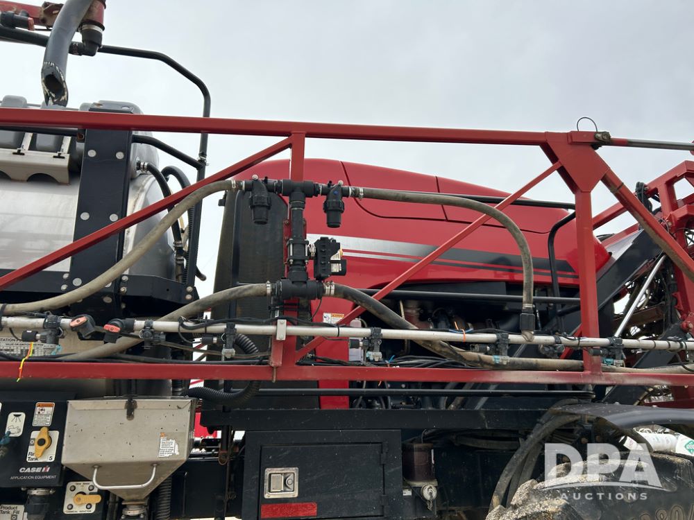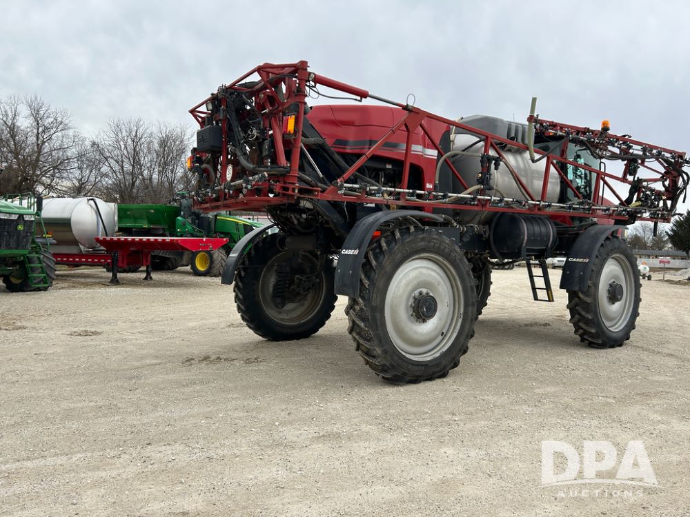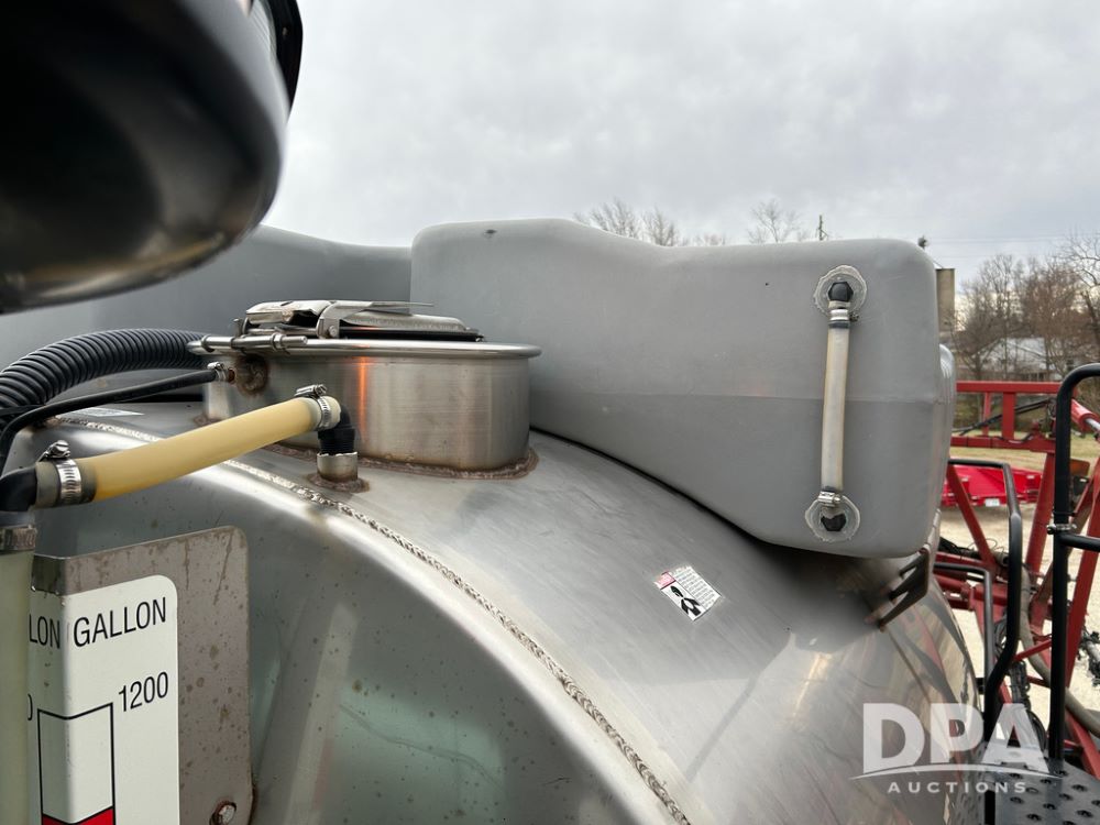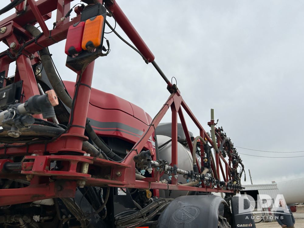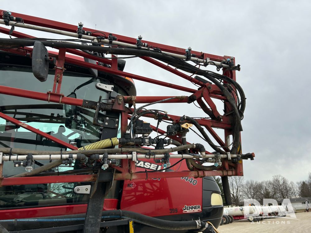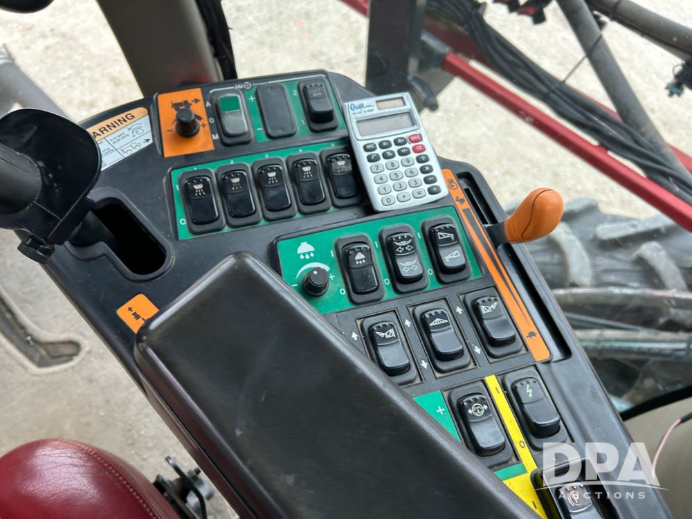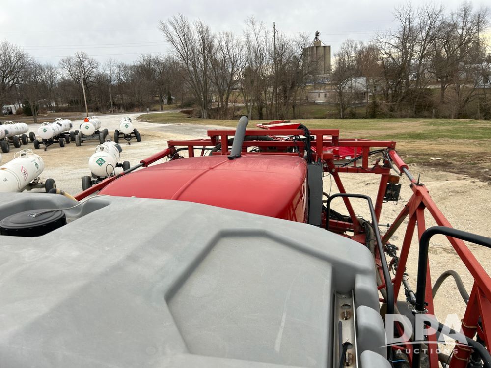 2015 CaseIH Patriot 4440 Sprayer (CP1444, Unit 399), diesel engine, hydrostatic transmission, air conditioning, heat, Am/Fm CD radio, leather seat, buddy seat, beacon light, 1200 gallon stainless steel liquid system, 90' boom, foam marker, poly foam marker tank, top poly rinse tank, stainless steel chemical inductor, front fill, Maxam - BKT - Titan 380/90R46 tires, fenders, AIM Command Pro, lightbar, NO monitor or globe, shows 4,850 hours.